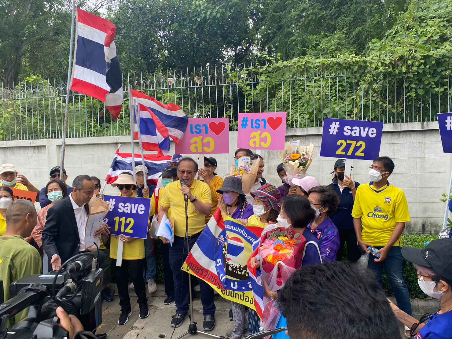 คณะสมาชิกวุฒิสภา (สว.) นำโดยนายสมชาย แสวงการ นายเสรี วุวรรณภานนท์ แพทย์หญิงคุณหญิงพรทิพย์ โรจนสุนันท์ นายถวิล เปลี่ยนศรี และพลเอกอกนิษฐ์ หมื่นสวัสดิ์ รับหนังสือและช่อดอกไม้จากนายแพทย์ตุลย์ สิทธิสมวงศ์ ตัวแทนกลุ่มคนอาสาปกป้องแผ่นดิน ศูนย์รวมประชาชนปกป้องสถาบัน (ศปปส.) คณะกลุ่มเสื้อหลากสี และกองทัพธรรม พุทธะอิสระ เพื่อให้กำลังใจ สว. ในการปฏิบัติหน้าที่โหวตเลือกนายกรัฐมนตรี โดยนายแพทย์ตุลย์ กล่าวขอบคุณ สว. ที่ปฏิบัติหน้าที่ด้วยความกล้าหาญด้วยการลงมติไม่เห็นชอบและงดออกเสียงจำนวนมาก ทำให้นายพิธา ลิ้มเจริญรัตน์ แคนดิเดตนายกรัฐมนตรีพรรคก้าวไกล ไม่ผ่านความเห็นชอบจากที่ประชุมร่วมกันของรัฐสภา เมื่อวันที่ 13 ก.ค.66 พร้อมทั้งไม่สนับสนุนนักการเมืองที่มีแนวคิดที่ต้องการแก้ไขประมวลกฎหมายอาญามาตรา 112 ซึ่งอาจนำไปสู่การหมิ่นสถาบันพระมหากษัตริย์อย่างรุนแรงมากขึ้น พร้อมทั้งขอบคุณ สว. ที่ทำหน้าที่โดยไม่หวั่นเกรงต่อการกดดันจากผู้สนับสนุนของนายพิธา ลิ้มเจริญรัตน์ แคนดิเดตนายกรัฐมนตรีพรรคก้าวไกล ดังนั้น กลุ่มพลเมืองอาสาปกป้องแผ่นดิน และองค์กรเครือข่าย ขอชื่นชมและเป็นกำลังใจให้กับ สว. ได้ทำหน้าที่ด้วยวิจารณญาณและความกล้าหาญ เพื่อรักษาผลประโยชน์ของประเทศชาติ และปกป้องสถาบันกษัตริย์อย่างเต็มที่