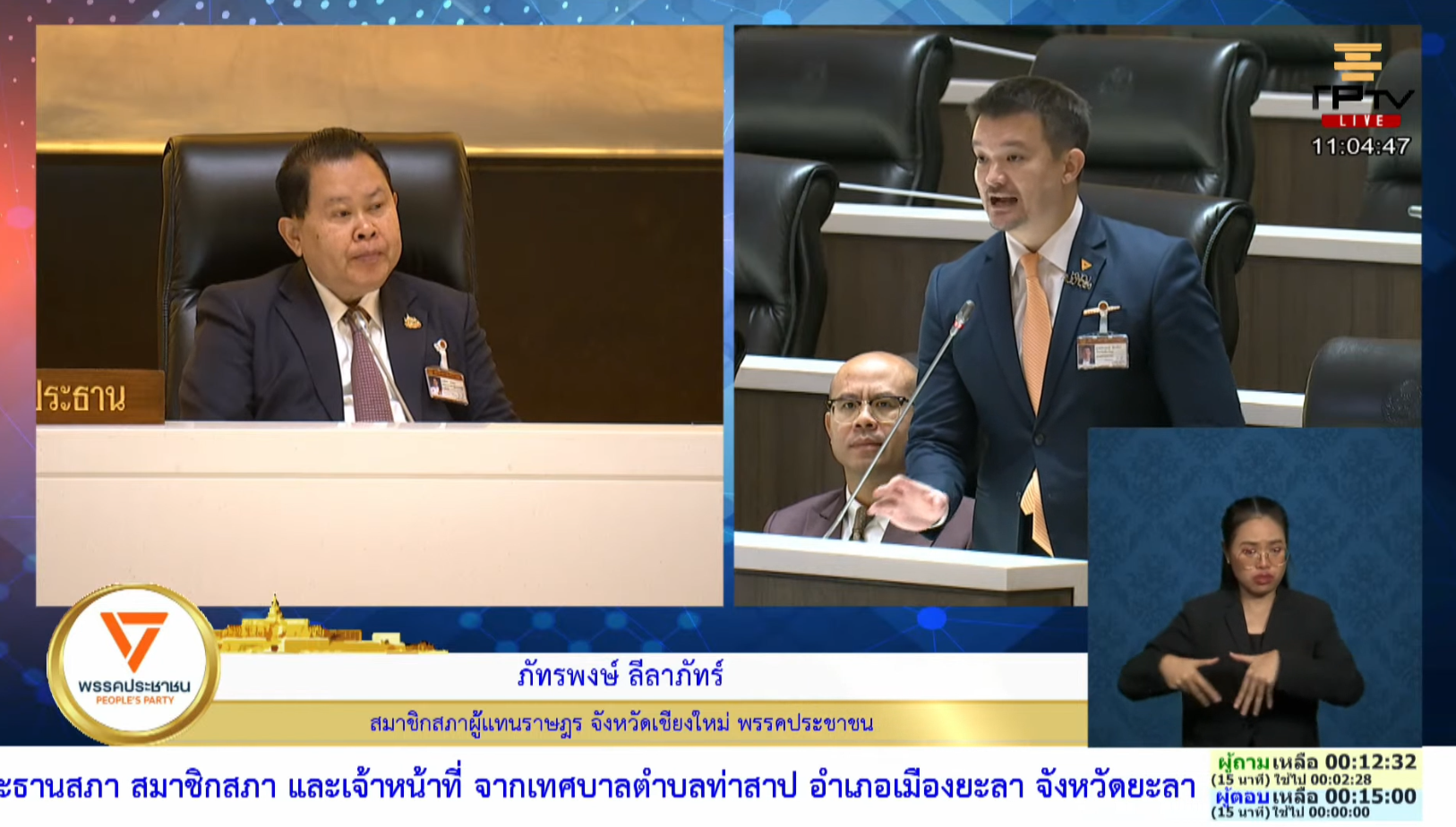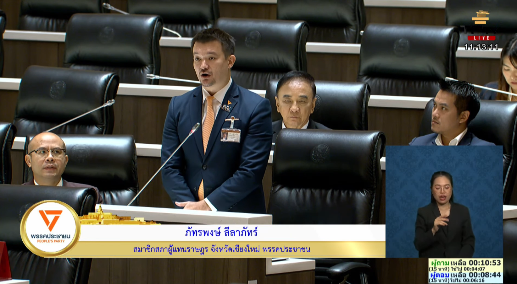 นายภัทรพงษ์ ลีลาภัทร์ สมาชิกสภาผู้แทนราษฎร (สส.) จังหวัดเชียงใหม่ พรรคประชาชน ตั้งกระทู้ถามสดด้วยวาจา ถามนายสุชาติ ชมกลิ่น รองนายกรัฐมนตรี และรัฐมนตรีว่าการกระทรวงทรัพยากรธรรมชาติและสิ่งแวดล้อม ถึงแนวทางการแก้ไขปัญหามลพิษข้ามแดนจากการทำเหมืองในฝั่งชายแดนประเทศเมียนมาที่ส่งผลกระทบมายังแม่น้ำกก แม่น้ำสาย แม่น้ำรวก และแม่น้ำโขง โดยเฉพาะในพื้นที่จังหวัดเชียงใหม่และจังหวัดเชียงราย ว่า ตนขออขอบคุณที่ เมื่อวันที่ 9 ต.ค.68 ที่นายสุชาติ ชมกลิ่น และคณะ ได้ลงพื้นที่ติดตามปัญหาด้วยตนเอง อย่างไรก็ตาม รัฐบาลยังไม่มีมาตรการแก้ไขปัญหานี้อย่างเร่งด่วน โดยเฉพาะ 3 ปัญหาหลัก คือ 1. น้ำประปาเป็นพิษ 18 หมู่บ้าน โดยตรวจพบสารตะกั่วเกินค่ามาตรฐาน ซึ่งสถานการณ์ทวีความรุนแรงขึ้น เมื่อเดือน มิ.ย. ตรวจพบ 4 หมู่บ้าน เดือน ก.ค. ตรวจพบ 6 หมู่บ้าน, และเดือน ส.ค. ตรวจพบสูงถึง 18 หมู่บ้าน ส่งผลกระทบรุนแรงกับระบบประปาหมู่บ้าน ซึ่งคิดเป็น 85% ของการใช้น้ำในจังหวัดเชียงราย ไม่ใช่ประปาส่วนภูมิภาค (กปภ.) 2. สารหนูเกินเกณฑ์ความปลอดภัยในประชาชนกลุ่มเสี่ยง 7 ราย และ 3. พื้นที่ปลูกข้าวนาปี 100,000 ไร่ ยังไม่มีมาตรการรองรับ เนื่องจากมีการใช้น้ำปนเปื้อนสารโลหะหนักจากแม่น้ำกก แม่น้ำสาย และแม่น้ำรวก ขณะนี้ยังไม่มีมาตรการตรวจที่ชัดเจน และไม่มีมาตรการเยียวยารองรับหากตรวจเจอสารโลหะเกินมาตรฐาน จากปัญหาดังกล่าวตนขอสอบถามว่า รัฐบาลมีแนวทางจัดการปัญหามลพิษข้ามแดนผ่านการเจรจาระหว่างประเทศอย่างไร และมีมาตรการรองรับปัญหาที่เกิดขึ้นกับประชาชนจังหวัดเชียงใหม่ และจังหวัดเชียงรายอย่างไร ทั้งนี้ รัฐบาล ควรตั้งโครงการโดยใช้งบกลางเพื่อแก้ไขวิกฤตนี้ และจัดทำ ฐานข้อมูลร่วม ที่รวมผลการตรวจน้ำ ตรวจประปา ตรวจพืชผลเกษตร และผลการตรวจสุขภาพทั้งหมด และเปิดเผยต่อสาธารณชน