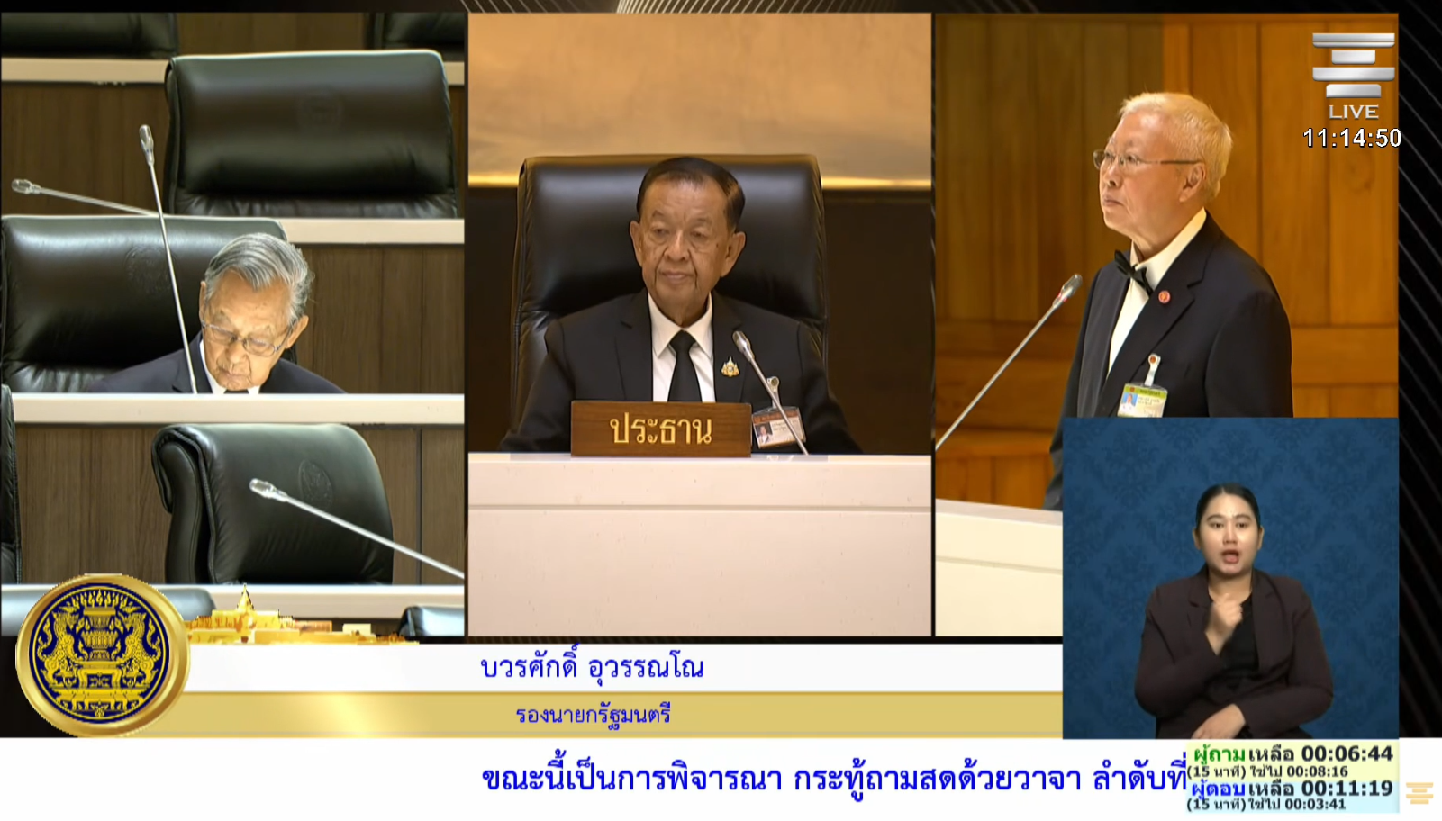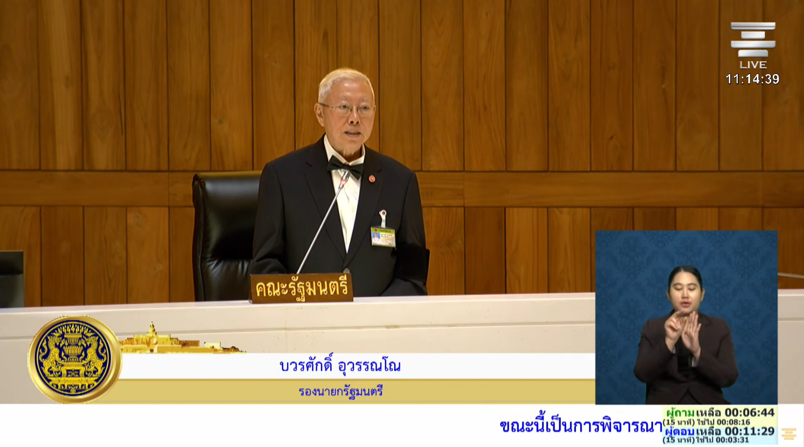 ศ.ดร.บวรศักดิ์ อุวรรณโณ รองนายกรัฐมนตรีฝ่ายกฎหมาย ได้รับมอบหมายให้เป็นผู้ตอบกระทู้ถามแทนนายกรัฐมนตรี กล่าวชี้แจงว่า รัฐบาลยินดีใช้กลไกที่มีอยู่เพื่อช่วยเหลือวัดที่เดือดร้อน โดยเฉพาะการเร่งรัดให้ “กองทุนวัดช่วยวัด” และ “กองทุนศาสนสมบัติกลาง” ซึ่งเป็นกองทุนที่ใช้จ่ายเงินตามงบประมาณประจำปีของสำนักงานพระพุทธศาสนาแห่งชาติ รับผิดชอบบริหารจัดการทรัพย์สินของวัด หรือศาสนสมบัติ ให้เกิดประโยชน์สูงสุดต่อพระพุทธศาสนา โดยให้ความช่วยเหลือวัดที่เดือดร้อนเรื่องค่าน้ำ ค่าไฟ หรือค่าน้ำมันที่ใช้ในการฌาปนกิจ ให้รีบติดต่อสำนักงานพระพุทธศาสนาแห่งชาติ หากงบประมาณจากกองทุนดังกล่าวไม่เพียงพอ รัฐบาลจะเสนอให้ใช้ “งบกลาง” เพื่อแก้ปัญหา แต่จำใช้จ่ายเงินเท่าที่จำเป็นเท่านั้น เพราะผู้ที่จะแก้ปัญหานี้ได้ดีที่สุด คือ คณะสงฆ์ และพุทธบริษัทเอง อย่างไรก็ตาม ตนจะนำเสนอเรื่องนี้เข้าสู่ที่ประชุมคณะรัฐมนตรี (ครม.) โดยเร็วที่สุด เพื่อให้มีมติสั่งการให้หน่วยงานสาธารณูปโภคที่รัฐบาลเป็นเจ้าของ เช่น ไฟฟ้าและประปา ผ่อนปรนระเบียบให้แก่วัดทั้งหลายโดยเร็ว