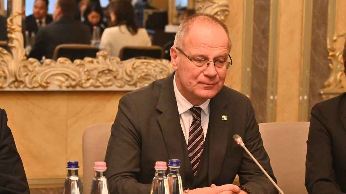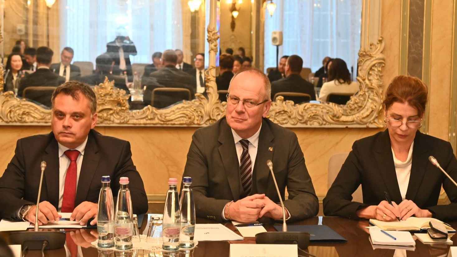นายวันมูหะมัดนอร์ มะทา ประธานรัฐสภา และประธานสภาผู้แทนราษฎร และคณะ เข้าเยี่ยมคารวะและหารือข้อราชการกับ นายทิบอร์ นาวราซิก รัฐมนตรีว่าการกระทรวงพัฒนาส่วนภูมิภาคแห่งฮังการี ณ ที่ทำการกระทรวง ในกรุงบูดาเปสต์ ประเทศฮังการี