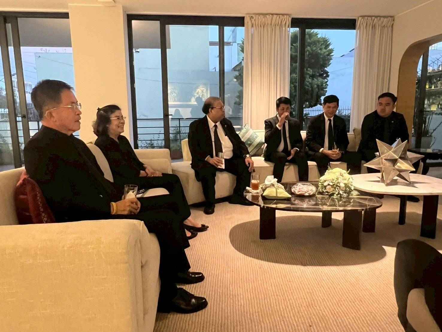 ด้าน ประธานกลุ่มมิตรภาพฯ ไทย - เปรู ได้กล่าวขอบคุณเอกอัครราชทูต ณ กรุงลิมา นายตรีเทพ นพคุณ อัครราชทูตที่ปรึกษา และเจ้าหน้าที่สถานเอกอัครราชทูตฯ ทุกคน ที่ได้ให้การต้อนรับอย่างอบอุ่น ให้การสนับสนุนเป็นอย่างดี และประสานกำหนดการพบปะหารือบุคคลสำคัญฝ่ายนิติบัญญัติ และกำหนดการเข้าร่วมงานฉลองครบ 60 ปี ความสัมพันธ์ทางการทูตระหว่างไทย - เปรู ในวันที่ 10 พฤศจิกายน 2568 ที่ผ่านมา ณ กระทรวงการต่างประเทศสาธารณรัฐเปรู ให้แก่ทางคณะฯ