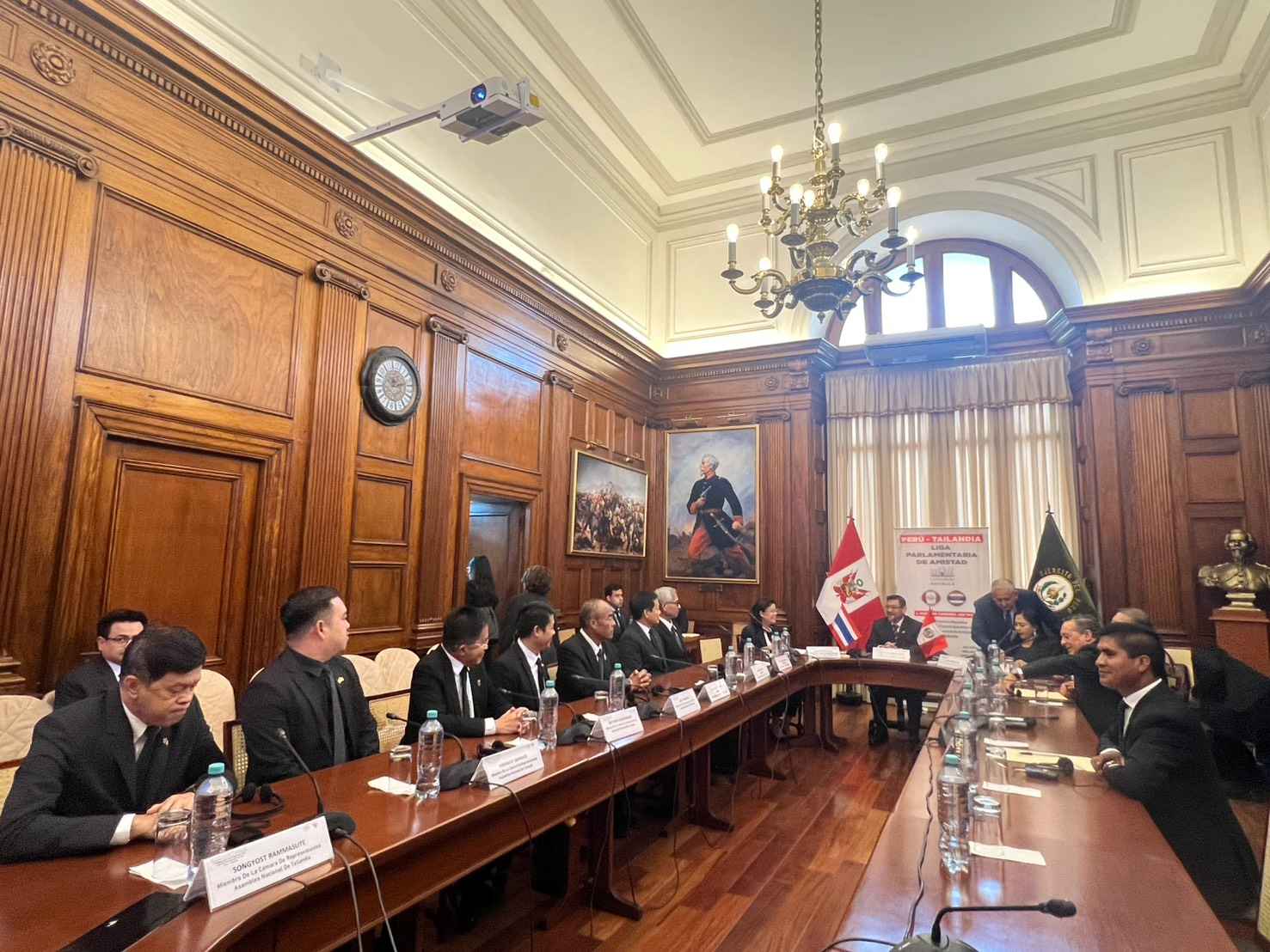 นางศิริวรรณ ปราศจากศัตรู สมาชิกสภาผู้แทนราษฎร ในฐานะประธานกลุ่มมิตรภาพสมาชิกรัฐาสภาไทย - เปรู พร้อมด้วย นายชาญวิศว์ บรรจงการ สมาชิกวุฒิสภา ในฐานะรองประธานกลุ่มมิตรภาพฯ นายทรงยศ รามสูต นายสาธิต ทวีผล สมาชิกสภาผู้แทนราษฎร ในฐานะกรรมการ กลุ่มมิตรภาพฯ นายนพดล พริ้งสกุล ผู้ช่วยศาสตราจารย์ นพดล อินนา สมาชิกวุฒิสภา ในฐานะกรรมการกลุ่มมิตรภาพฯ นายวิทยา แก้วภราดัย สมาชิกสภาผู้แทนราษฎรในฐานะกรรมการกลุ่มมิตรภาพฯ และนายสรพัช ศรีปราชญ์ สมาชิกสภาผู้แทนราษฎร ในฐานะกรรมการและเลขานุการ นายพิษณุ โสภณ เอกอัครราชทูต ณ กรุงลิมา และ นายตรีเทพ นพคุณ อัครราชทูตที่ปรึกษา สถานเอกอัครราชทูต ณ กรุงลิมา ประเทศเปรู ร่วมประชุมทวิภาคีกับบุคคลสำคัญฝ่ายรัฐสภาสาธารณรัฐเปรู ประกอบด้วย 1.นาย Gustavo Cordero Jon Tay สมาชิกสภาผู้แทนราษฎร ในฐานะประธานกลุ่มมิตรภาพสมาชิกรัฐสภาเปรู-ไทย 2. นาง Heidy Lisbeth Juarez Calle ประธานคณะกรรมาธิการต่างประเทศ 3. นาง Auristela Ana Obando Morgan อดีตประธานคณะกรรมาธิการต่างประเทศ 4. นาย Wilson Soto Palasios สมาชิกสภาผู้แทนราษฎรในฐานะสมาชิกกลุ่มมิตรภาพสมาชิกรัฐสภาเปรู - ไทย