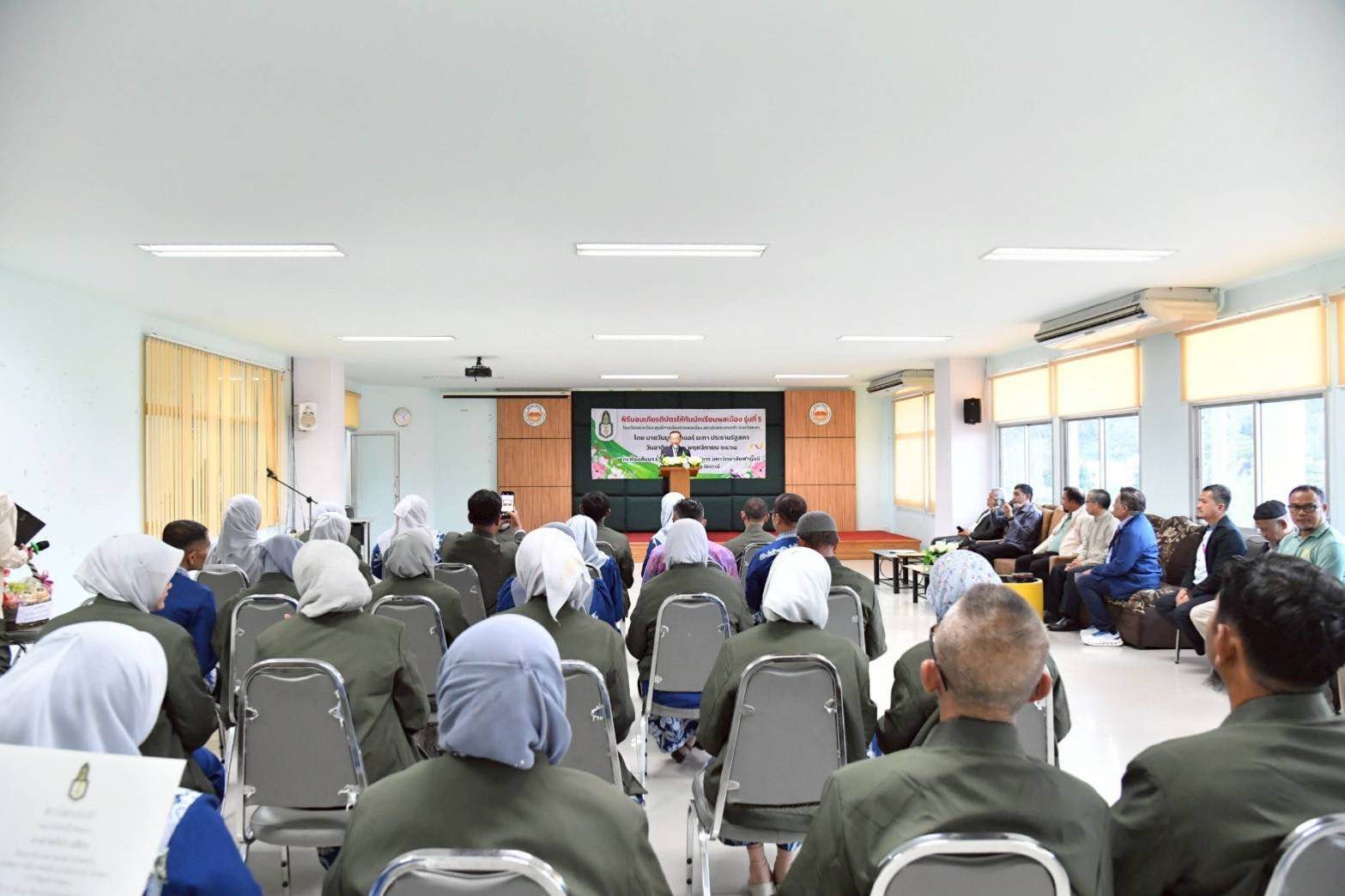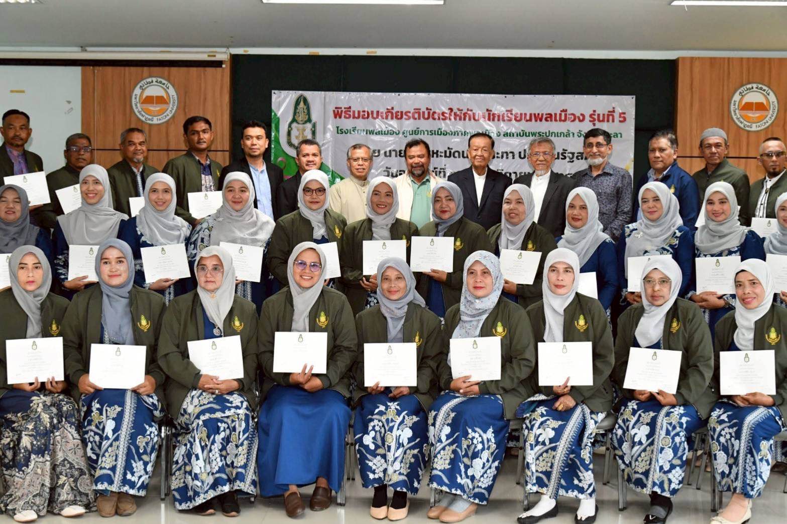 นายวันมูหะมัดนอร์ มะทา ประธานรัฐสภา เป็นประธานในพิธีมอบเกียรติบัตรนักเรียนโรงเรียนพลเมือง รุ่นที่ 5 ที่ผ่านการอบรมหลักสูตรพลเมืองกับการจัดการพื้นที่ด้วยกระบวนการนโยบายสาธารณะ ของศูนย์พัฒนาการเมืองภาคพลเมือง สถาบันพระปกเกล้า จังหวัดยะลา โดยมี รศ.อิสมาแอลลุตฟี จะกียา อธิการบดีมหาวิทยาลัยฟาฏอนี กล่าวต้อนรับ และนายรอซีดี เลิศอริยะพงษ์กุล ประธานมูลนิธิศูนย์กลางอิสลามเพื่อการพัฒนา ยะลา และประธานศูนย์พัฒนาการเมืองภาคพลเมือง สถาบันพระปกเกล้า จังหวัดยะลา กล่าวรายงาน ในการนี้ คณะผู้บริหารมหาวิทยาลัยฟาฏอนี และคณะกรรมการศูนย์การเมืองภาคพลเมือง จังหวัดยะลา ร่วมพิธี