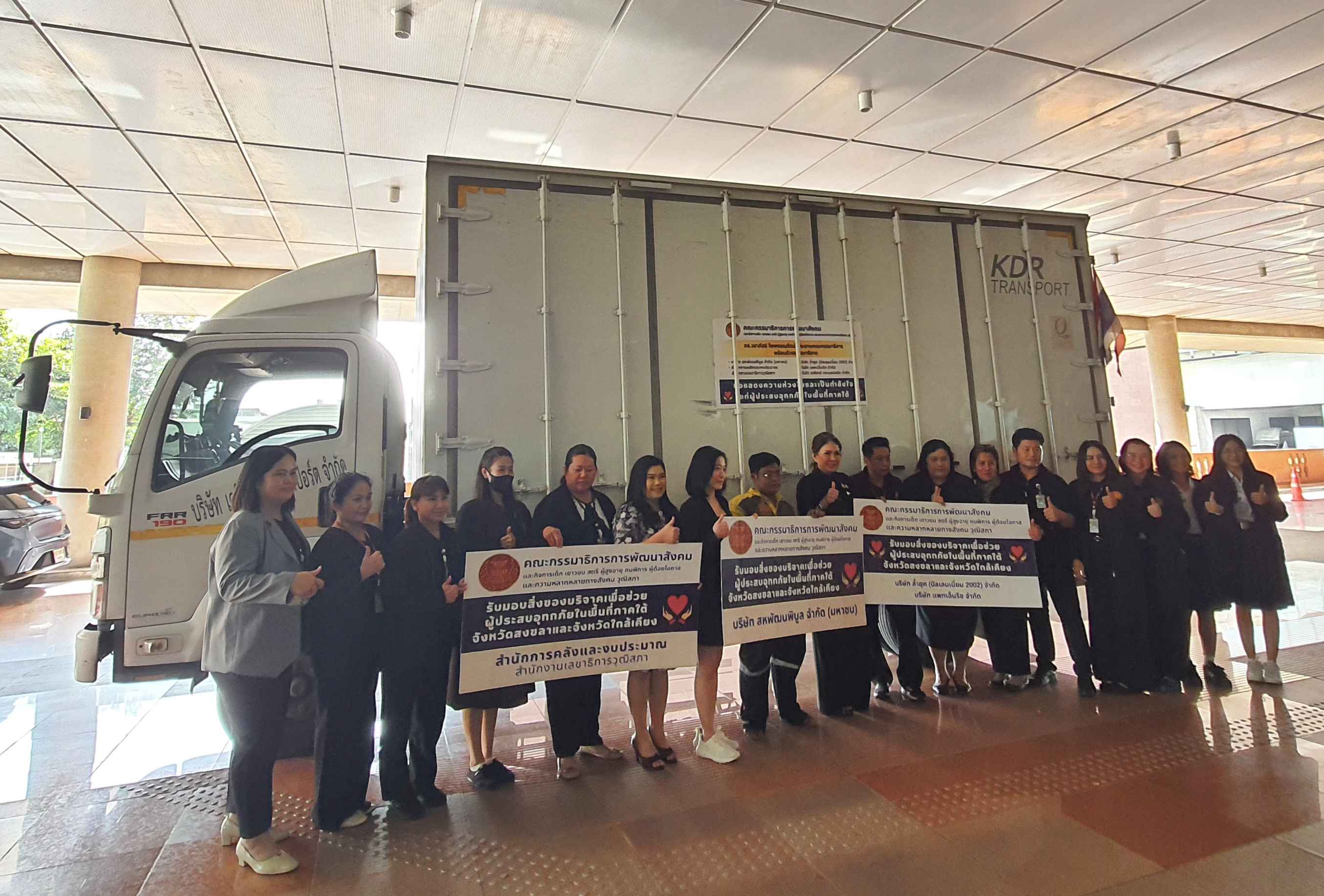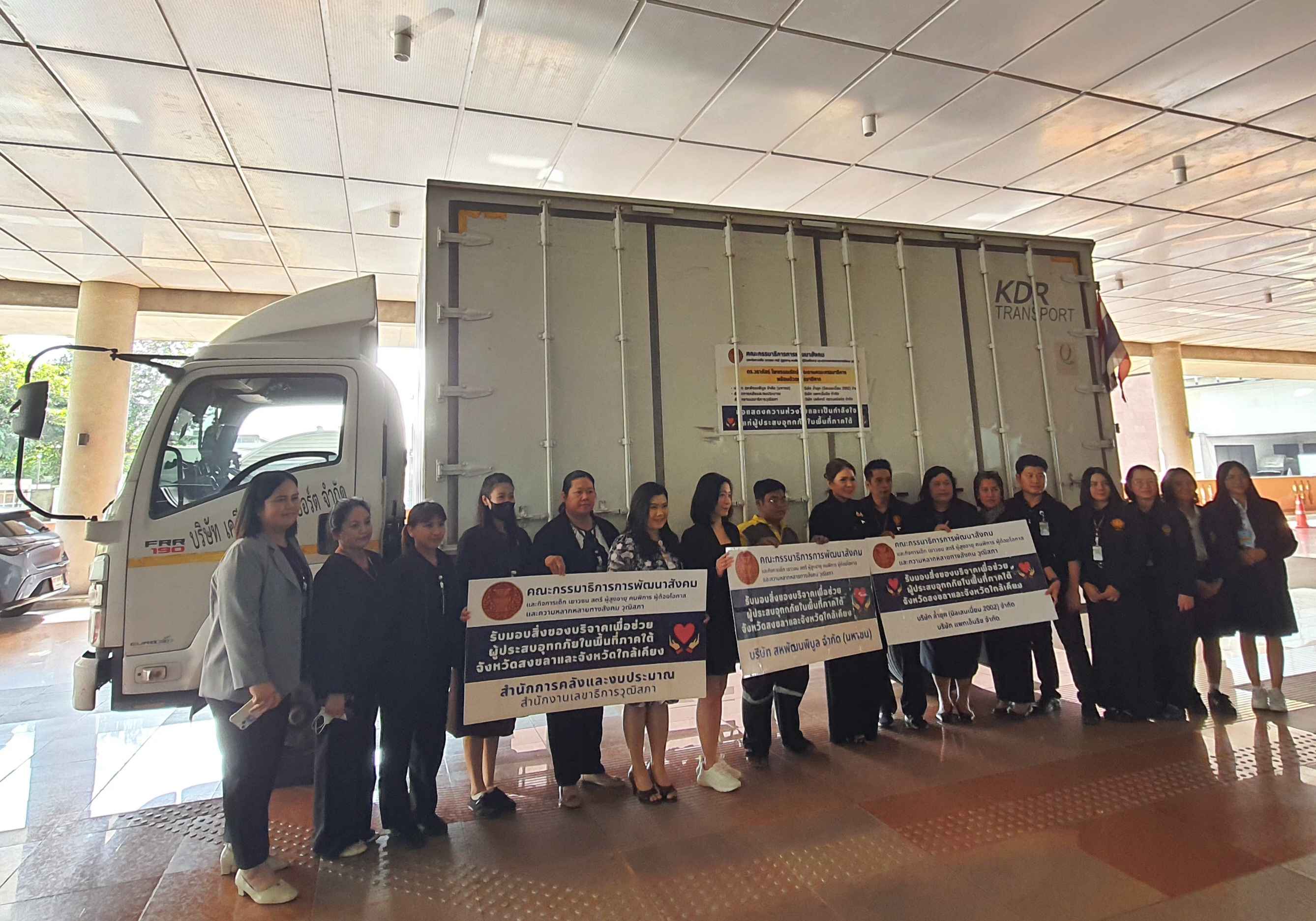 นางวราภัสร์ ไพพรรณรัตน์ ประธานคณะกรรมาธิการ (กมธ.) การพัฒนาสังคม และกิจการเด็ก เยาวชน สตรี ผู้สูงอายุ คนพิการ ผู้ด้อยโอกาส และความหลากหลายทางสังคม วุฒิสภา รับมอบสิ่งของบริจาคเพื่อช่วยเหลือผู้ประสบอุทกภัย (น้ำท่วม) ในพื้นที่ภาคใต้ จังหวัดสงขลา และจังหวัดใกล้เคียง จากภาคเอกชน นำโดย นางสาววิภาลักษณ์ มนัสจินดาวงศ์ กรรมการบริษัท สหพัฒนพิบูลย์ จำกัด (มหาชน) ผู้แทนจากบริษัท ล้ำยุค (มิลเลนเนี่ยม 2002) จำกัด ผู้แทนจากบริษัท แพทเอ็นริช จำกัด และสำนักการคลังและงบประมาณ สำนักงานเลขาธิการวุฒิสภา สำหรับสิ่งของที่ได้รับบริจาคในครั้งนี้ คือ บะหมี่กึ่งสำเร็จรูปที่ได้รับการรับรองตามมาตรฐานฮาลาล จำนวน 3,600 ซอง เครื่องดื่ม และผ้าห่มกันหนาว