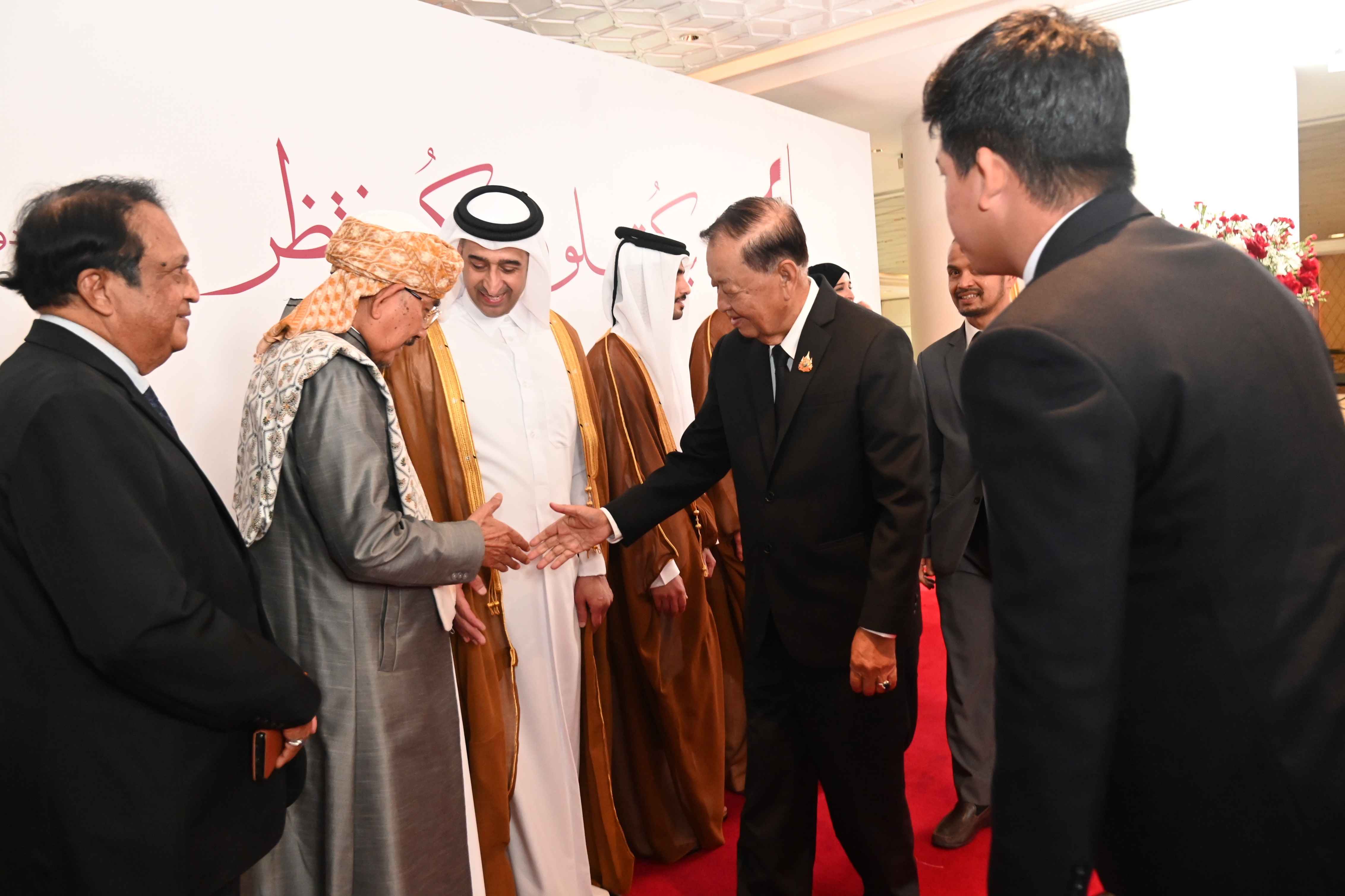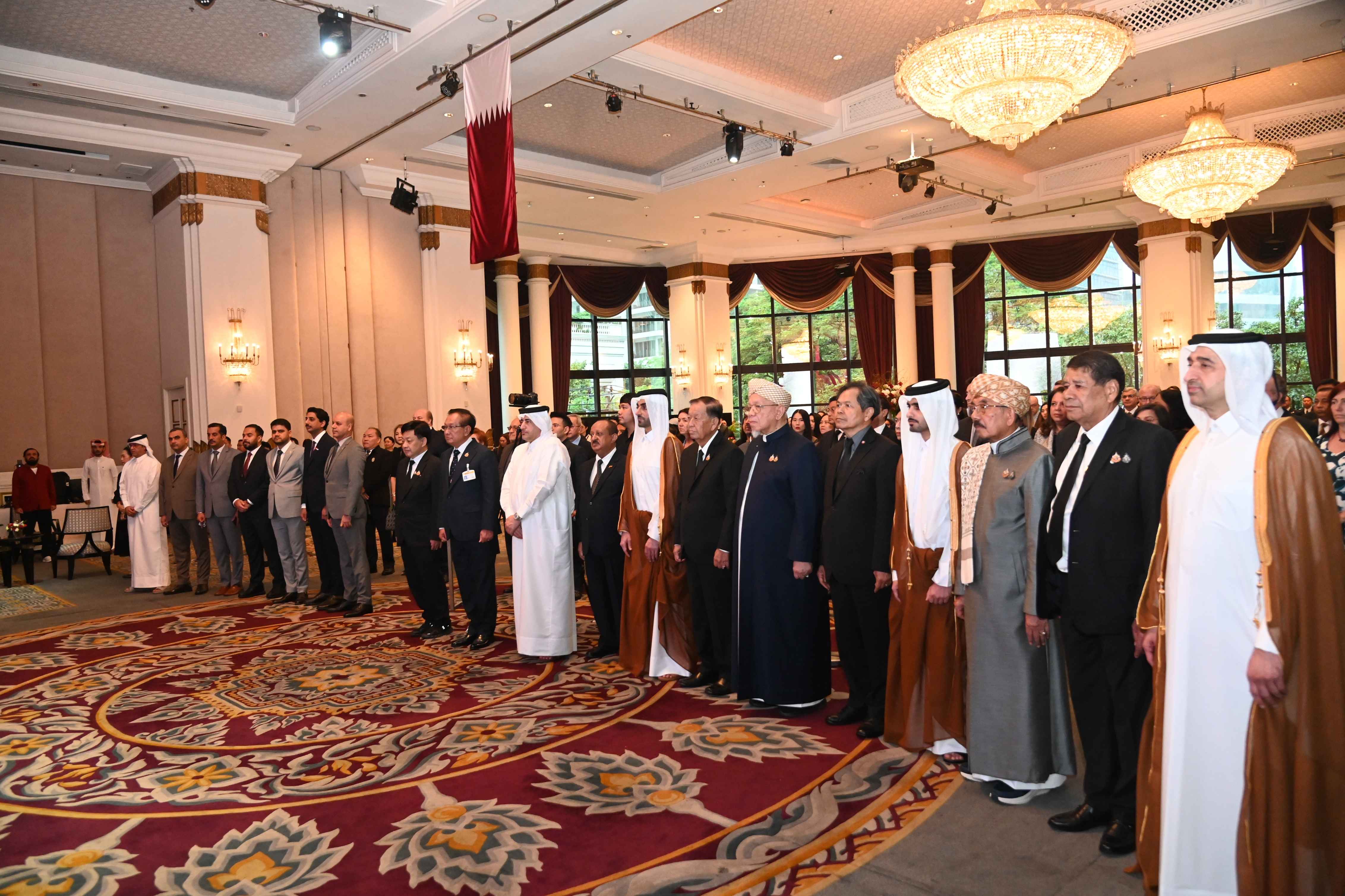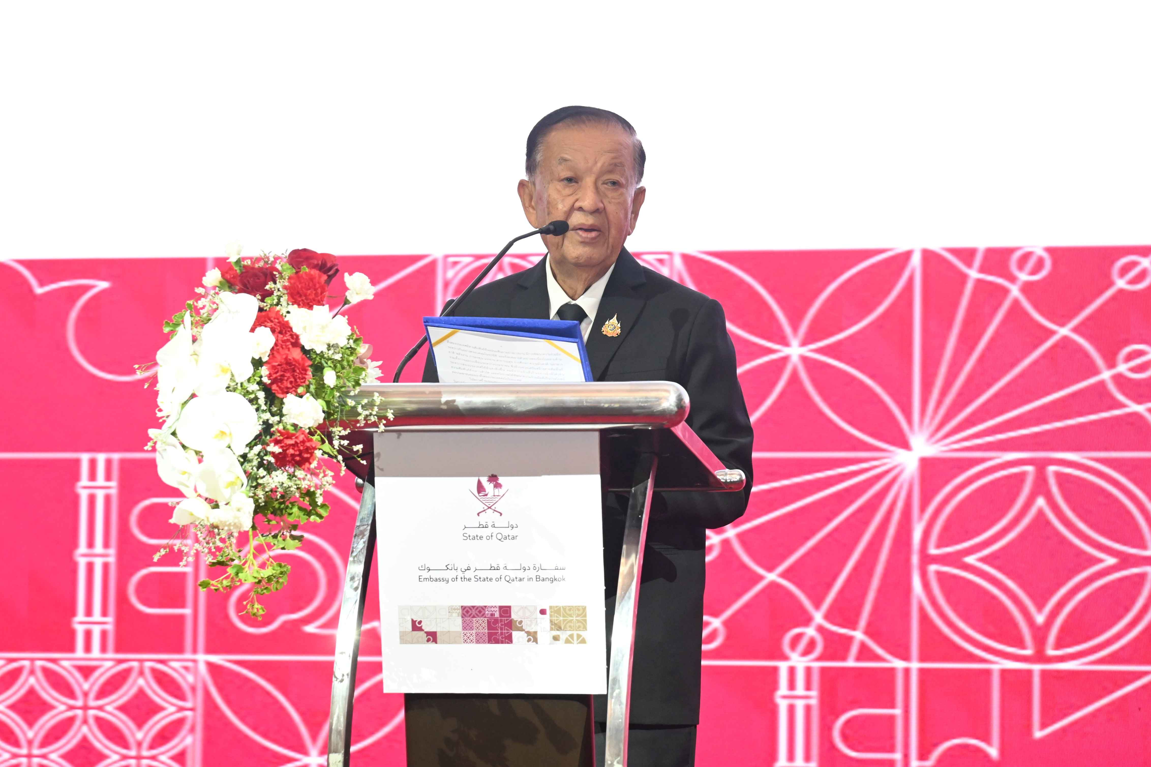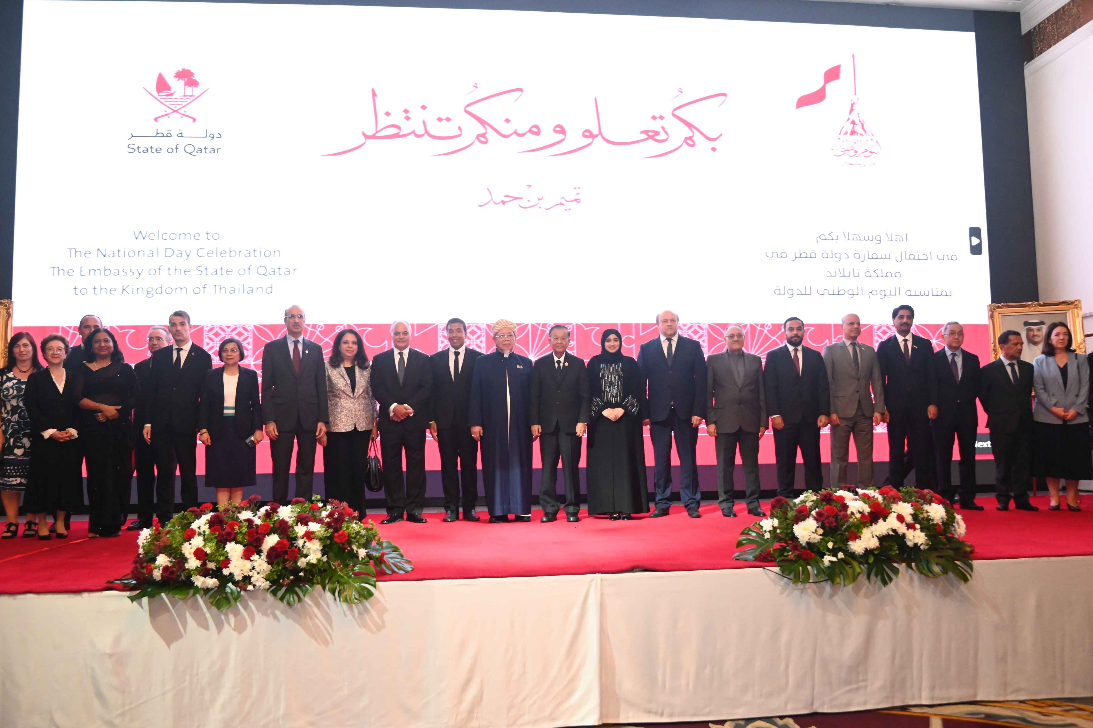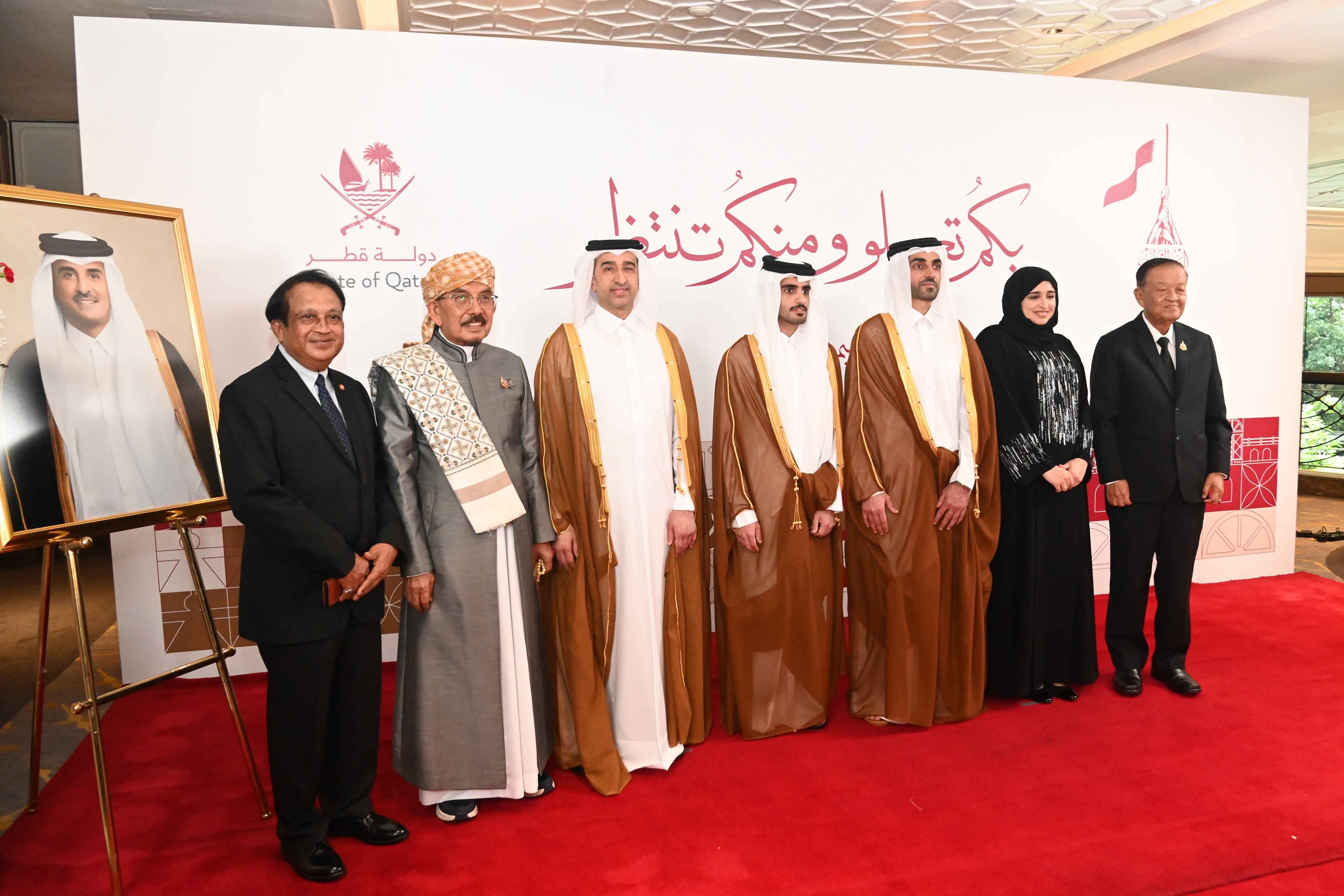 โอกาสนี้ ประธานรัฐสภา ในฐานะแขกเกียรติยศ ได้มอบแจกันดอกไม้เพื่อแสดงความยินดีในโอกาสดังกล่าว และได้ขึ้นกล่าวสุนทรพจน์แสดงความยินดี พร้อมทั้งตัดเค้กร่วมกับอุปทูตฯ ในโอกาสดังกล่าว โดยได้กล่าวถึงความสัมพันธ์ของทั้งสองประเทศที่มีมาอย่างยาวนาน ซึ่งปีนี้ครบรอบ 45 ปี การสถาปนาความสัมพันธ์ทางการทูตระหว่างรัฐกาตาร์และราชอาณาจักรไทย ตั้งแต่วันที่ 7 สิงหาคม 2523 พร้อมทั้งกล่าวชื่นชมรัฐกาตาร์สำหรับความก้าวหน้าในหลากหลายด้าน โดยเฉพาะอย่างยิ่งในด้านพลังงาน โครงสร้างพื้นฐาน การศึกษา การสาธารณสุข และสวัสดิการสังคม ด้วยความเชื่อมั่นที่ว่า การพัฒนาคนคือการลงทุนอันยิ่งใหญ่ที่สุด เพื่อขับเคลื่อนความเจริญรุ่งเรืองและความยั่งยืนของประเทศ