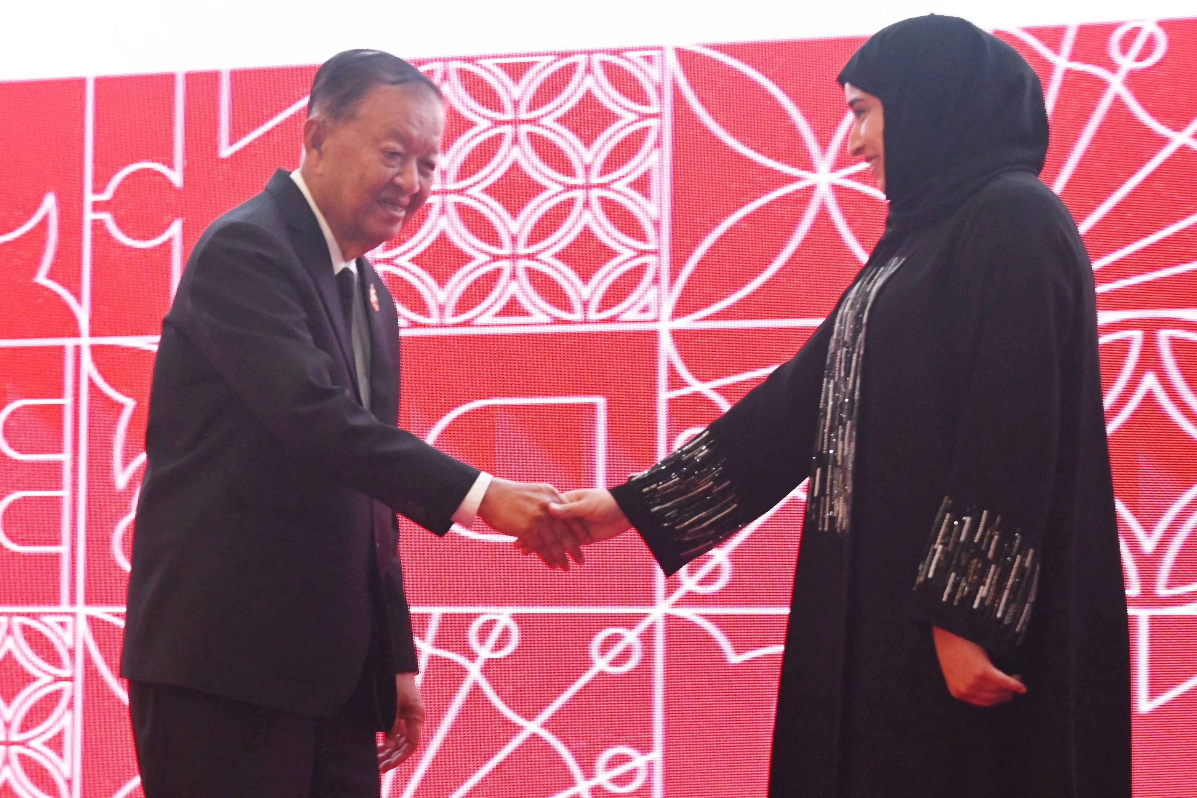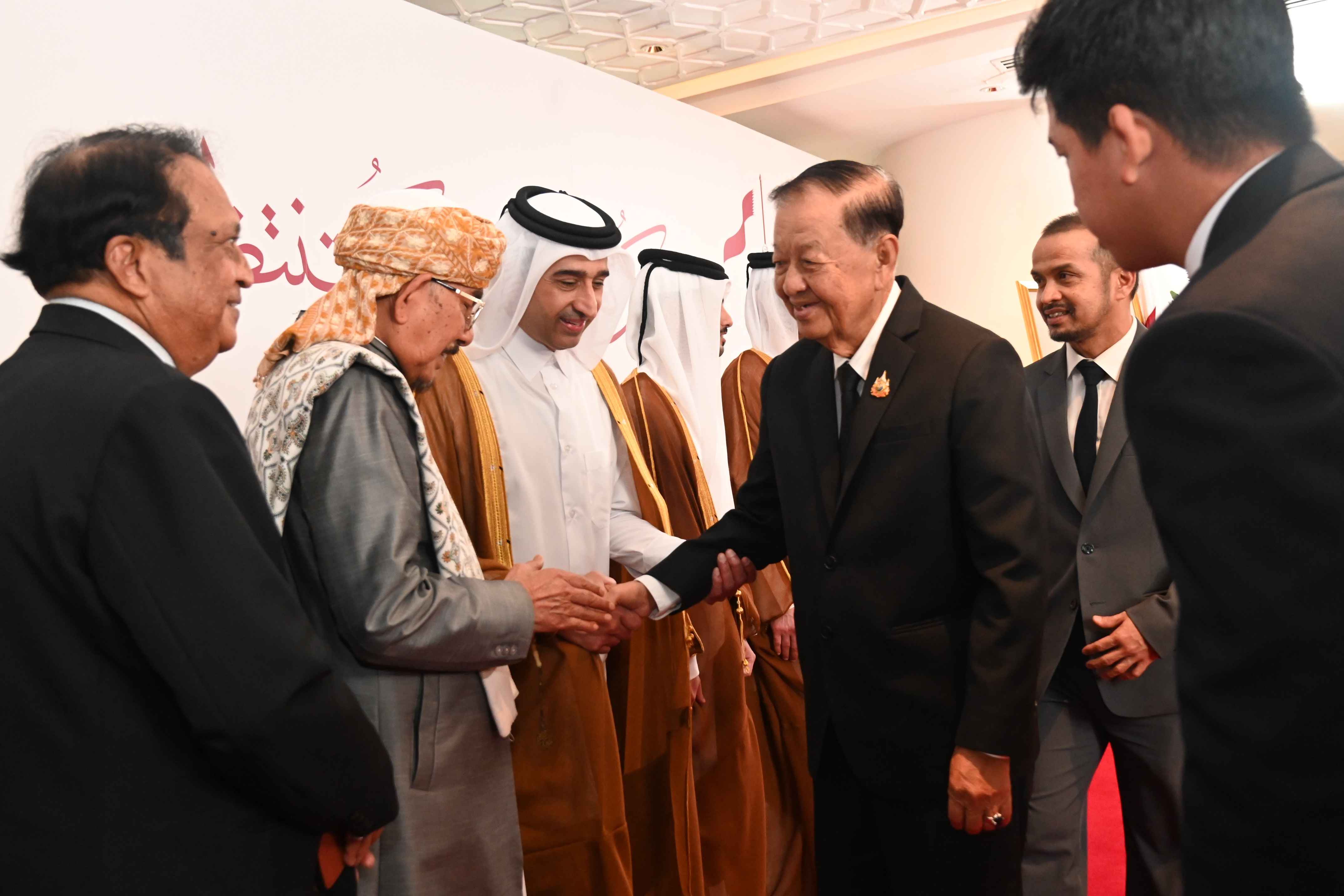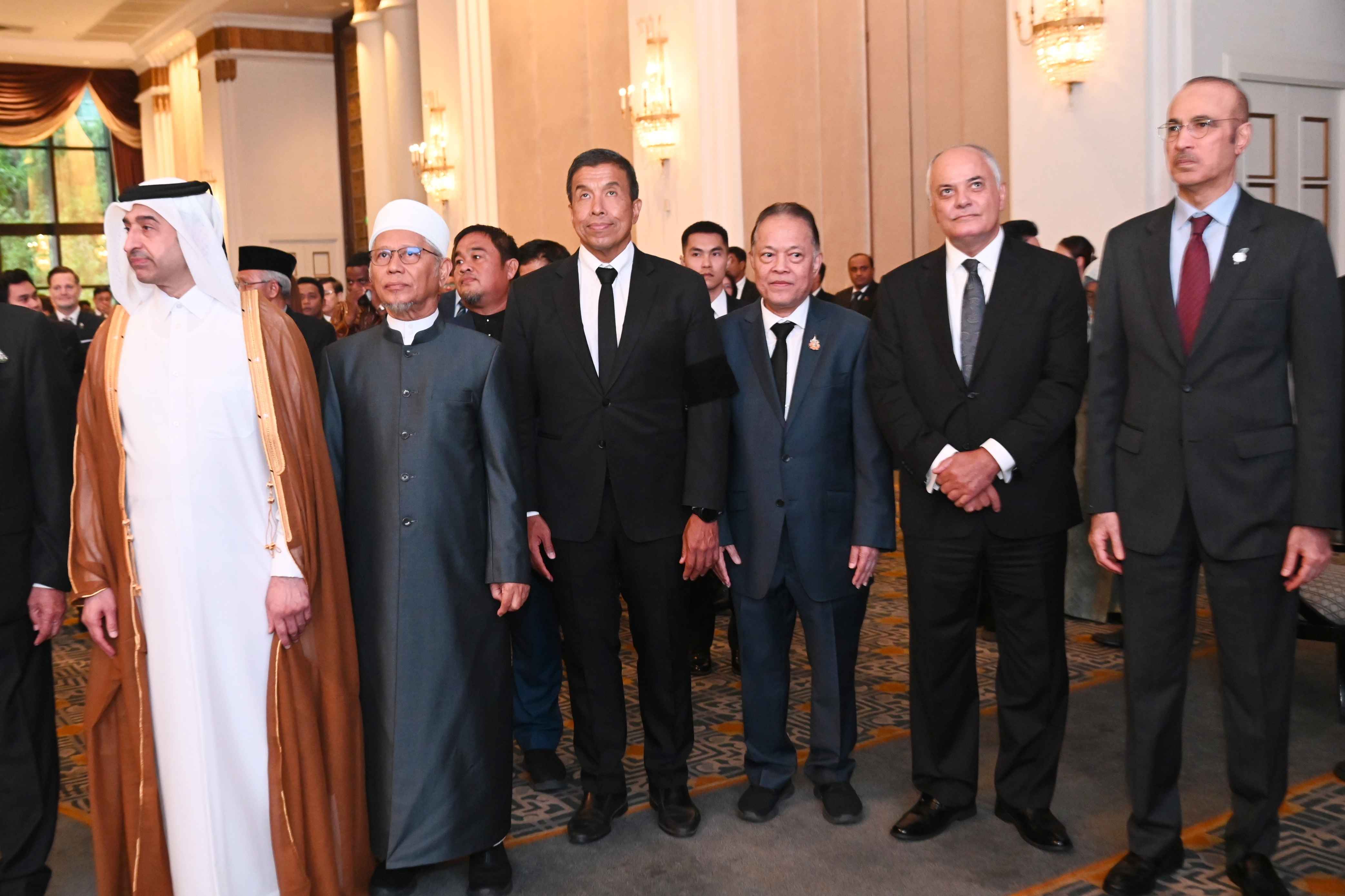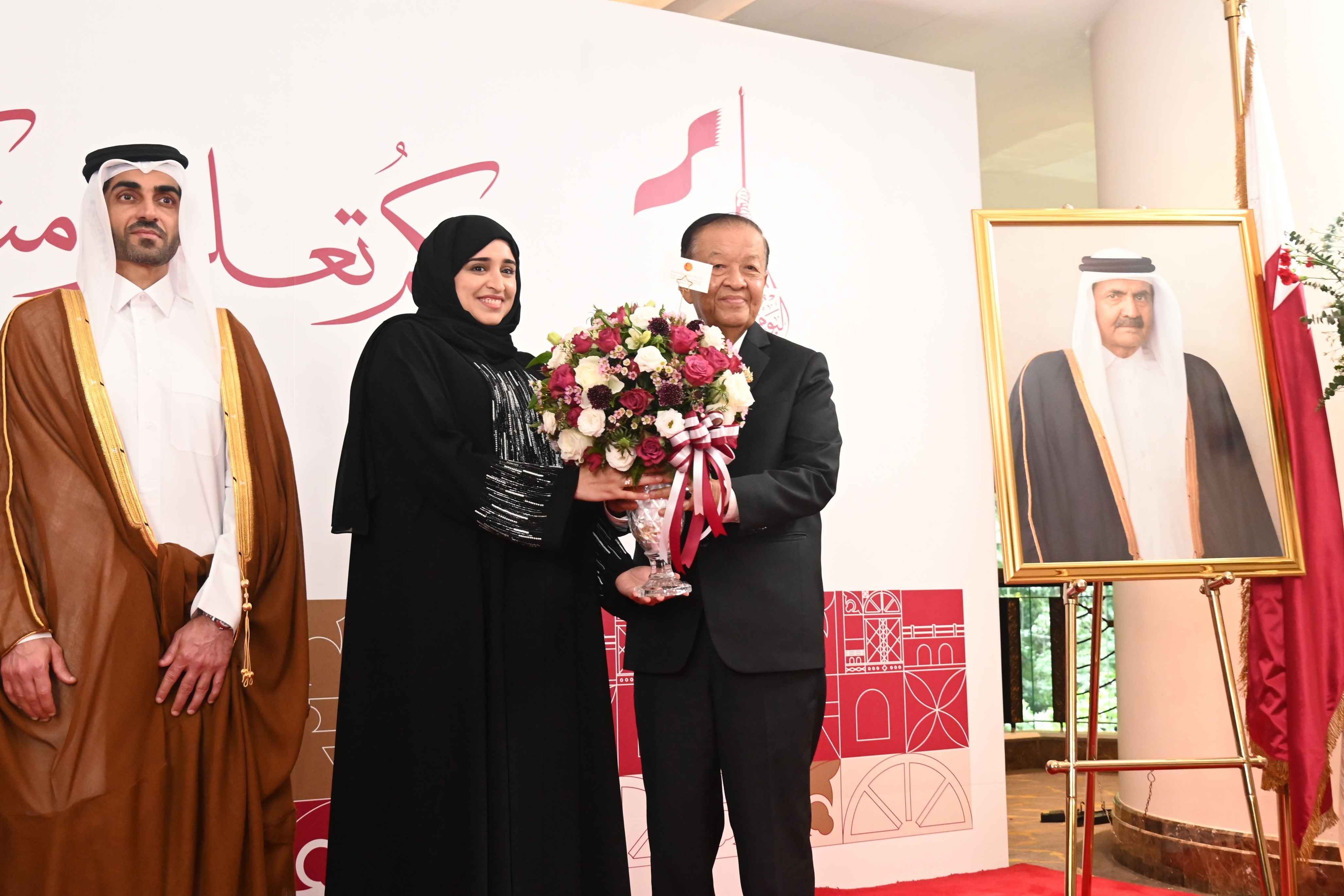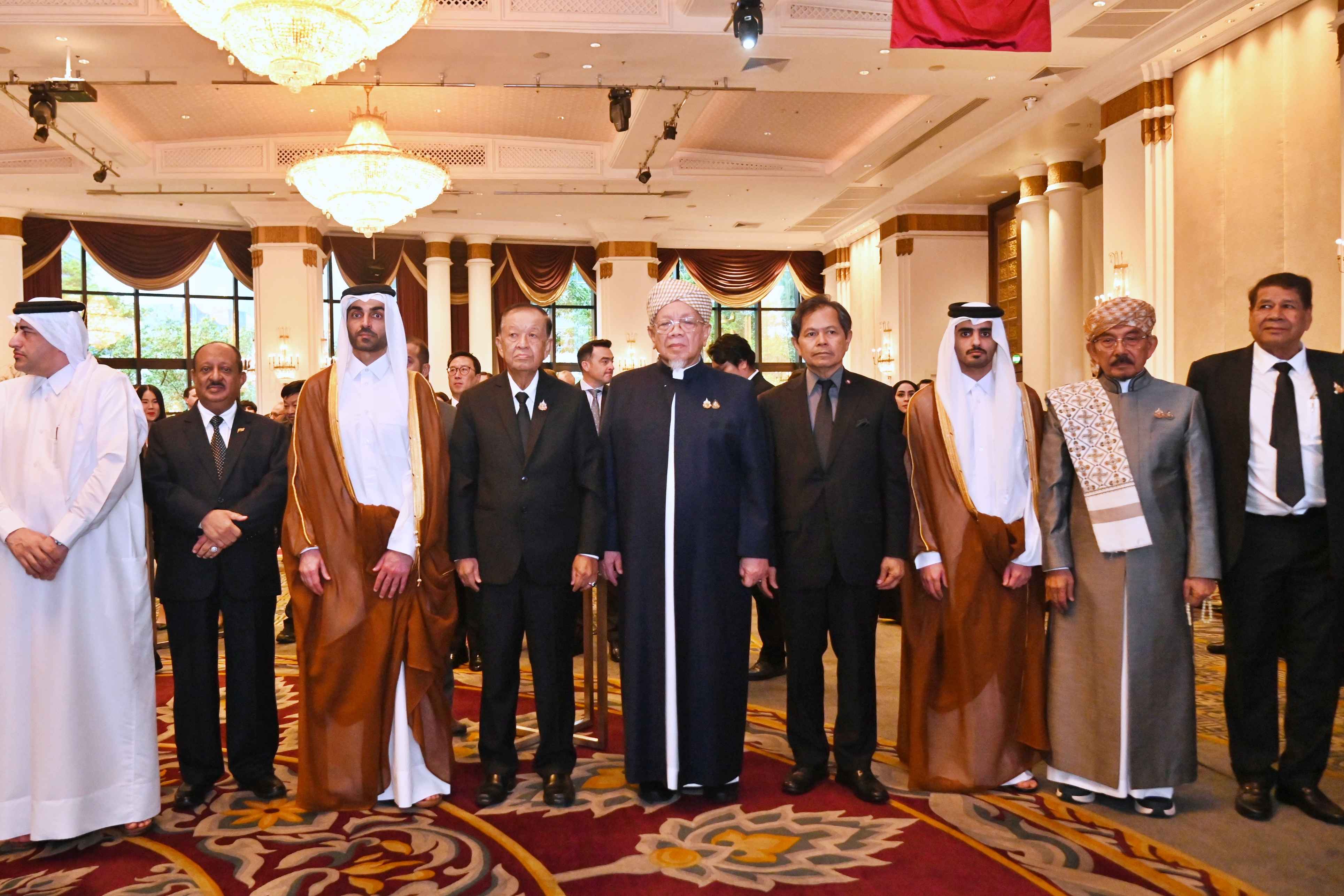 โอกาสนี้ ประธานรัฐสภา ในฐานะแขกเกียรติยศ ได้มอบแจกันดอกไม้เพื่อแสดงความยินดีในโอกาสดังกล่าว และได้ขึ้นกล่าวสุนทรพจน์แสดงความยินดี พร้อมทั้งตัดเค้กร่วมกับอุปทูตฯ ในโอกาสดังกล่าว โดยได้กล่าวถึงความสัมพันธ์ของทั้งสองประเทศที่มีมาอย่างยาวนาน ซึ่งปีนี้ครบรอบ 45 ปี การสถาปนาความสัมพันธ์ทางการทูตระหว่างรัฐกาตาร์และราชอาณาจักรไทย ตั้งแต่วันที่ 7 สิงหาคม 2523 พร้อมทั้งกล่าวชื่นชมรัฐกาตาร์สำหรับความก้าวหน้าในหลากหลายด้าน โดยเฉพาะอย่างยิ่งในด้านพลังงาน โครงสร้างพื้นฐาน การศึกษา การสาธารณสุข และสวัสดิการสังคม ด้วยความเชื่อมั่นที่ว่า การพัฒนาคนคือการลงทุนอันยิ่งใหญ่ที่สุด เพื่อขับเคลื่อนความเจริญรุ่งเรืองและความยั่งยืนของประเทศ