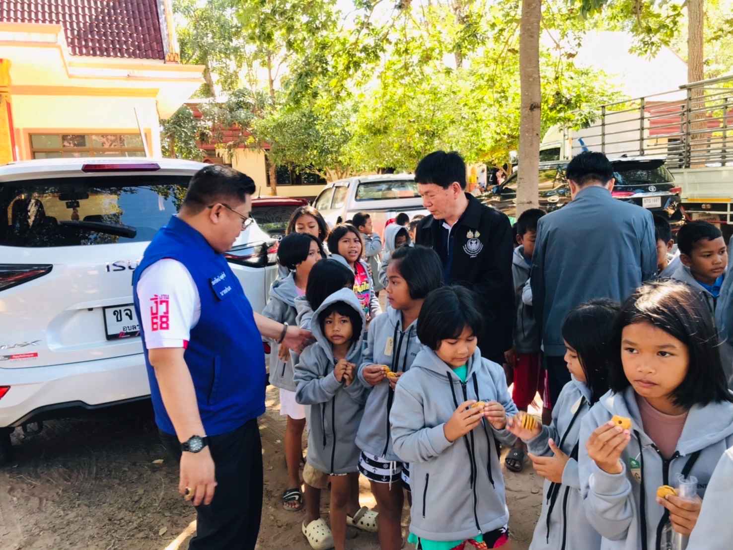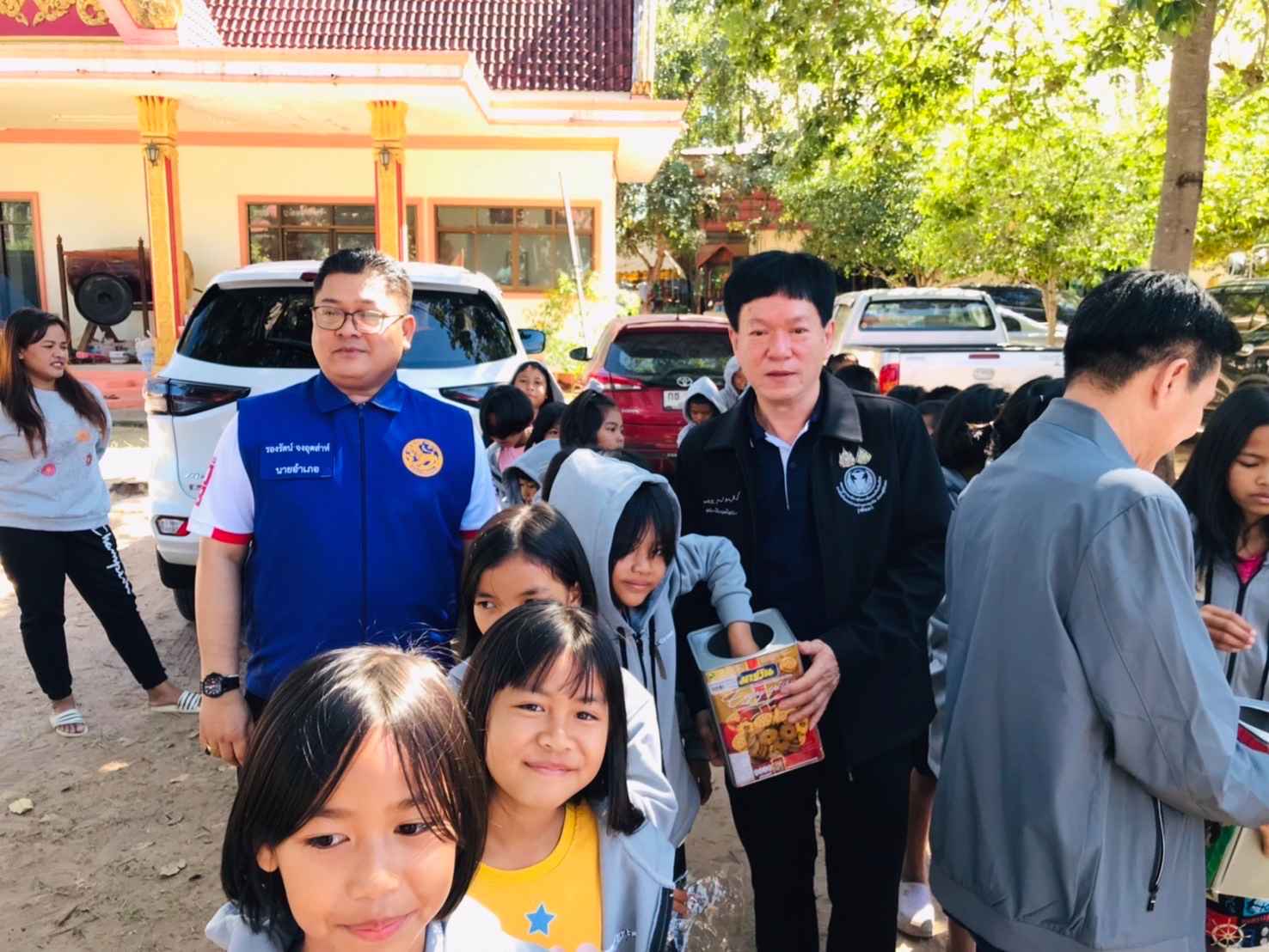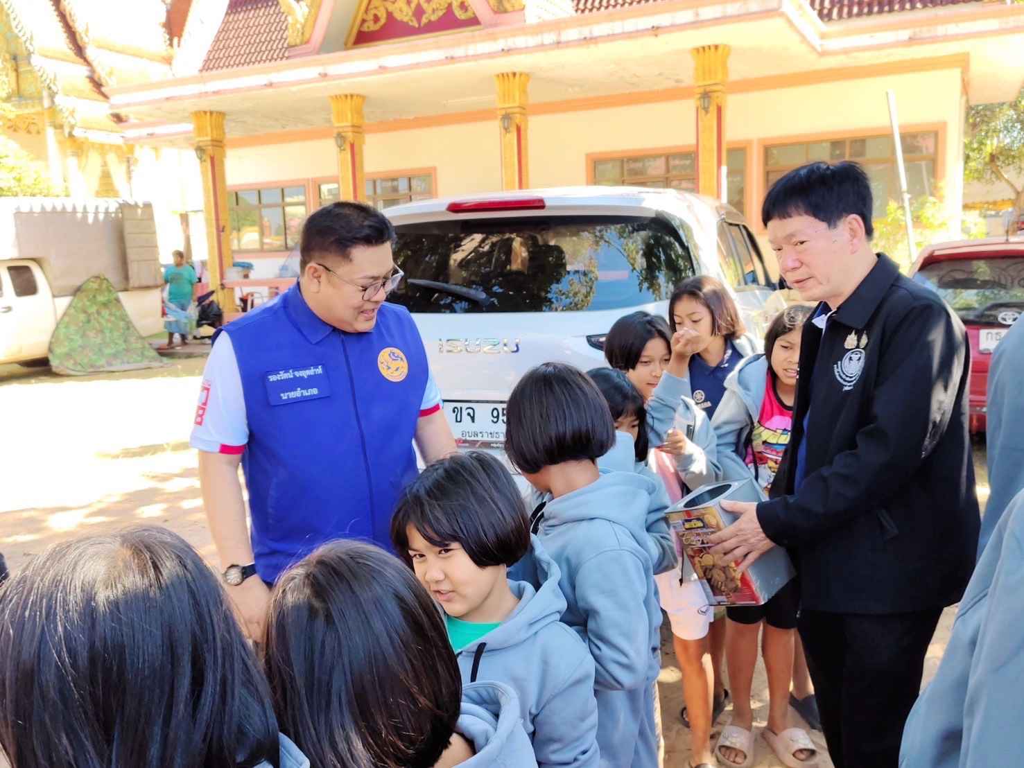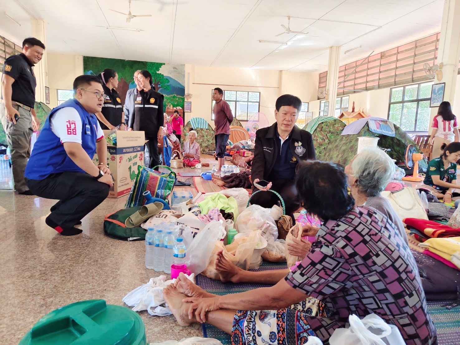 นายกฤษณุ เหลืองพิบูลกิจ สมาชิกวุฒิสภา (สว.) ในฐานะกรรมการขับเคลื่อนโครงการสมาชิกวุฒิสภาพบประชาชน กลุ่มภาคตะวันออกเฉียงเหนือ (ตอนล่าง) ลงพื้นที่เยี่ยมให้กำลังใจและมอบสิ่งของให้กับประชาชนที่ได้รับผลกระทบจากสถานการณ์ความไม่สงบตามแนวชายแดนไทย–กัมพูชา ณ ศูนย์พักพิงชั่วคราววัดเทพนิมิต อำเภอเมืองสุรินทร์ จังหวัดสุรินทร์ โดยมี นายรองรัตน์ จงอุตส่าห์ นายอำเภอเมืองสุรินทร์ พร้อมด้วย พระมหาสมศักดิ์ อริโย เจ้าอาวาสวัดจุมพลสุทธาวาส ปลัดอำเภอ ผู้ใหญ่บ้านในพื้นที่ จิตอาสา และเจ้าหน้าที่ที่เกี่ยวข้อง นำเยี่ยมศูนย์ฯ ดังกล่าวและให้ข้อมูล