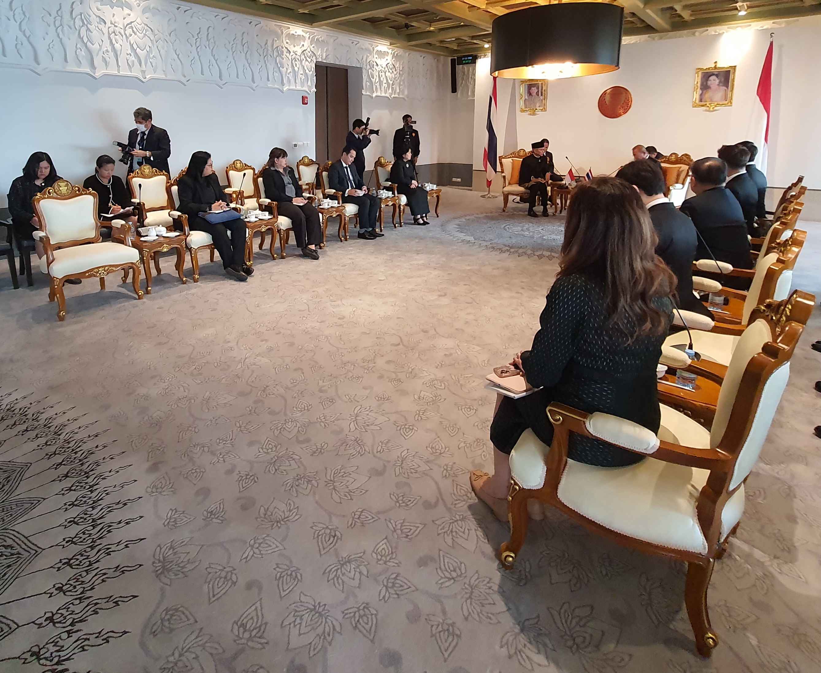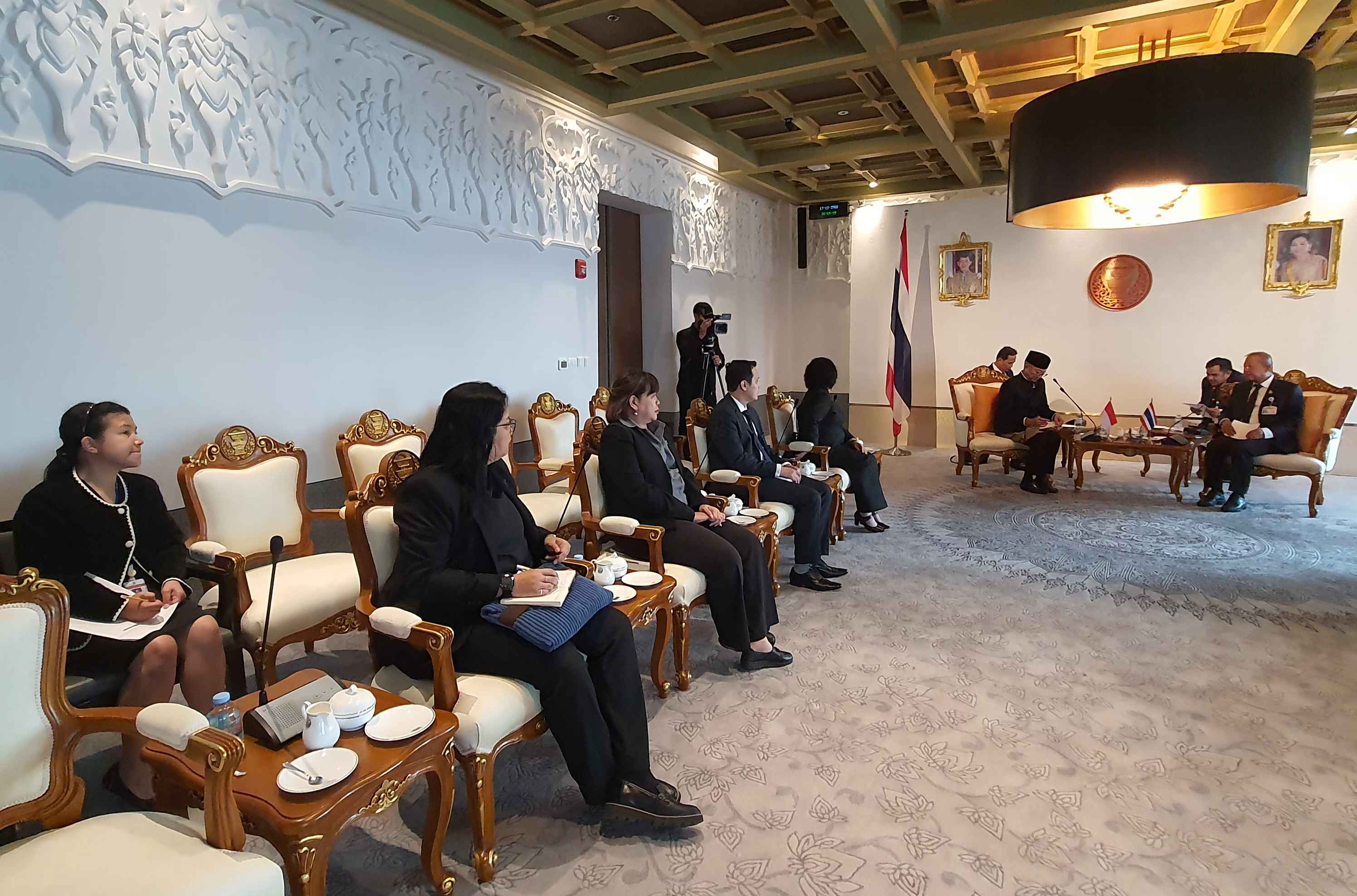 ด้าน นายรัคมัต บูดีมัน กล่าวว่า ตลอดระยะเวลาการปฏิบัติหน้าที่ในประเทศไทย ได้รับความร่วมมือและมิตรไมตรีจากประธานวุฒิสภาและรัฐสภาไทยเป็นอย่างดี พร้อมขอบคุณที่ได้เข้าร่วมกิจกรรมเฉลิมฉลองความสัมพันธ์ 75 ปี และชื่นชมบทบาทของประธานวุฒิสภาในการส่งเสริมผลิตภัณฑ์ชุมชน การเกษตร เศรษฐกิจฐานราก และศิลปวัฒนธรรมเอกอัครราชทูตฯ ยังขอบคุณรัฐบาลและรัฐสภาไทย ที่ให้ความช่วยเหลือนำเหยื่อชาวอินโดนีเซียจำนวนมากซึ่งตกเป็นเหยื่อแก๊งหลอกลวงออนไลน์ในประเทศเมียนมา เดินทางกลับประเทศโดยผ่านประเทศไทย พร้อมยืนยันว่าอินโดนีเซียพร้อมสนับสนุนความร่วมมือกับไทยในการปราบปรามอาชญากรรมออนไลน์
