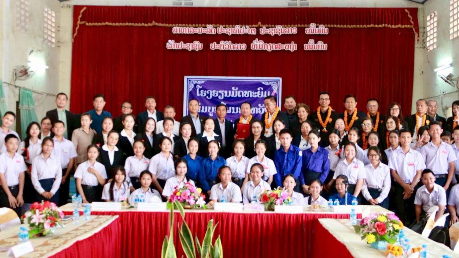 นอกจากนี้ คณะฯ ยังเข้าร่วมประชุมทวิภาคีกับดร.สุกสมพอน อะโนทัย หัวหน้าแผนกศึกษาแขวงสะหวันนะเขต ผู้อำนวยการโรงเรียนมัธยมสมบูรณ์โพนสะหวัน คณะผู้บริหาร ครู นักเรียน และบุคลากรทางการศึกษาที่เกี่ยวข้อง ณ โรงเรียนมัธยมสมบูรณ์โพนสะหวัน แขวงสะหวันนะเขต สปป.ลาว และได้หารือแลกเปลี่ยนความคิดเห็นเกี่ยวกับการจัดการศึกษาและแนวทางในการพัฒนาความร่วมมือทางด้านจัดการศึกษา รวมทั้งการให้การสนับสนุนในด้านต่าง ๆ ที่เกี่ยวข้องกับการศึกษาของทั้งสองประเทศ อาทิ การส่งเสริมสนับสนุนความร่วมมือทางด้านจัดการศึกษาร่วมกันในประเด็นต่าง ๆ การจัดกิจกรรมแลกเปลี่ยนเรียนรู้ร่วมกัน เช่น การพัฒนาครูระบบ AI การส่งเสริมสนับสนุนโรงเรียนที่สามารถรับนักเรียนแบบมาเช้าเย็นกลับ การจัดกิจกรรมส่งเสริมสนับสนุนทางด้านศิลปะ ดนตรี กีฬา และวัฒนธรรม โดยเฉพาะทางด้านกีฬาซึ่งคณะกมธ. เห็นว่าควรส่งเสริมสนับสนุน ทั้งนี้ โรงเรียนมีความต้องการให้จัดตั้งวงโยธวาทิตเพื่อเพิ่มศักยภาพของนักเรียนและเพิ่มขีดความสามารถในการแข่งขันทางด้านกีฬา โรงเรียนดังกล่าวเป็นโรงเรียนที่ได้จัดทำบันทึกข้อตกลงความร่วมมือทางการศึกษากับโรงเรียนมุกดาหาร จังหวัดมุกดาหาร ซึ่งโรงเรียนมุกดาหารจะได้ประสานงานและดำเนินการเกี่ยวกับเรื่องดังกล่าวกับคณะกมธ.ต่อไป