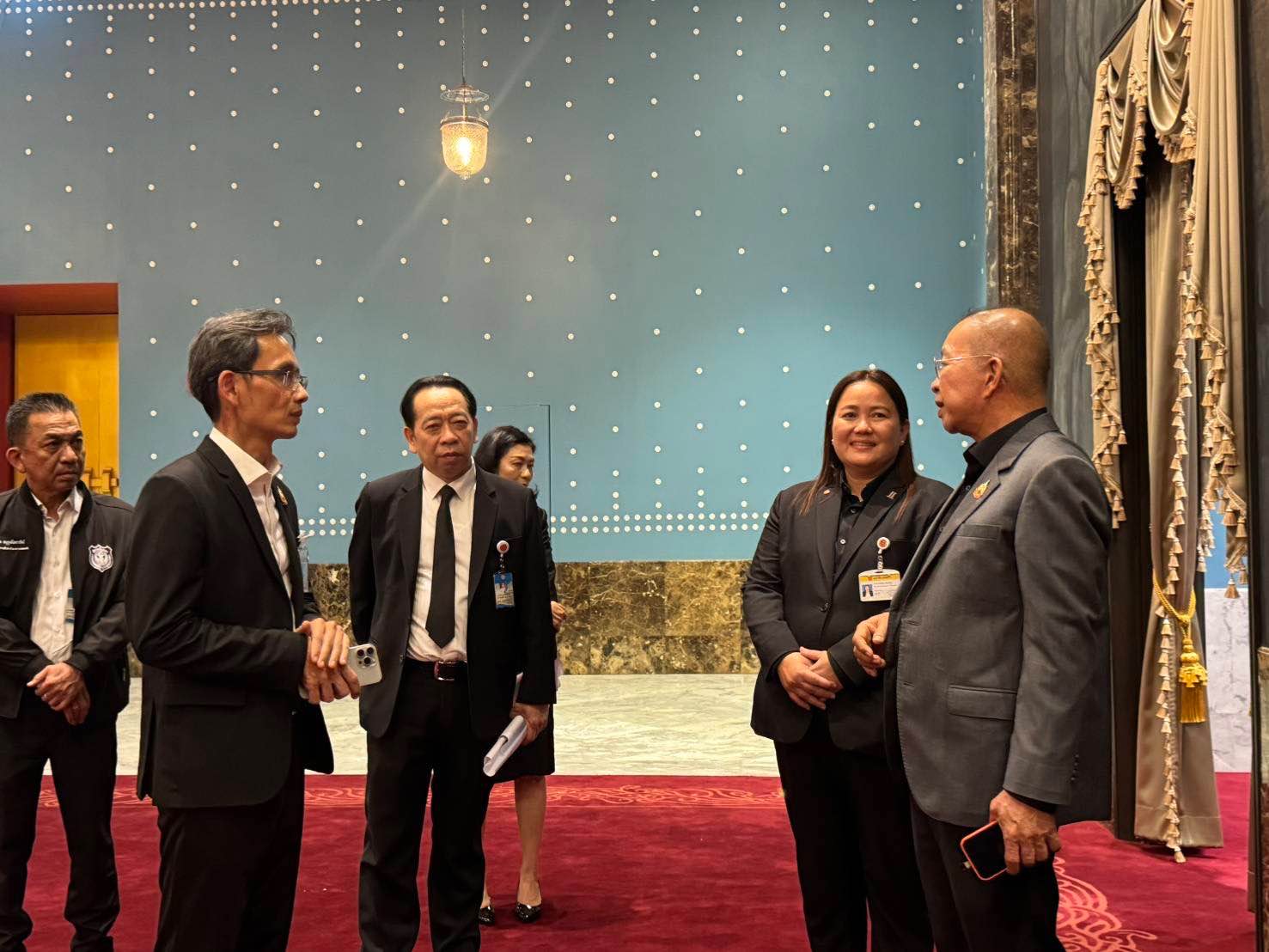 ในโอกาสนี้ นายมงคล สุระสัจจะ ประธานวุฒิสภา ในฐานะประธานรัฐสภา ได้หารือกับคณะทำงานเกี่ยวกับรายละเอียดการจัดพิธี โดยเฉพาะการรองรับการถวายสัตย์ปฏิญาณของสมาชิกสภาผู้แทนราษฎร ชุดใหม่ ให้เป็นไปอย่างถูกต้องตามขั้นตอนและข้อบังคับที่เกี่ยวข้อง นอกจากนี้ ยังได้มีการหารือถึงข้อกำหนด ระเบียบปฏิบัติ และลำดับขั้นตอนต่าง ๆ ที่จะใช้ในวันจัดพิธี เพื่อให้ทุกฝ่ายปฏิบัติเป็นไปในทิศทางเดียวกันอย่างเคร่งครัด