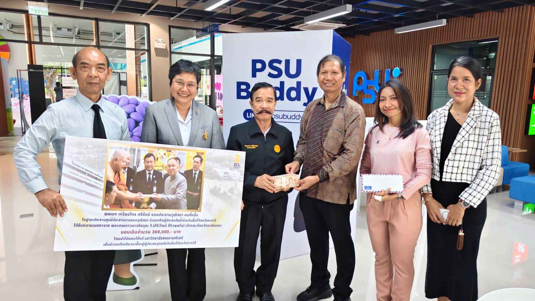 สำหรับเงินบริจาคดังกล่าว รองประธานวุฒิสภา คนที่หนึ่ง ในฐานะประธานศูนย์ประสานงานของวุฒิสภา ช่วยเหลือผู้ประสบภัยน้ำท่วมในพื้นที่จังหวัดภาคใต้ ได้รับความเมตตาจาก พระเทพภาวนาวชิรคุณ เจ้าอาวาสวัดโสธรวรารามวรวิหาร และเจ้าคณะจังหวัดฉะเชิงเทรา ให้นำไปมอบให้แก่ มหาวิทยาลัยสงขลานครินทร์ เพื่อช่วยเหลือเยียวยาฟื้นฟูผู้ประสบอุทกภัยในพื้นที่จังหวัดภาคใต้ โดย ม.อ.หาดใหญ่ มีบทบาทเป็นอย่างมาก ในการช่วยเหลือผู้ประสบภัยในพื้นที่อำเภอหาดใหญ่ จังหวัดสงขลา และพื้นที่ใกล้เคียง ในการเกิดมหาอุทกภัยครั้งใหญ่ของจังหวัดสงขลา เมื่อเดือน พ.ย.68 ที่ผ่านมา โดยเป็นที่ตั้งศูนย์พักพิง เพื่อรองรับประชาชนที่ได้รับผลกระทบตั้งแต่วันที่ 22 พ.ย.68 ซึ่งมีผู้เดือดร้อนจากอุทกภัยเข้ามาพักอาศัยชั่วคราว จำนวน 14,000 คน และมีการดำเนินการฟื้นฟูพื้นที่ประสบภัยเยียวยาช่วยเหลือผู้ได้รับผลกระทบอย่างต่อเนื่อง