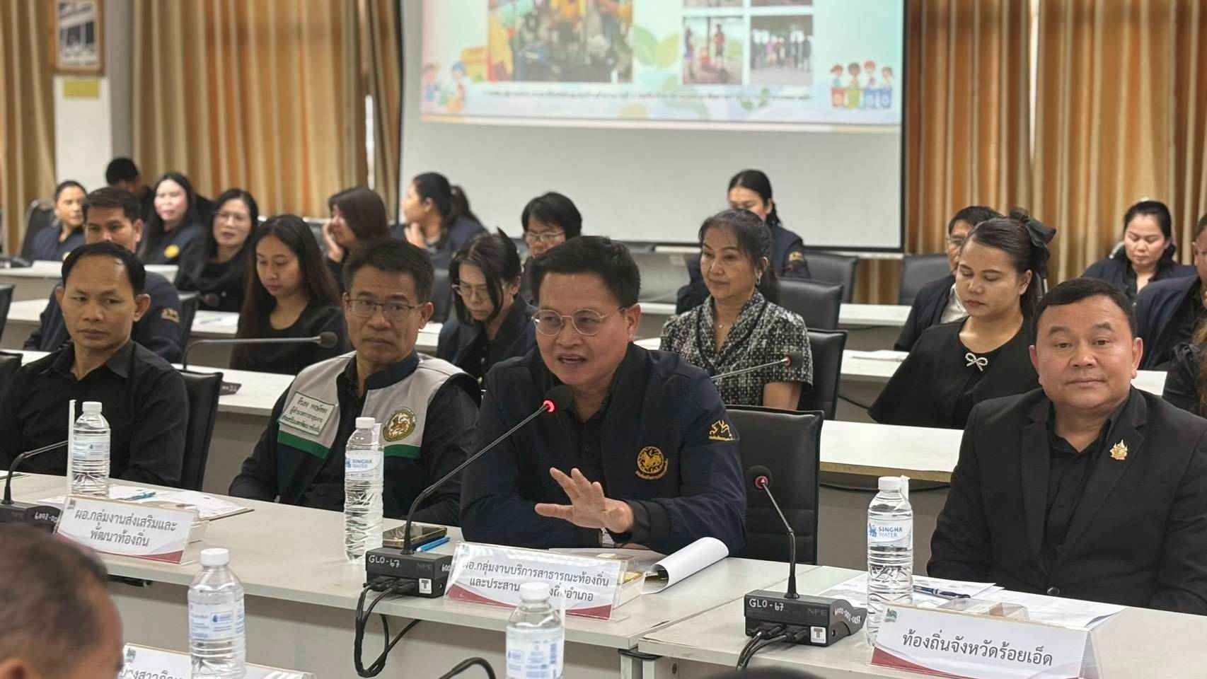จากนั้น กมธ.เดินทางไปยังห้องประชุมสระสิม ศูนย์บริการและพัฒนาคุณภาพชีวิตผู้สูงอายุ เทศบาลเมืองร้อยเอ็ด เพื่อรับฟังการบรรยายสรุปจากนายบรรจง โฆษิตจิรนันท์ นายกเทศมนตรีเมืองร้อยเอ็ด และคณะ เกี่ยวกับภาพรวมการบริหารงานของเทศบาลที่มุ่งเน้นการจัดบริการสาธารณะ การพัฒนาเมืองให้มีศักยภาพด้านการท่องเที่ยว การส่งเสริมการมีส่วนร่วมของประชาชนในการบริหารจัดการขยะมูลฝอยผ่านระบบโรงขยะ RDF โดยใช้เทคโนโลยีคัดแยกขยะแปลงเป็นเชื้อเพลิง และออกจำหน่ายให้กับภาคเอกชน ซึ่งไม่เพียงช่วยลดปริมาณขยะ แต่ยังสร้างรายได้หมุนเวียนกลับเข้าสู่ อปท. เพื่อนำไปพัฒนาท้องถิ่นอย่างต่อเนื่อง นอกจากนี้ เทศบาลเมืองร้อยเอ็ดยังให้ความสำคัญกับการอนุรักษ์และฟื้นฟูศิลปวัฒนธรรมพื้นบ้าน การพัฒนาพื้นที่สีเขียวเพื่อส่งเสริมสุขภาวะของประชาชน รวมถึงการยกระดับคุณภาพชีวิตของประชาชนในด้านต่าง ๆ อีกมากมาย สะท้อนให้เห็นถึงวิสัยทัศน์การพัฒนาท้องถิ่นอย่างรอบด้านและสมดุล