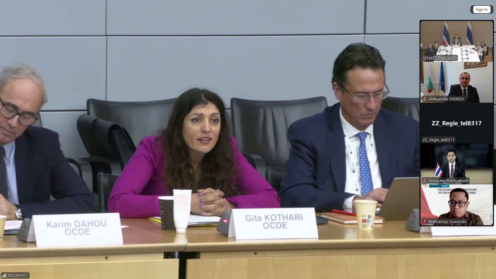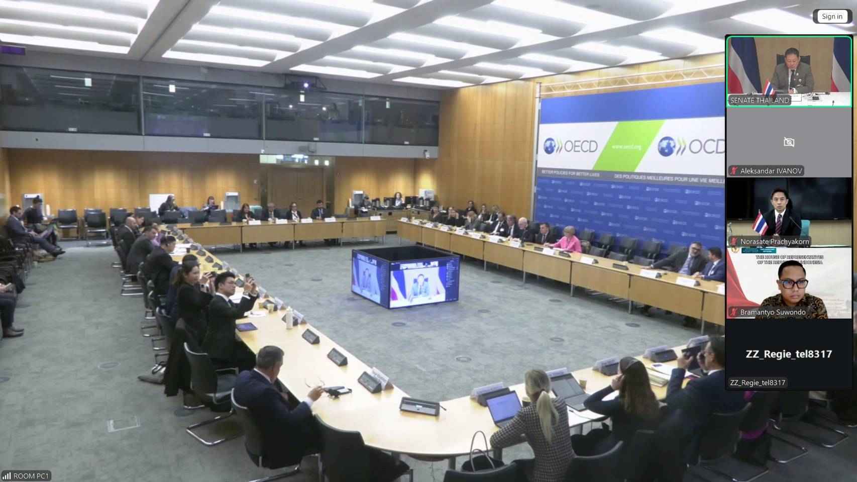 การประชุมครั้งนี้ถือเป็นการประชุมครั้งแรกที่สมาชิกวุฒิสภาไทยได้เข้าร่วมประชุมและร่วมอภิปรายแลกเปลี่ยนข้อคิดเห็นและแนวปฏิบัติที่ดีร่วมกับสมาชิกรัฐสภาประเทศที่อยู่ในกระบวนการเข้าเป็นสมาชิก อีก 7 ประเทศ ได้แก่ อาร์เจนตินา บราซิล บัลแกเรีย โครเอเชีย อินโดนีเซีย เปรู และโรมาเนีย โดยฝ่ายไทยย้ำถึงความมุ่งมั่นในการส่งเสริมประชาธิปไตยควบคู่กับการพัฒนาเศรษฐกิจ ผ่านความร่วมมือกับ OECD และชี้ให้เห็นว่าการยกระดับกฎหมายและหลักธรรมาภิบาลให้สอดคล้องกับมาตรฐานสากลจะมีส่วนสำคัญในการเสริมสร้างความโปร่งใสเพิ่มประสิทธิภาพในการบริหารจัดการภาครัฐ และยกระดับคุณภาพชีวิตของประชาชน เน้นความพร้อมของไทยในการบูรณาการมาตรฐานสากลเข้าสู่กรอบการทำงานด้านนิติบัญญัติ อันจะช่วยเสริมสร้างบทบาทของประเทศไทยในฐานะหุ้นส่วนที่มีศักยภาพ โปร่งใส และยึดมั่นในหลักประชาธิปไตยบนเวทีโลก ตลอดจนบทบาทของรัฐสภาในการเป็นกลไกดั่งสะพานเชื่อมโยงเสียงของประชาชนสู่กระบวนการนิติบัญญัติ เป้าหมายสูงสุดของรัฐสภาคือการแสดงให้เห็นว่าการปฏิรูปเหล่านี้จะเป็นรากฐานของการบริหารประเทศที่มีธรรมาภิบาลและความเป็นธรรม เพื่อให้การปฏิรูปก่อให้เกิดผลลัพธ์ที่เป็นรูปธรรมและนำไปสู่การพัฒนาประเทศอย่างยั่งยืนต่อไป