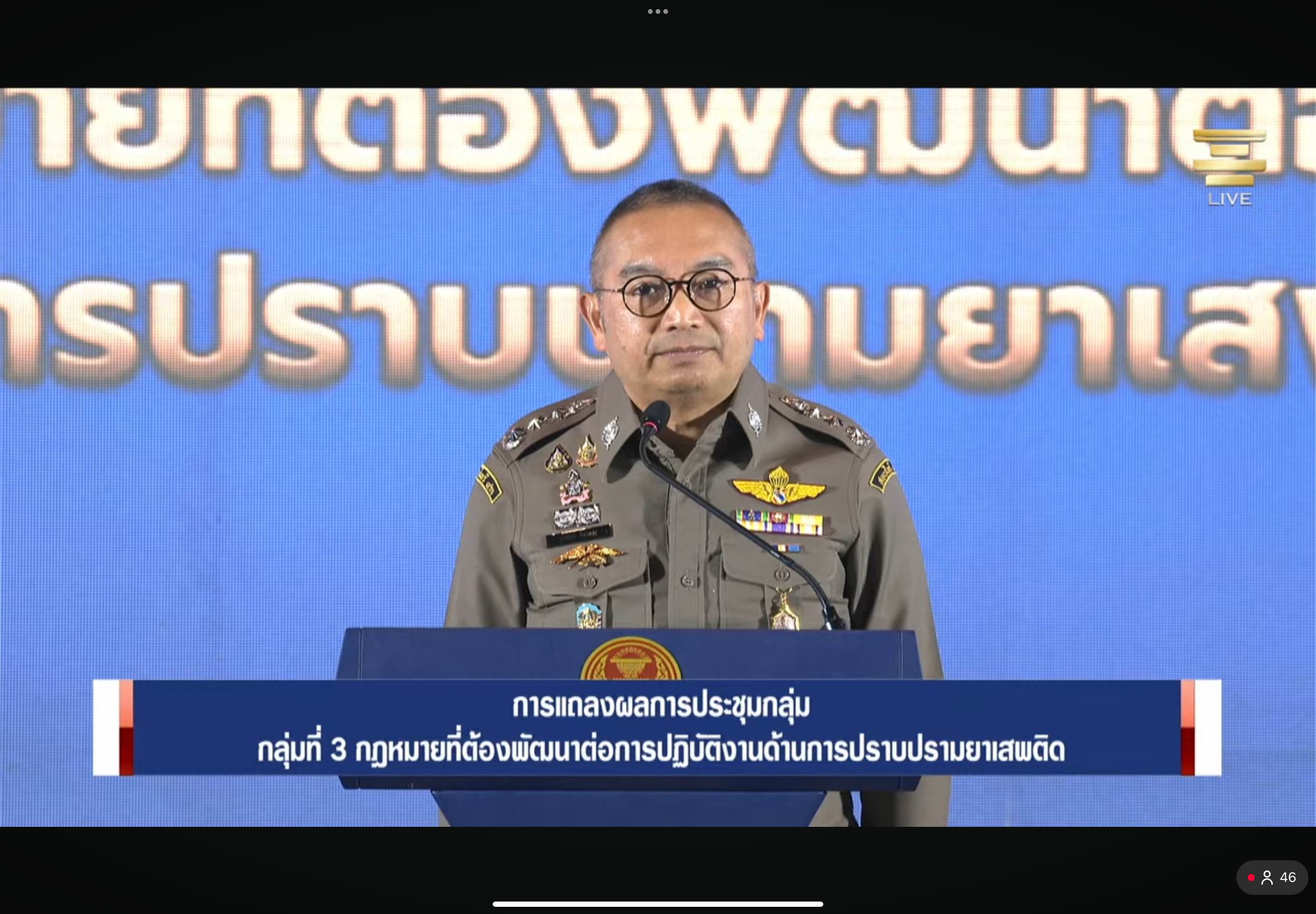 ขณะที่ พลตำรวจโท อาชยน ไกรทอง ผู้บัญชาการตำรวจนครบาล เสนอให้พัฒนากฎหมายเพื่อรองรับการปราบปรามยาเสพติดในรูปแบบใหม่ โดยเฉพาะการลักลอบผ่านระบบโลจิสติกส์และการค้าขายออนไลน์ พร้อมเสนอปรับปรุงพระราชบัญญัติ (พ.ร.บ.) ว่าด้วยการกระทำความผิดเกี่ยวกับคอมพิวเตอร์ และกฎหมายที่เกี่ยวข้องเพื่อเพิ่มประสิทธิภาพการสกัดกั้น โดยไม่กระทบสิทธิของประชาชน