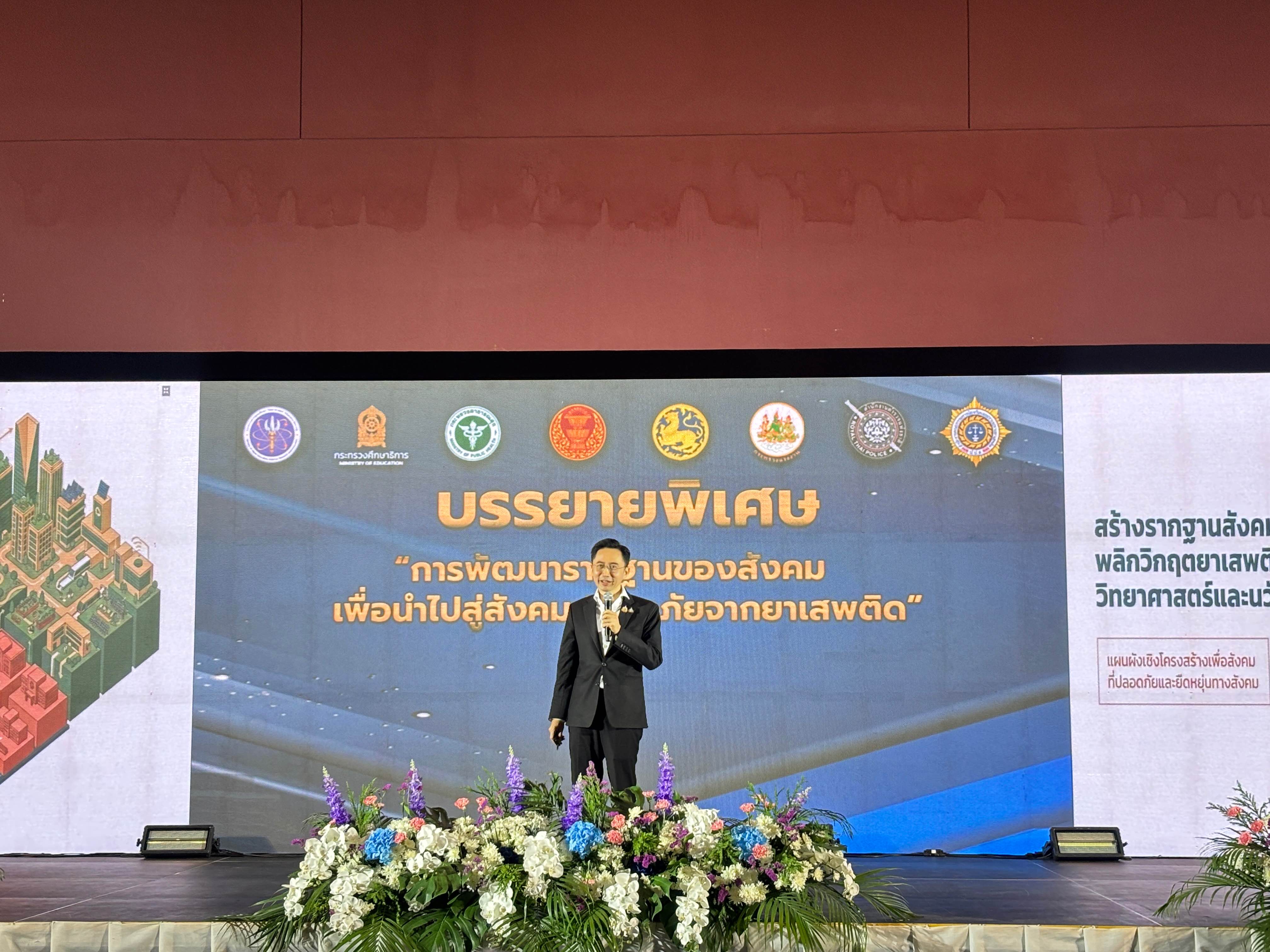 ศาสตราจารย์ ดร.ยศชนัน วงศ์สวัสดิ์ รองนายกรัฐมนตรี และรัฐมนตรีว่าการกระทรวงการอุดมศึกษา วิทยาศาสตร์ วิจัยและนวัตกรรม (อว.) บรรยายพิเศษ เรื่อง “ การพัฒนารากฐานของสังคม เพื่อนำไปสู่สังคมปลอดภัยจากยาเสพติด“ ภายใต้โครงการ สภาผู้แทนราษฎรพบประชาชน : กิจกรรมส่งเสริมบทบาทสภาผู้แทนราษฎรในการแก้ไขปัญหายาเสพติดแบบบูรณาการ ณ ห้องจัดเลี้ยง B2-2 ชั้น B2 อาคารรัฐสภา