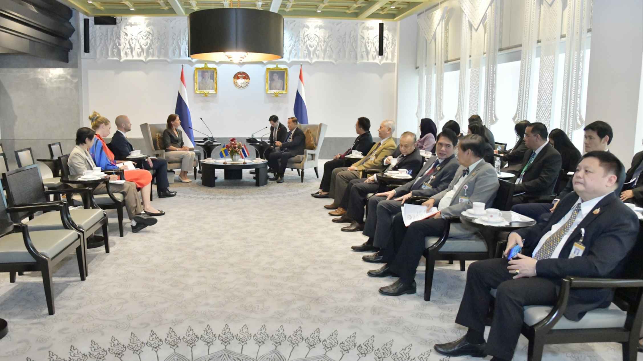 ประธานรัฐสภา กล่าวว่า รู้สึกเป็นเกียรติที่ได้ให้การรับรองเอกอัครราชทูตฯ ซึ่งได้มาทำงานในประเทศไทย โดยก่อนหน้านี้เคยประจำอยู่ที่ราชอาณาจักรโมร็อกโก นับเป็นบุคคลที่มีความรู้ความสามารถและมีประสบการณ์ ขณะที่ประเทศไทยและสวีเดนเองมีความสัมพันธ์ที่ดีในทุกระดับโดยระดับรัฐบาลมีการลงนามความร่วมมือในหลายด้าน ขณะที่ภาคเอกชนมีการเข้ามาลงทุนกว่า 70 บริษัท เช่น Volvo Electrolux IKEA ซึ่งเป็นสินค้าที่มีชื่อเสียงและมีคุณภาพ นอกจากนั้น ในส่วนของกองทัพไทยยังมีการจัดซื้อเครื่องบินขับไล่กริพเพน (Gripen) ที่ผลิตจากประเทศสวีเดนทดแทนลำเก่าอีกด้วย เนื่องจากเห็นว่ามีประสิทธิภาพ ส่วนการท่องเที่ยว ชาวสวีเดนเดินทางเข้ามาท่องเที่ยวในประเทศไทย กว่า 100,000 คน และเข้ามาอยู่อาศัยอยู่ในไทยจำนวนหลายพันคน โดยเฉพาะผู้สูงอายุ ที่ชื่นชอบกับสภาพอากาศของประเทศไทยที่อยู่ได้สบายตลอดทั้งปี ขณะที่คนไทยกว่า 50,000 คน ได้ไปสร้างครอบครัวและอยู่อาศัยในประเทศสวีเดน พร้อมกล่าวชื่นชมว่าชาวสวีเดนมีจิตใจดี รวมไปถึงยังกล่าวชื่นชมรูปแบบการปกครองของประเทศสวีเดนที่มีการปกครองในระบอบประชาธิปไตยอันมีพระมหากษัตริย์ทรงเป็นประมุข เหมือนประเทศไทย ทำให้ประเทศมีความสงบสุข