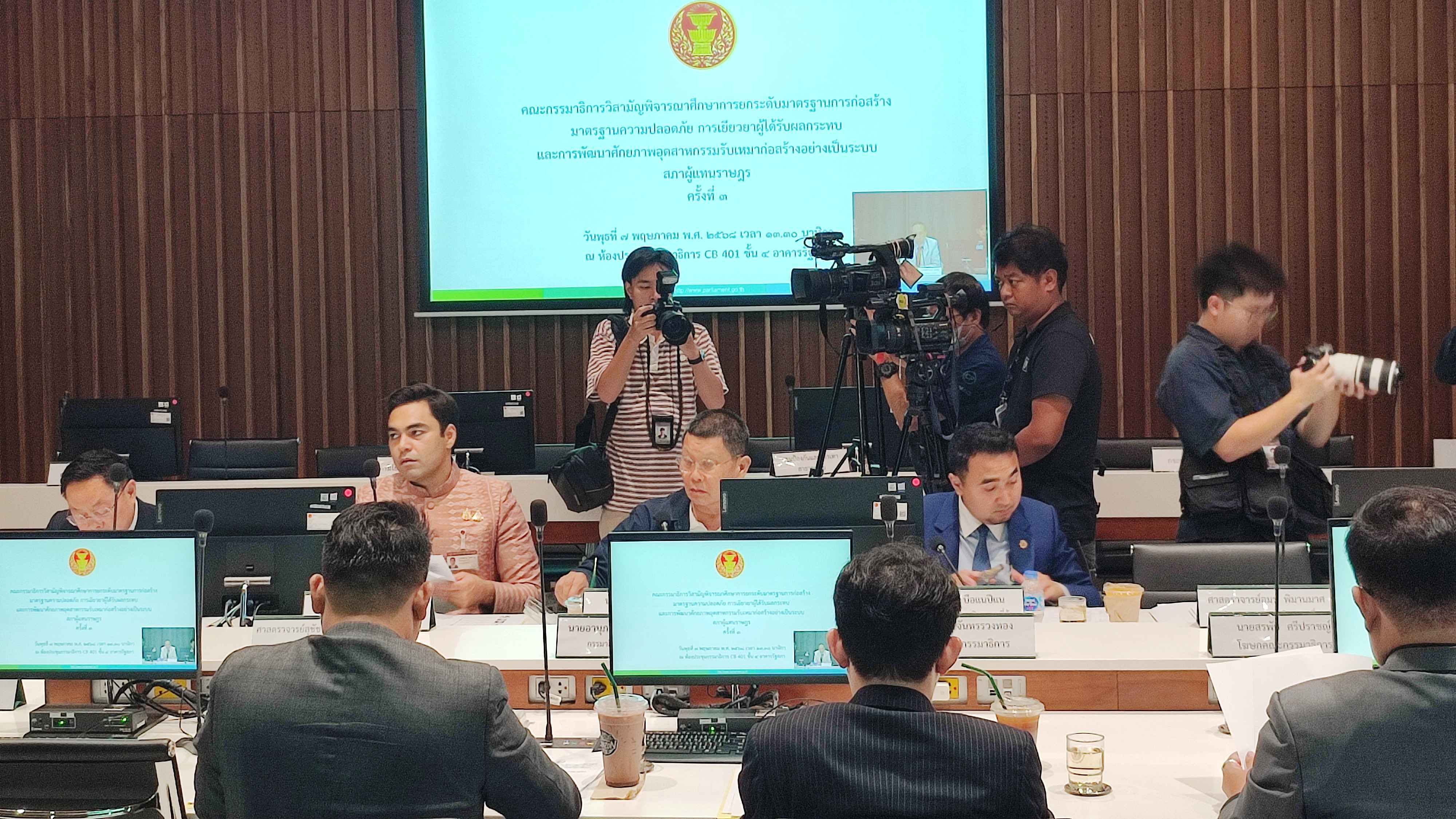 การประชุมคณะกรรมาธิการ (กมธ.) วิสามัญ พิจารณาศึกษาการยกระดับมาตรฐานการก่อสร้าง ความปลอดภัย และการเยียวยาผู้ได้รับผลกระทบ และพัฒนาศักยภาพอุตสาหกรรมรับเหมาก่อสร้างอย่างเป็นระบบ สภาผู้แทนราษฎร ที่มี นายปลอดประสพ สุรัสวดี ประธานคณะกมธ.เป็นประธานการประชุม ได้พิจารณาถอดบทเรียนเพื่อแก้ไขและยกระดับมาตรฐานการก่อสร้างและความปลอดภัยของอาคาร โดยมี นายศุภณัฐ มีนชัยนันท์ รองประธานคณะกมธ. นายนิกร จำนง กมธ.และที่ปรึกษาคณะกมธ. เข้าร่วมประชุม ทั้งนี้ได้เชิญหน่วยงานที่เกี่ยวข้องเข้าร่วมชี้แจงต่อที่ประชุม อาทิ สำนักงานการตรวจเงินแผ่นดิน (สตง.) นำโดย นายสุทธิพงษ์ บุญนิธิ รองผู้ว่าการ สตง. ในฐานะประธานกรรมการตรวจรับพัสดุในการก่อสร้างอาคารสำนักงานแห่งใหม่ของ สตง. ที่ถล่มจากเหตุแผ่นดินไหวเมื่อวันที่ 28 มี.ค. 68 รวมถึงคณะกรรมการคัดเลือกงานจ้าง กระทรวงอุตสาหกรรม และกรุงเทพมหานคร (กทม.)