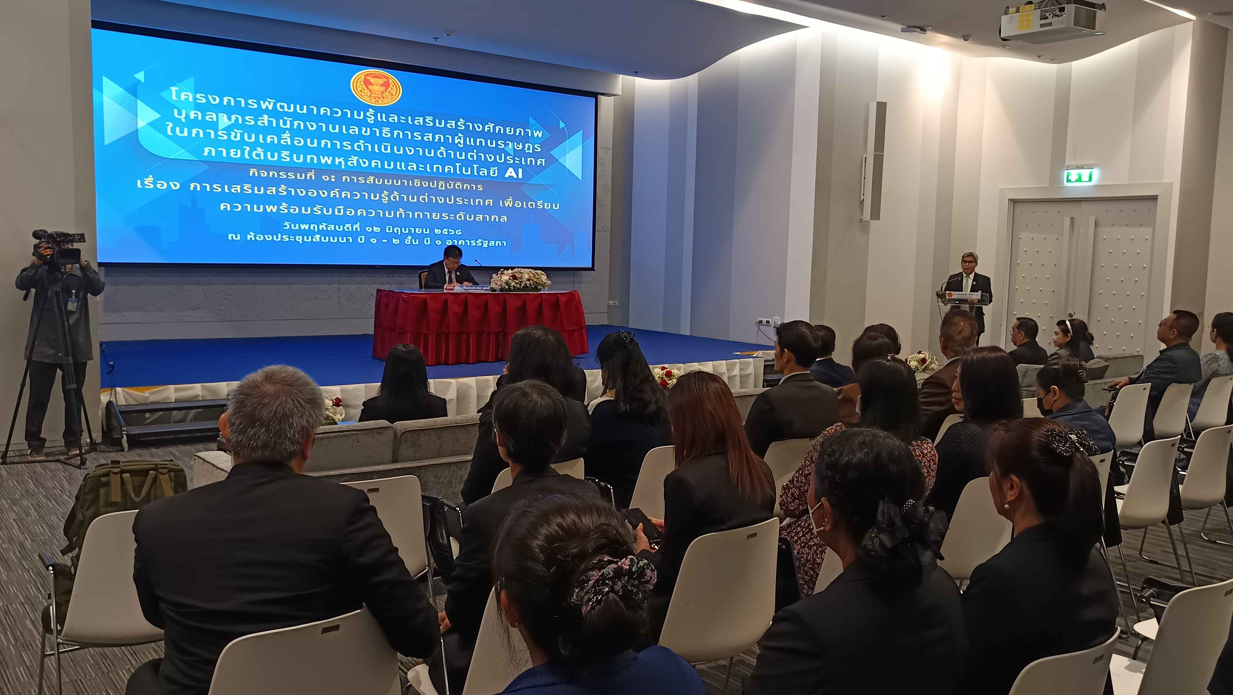 จากนั้นเป็นการเสวนาวิชาการ หัวข้อ “การใช้เทคโนโลยี AI ในงานต่างประเทศ” โดยมีวิทยากรผู้เชี่ยวชาญด้านต่าง ๆ เข้าร่วม ประกอบด้วย ดร. กอบกฤตย์ วิริยะยุทธกร ประธานกรรมการผู้จัดการบริษัทไอแอพพ์เทคโนโลยี และนายกกิตติมศักดิ์สมาคมผู้ประกอบการปัญญาประดิษฐ์ประเทศไทย นางสาวอรวรรณ บุนนาค นักวิชาการคอมพิวเตอร์เชี่ยวชาญ สำนักวิทยาการสารสนเทศ สำนักงานศาลปกครอง พันจ่าเอก กิตติ ตุ้ยแม้น นักวิชาการคอมพิวเตอร์ชำนาญการพิเศษ กลุ่มงานวิทยาการคอมพิวเตอร์ สำนักสารสนเทศ และนายปิยะพล พวงแก้ว พนักงานวิชาการสื่อใหม่ กลุ่มงานผลิตรายการวิทยุกระจายเสียง สถานีวิทยุกระจายเสียงและวิทยุโทรทัศน์รัฐสภา