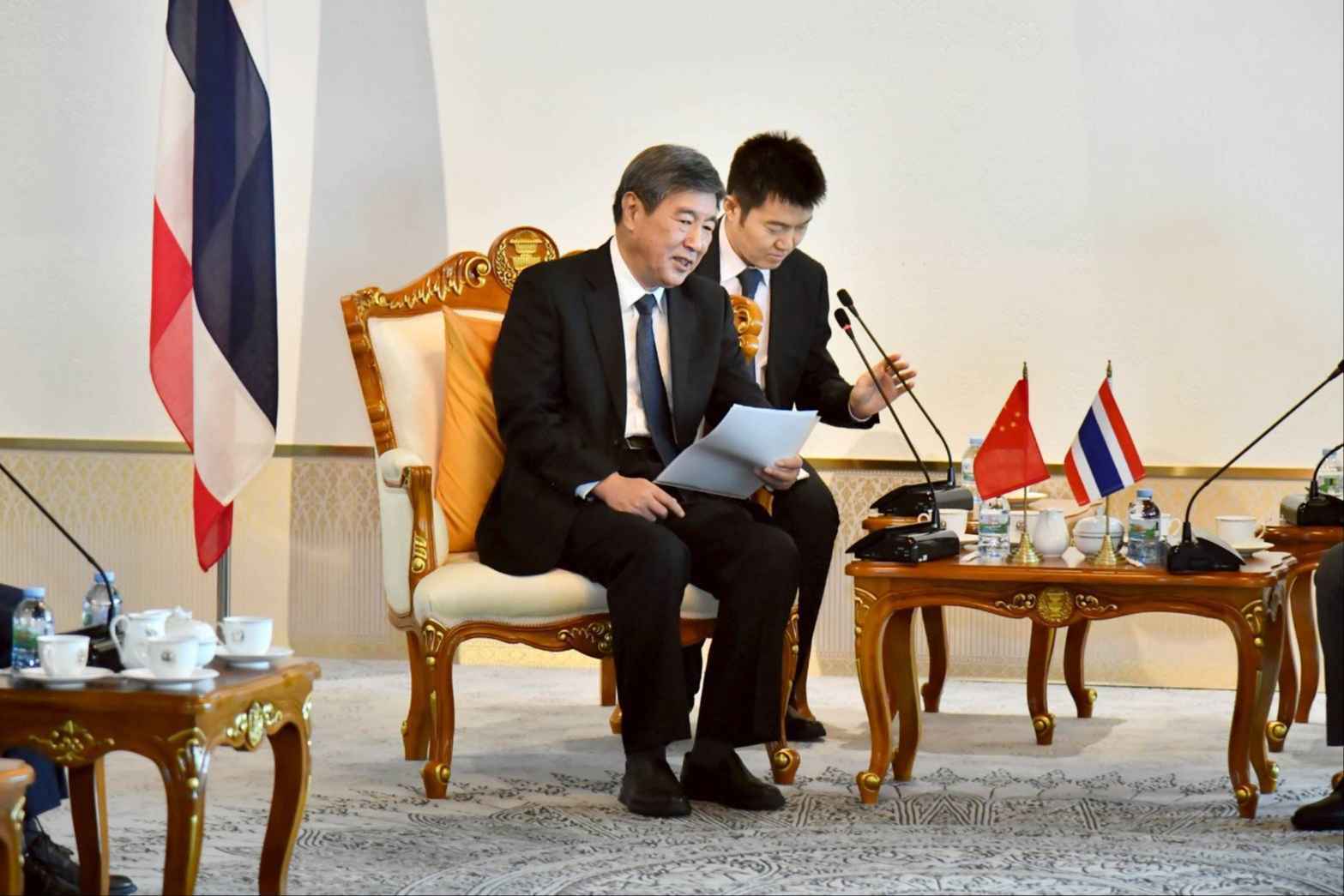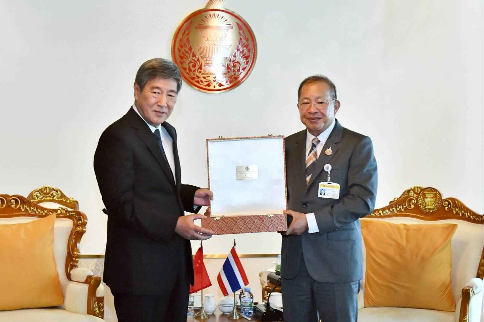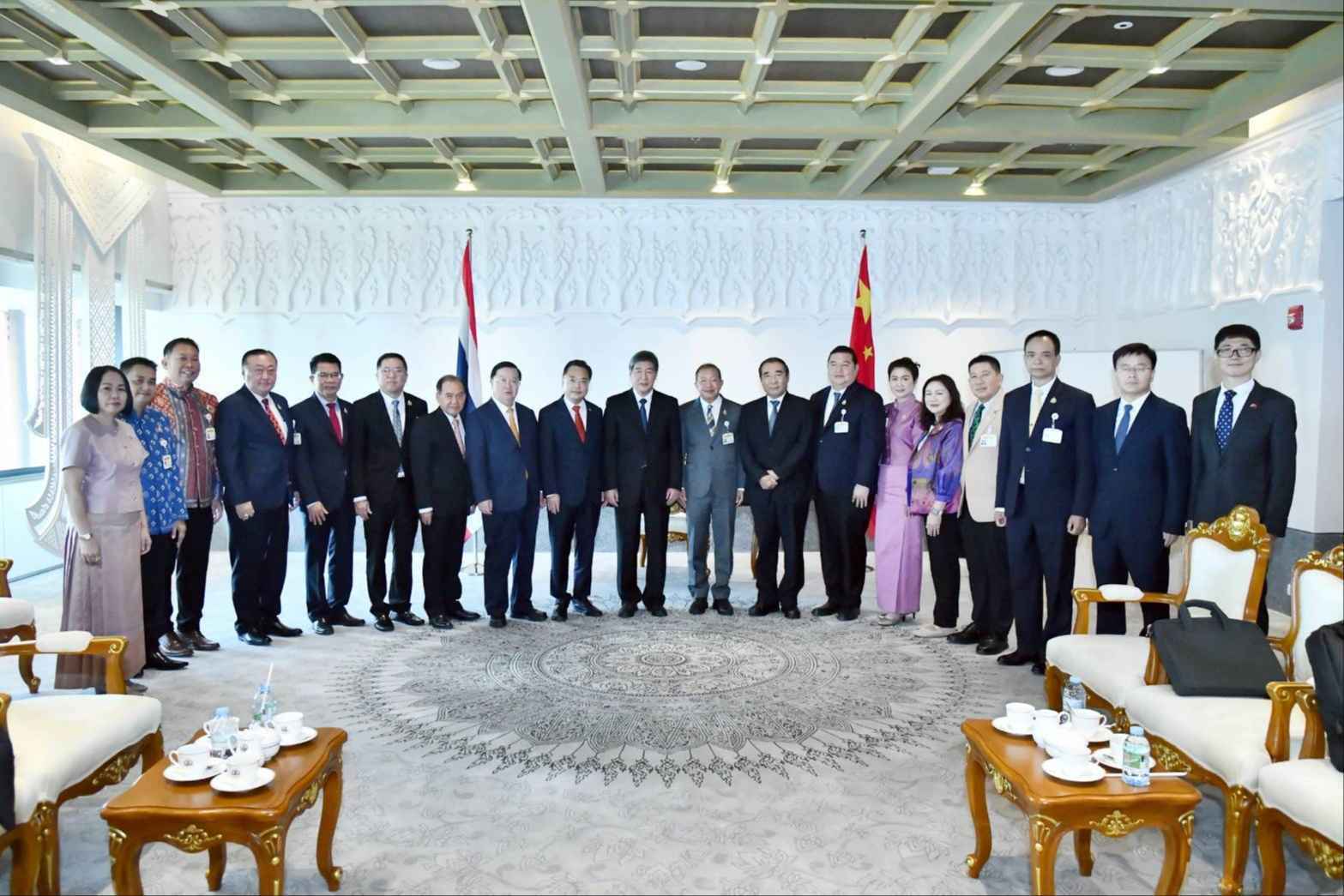 ประธานวุฒิสภา กล่าวชื่นชมความสัมพันธ์ไทยกับจีนที่มีความเชื่อมโยงกันมาอย่างยาวนาน ดังคำกล่าว ไทย-จีน ใช่อื่นไกล พี่น้องกัน รวมถึงความเป็นหุ้นส่วนทางยุทธศาสตร์ในหลายมิติทั้งทางด้านการค้า และการลงทุน โดยในปีนี้ครบรอบ 50 ปีแห่งการสถาปนาความสัมพันธ์ทางการทูตถือเป็น ปีทองแห่งมิตรภาพจีน-ไทย สำหรับความสัมพันธ์ทางด้านนิติบัญญัติ วุฒิสภาให้ความสำคัญกับมิตรภาพระหว่างสองประเทศโดยเข้าร่วมกิจกรรมที่ทั้งสองฝ่ายจัดขึ้นในโอกาสสำคัญต่างๆ อย่างสม่ำเสมอ นอกจากนี้ ยังชื่นชมที่ทั้งสองฝ่ายมีการแลกเปลี่ยนการเยือนระหว่างกันอย่างต่อเนื่อง โดยล่าสุดนายวันมูหะมัดนอร์ มะทา ประธานรัฐสภาและประธานสภาผู้แทนราษฎร เดินทางเยือนสาธารณรัฐประชาชนจีนอย่างเป็นทางการ รวมถึงยังมีคณะกรรมาธิการต่าง ๆ ทั้งวุฒิสภาและสภาผู้แทนราษฎร ตลอดจนกลุ่มมิตรภาพสมาชิกรัฐสภาไทย - จีน ได้เดินทางเยือนจีนเพื่อกระชับความสัมพันธ์และแลกเปลี่ยนเรียนรู้ความสำเร็จและความก้าวหน้าของจีนทั้งในด้านเศรษฐกิจ เทคโนโลยีและนวัตกรรม ซึ่งเป็นแบบอย่างที่ดีแก่ไทยในการพัฒนาประเทศ นอกจากนี้ ชื่นชมนโยบาย หนึ่งแถบหนึ่งเส้นทาง และการพัฒนาเศรษฐกิจดิจิทัล การพัฒนาสีเขียว และความก้าวหน้าด้านวิทยาศาสตร์และเทคโนโลยีของจีน เชื่อมั่นว่าการเดินทางเยือนไทยในครั้งนี้มีส่วนสำคัญในการกระชับความสัมพันธ์ด้านนิติบัญญัติของไทยและจีนให้แน่นแฟ้นและใกล้ชิดยิ่งขึ้นส่งผลดีต่อความร่วมมือระหว่างวุฒิสภาไทยและสภาประชาชนแห่งชาติจีน
