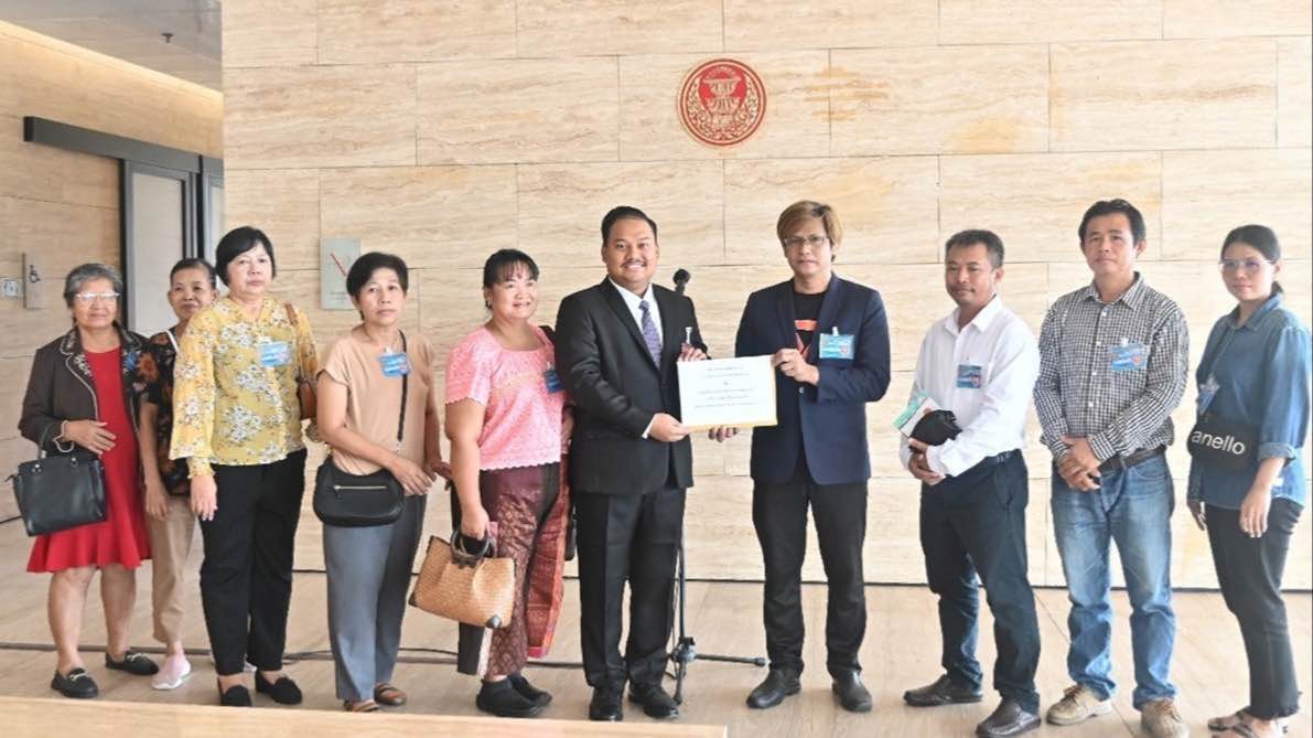 นายณัฐชา บุญไชยอินสวัสดิ์ ประธานคณะกรรมาธิการการสวัสดิการสังคม สภาผู้แทนราษฎร รับยื่นหนังสือจากนาย นิพิฐพนธ์ ไตรกิจมงคล และคณะ เรื่อง ขอความเป็นธรรมในการขอคืนทางสาธารณะประโยชน์ ภายในโครงการบ้านเอื้ออาทรลาดกระบัง