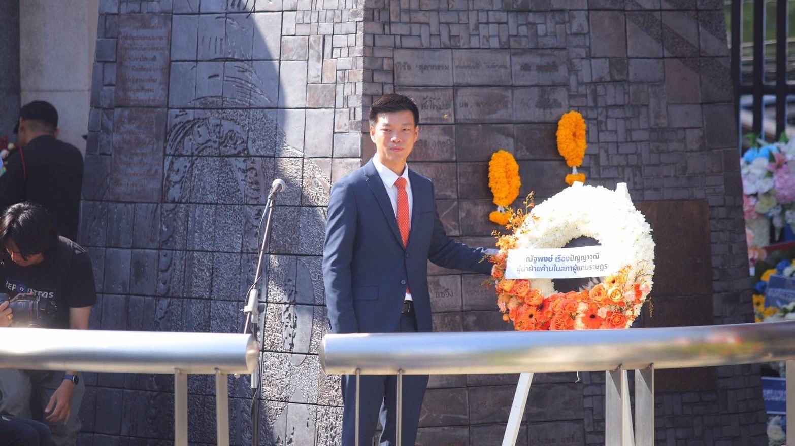 นายณัฐพงษ์ เรืองปัญญาวุฒิ หัวหน้าพรรคประชาชน ในฐานะผู้นำฝ่ายค้านในสภาผู้แทนราษฎร ร่วมกิจกรรมวางพวงมาลารำลึกและกล่าวคำไว้อาลัยวีรชน เนื่องในโอกาสครบรอบ 51 ปี เหตุการณ์ 14 ตุลาคม 2516 โดยมีนางสาวศศินันท์ ธรรมนิฐินันท์ สส.กรุงเทพ เป็นผู้แทนของพรรคประชาชน ในการวางพวงมาลาและกล่าวคำไว้อาลัย ที่อนุสรณ์สถาน 14 ตุลาฯ สี่แยกคอกวัว