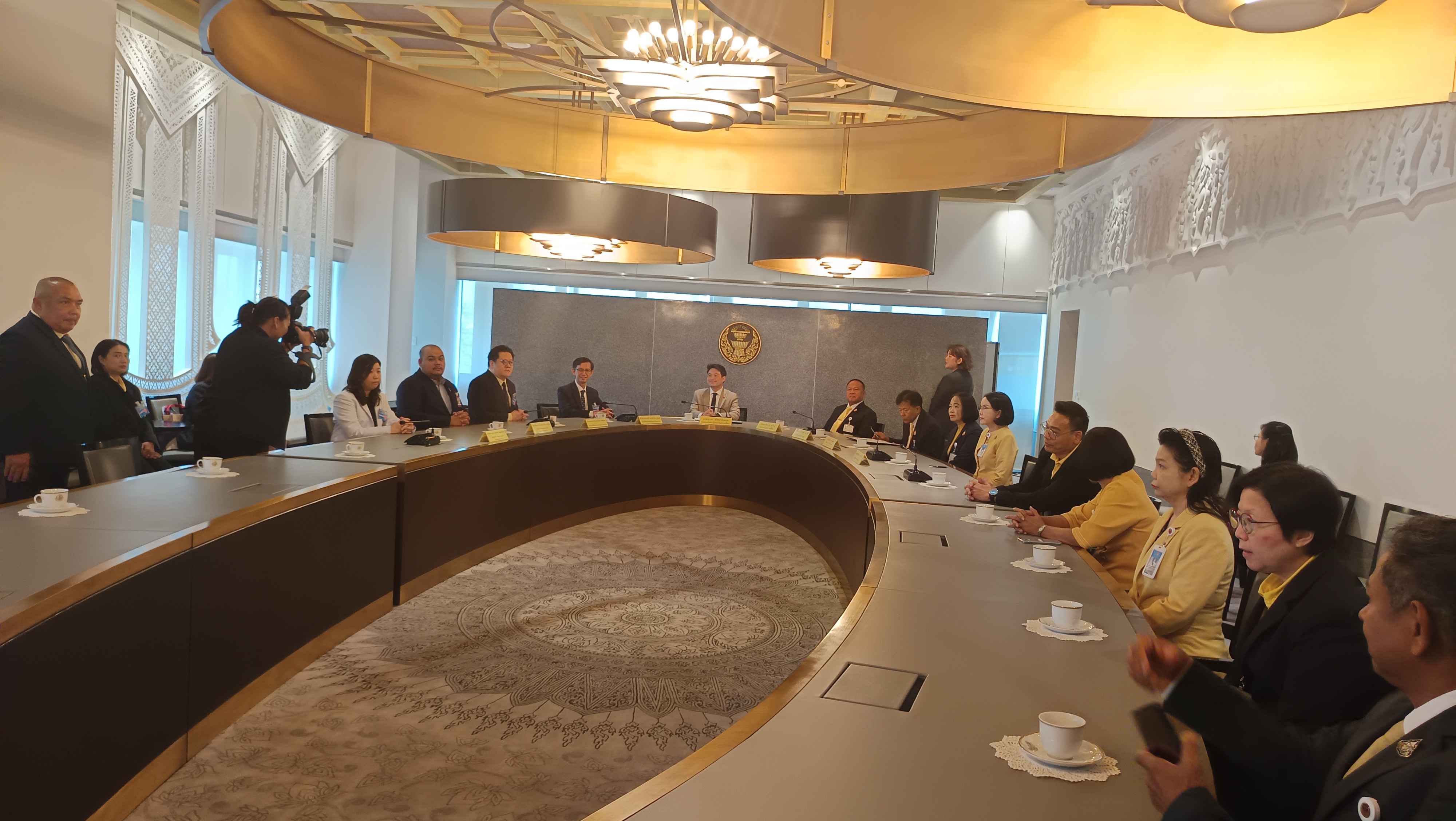 นายภราดร ปริศนานันทกุล รองประธานสภาผู้แทนราษฎร คนที่สอง กล่าวมอบนโยบายทางการแพทย์ของรัฐสภา ว่า การทำบันทึกความร่วมมือในครั้งนี้ เน้นความสำคัญ 2 เรื่อง คือ 1. การแพทย์ฉุกเฉินซึ่งสภาให้ความสำคัญเรื่องนี้เป็นอันดับหนึ่ง โดยพยายามประสานงานกับโรงพยาบาลใกล้เคียงให้พร้อมรับมือกับการประชุมสภาผู้แทนราษฎร ทั้งบุคลากรทางการแพทย์ผู้เชี่ยวชาญ รถพยาบาล และเจ้าหน้าที่ รวมทั้งแสวงหาความร่วมมือในการพัฒนาทีมบุคลากร ซึ่งในปีงบประมาณ 2568 ได้มุ่งเน้นการพัฒนา “ทีมสุริยัน” ซึ่งประกอบด้วยทีมบุคลากรทางการแพทย์ของรัฐสภา จำนวน 25 คน ที่จะช่วยปฐมพยาบาลเบื้องต้นได้ และในระยะยาวจะมีการฝึกอบรมทั้งทีมสุริยันและตำรวจสภา 250 นาย ให้มีทักษะสามารถช่วยเหลือผู้ป่วยในสถานการณ์ฉุกเฉินได้ นอกจากนี้ สภาผู้แทนราษฎร เตรียมเพิ่มเวรยามในพื้นที่ภายในอาคารรัฐสภาที่มีความซับซ้อน ให้สามารถเข้าถึงผู้ป่วยฉุกเฉินได้อย่างมีประสิทธิภาพ และ 2. การแพทย์ทั่วไป จะมีการเปิดคลินิคภายในอาคารรัฐสภา เพื่อให้บุคลากรในวงงานรัฐสภาสามารถเข้าถึงบริการทางการแพทย์ได้อย่างสะดวก รวดเร็ว ไม่ต้องเดินทางออกไปแพทย์ ในช่วงเวลาที่มีภารกิจงาน ในเบื้องต้นจะมีทีมแพทย์ให้บริการ สัปดาห์ละ 2-3 วัน และในปีงบประมาณหน้าจะมีการเพิ่มวันให้บริการเป็น 5 วัน