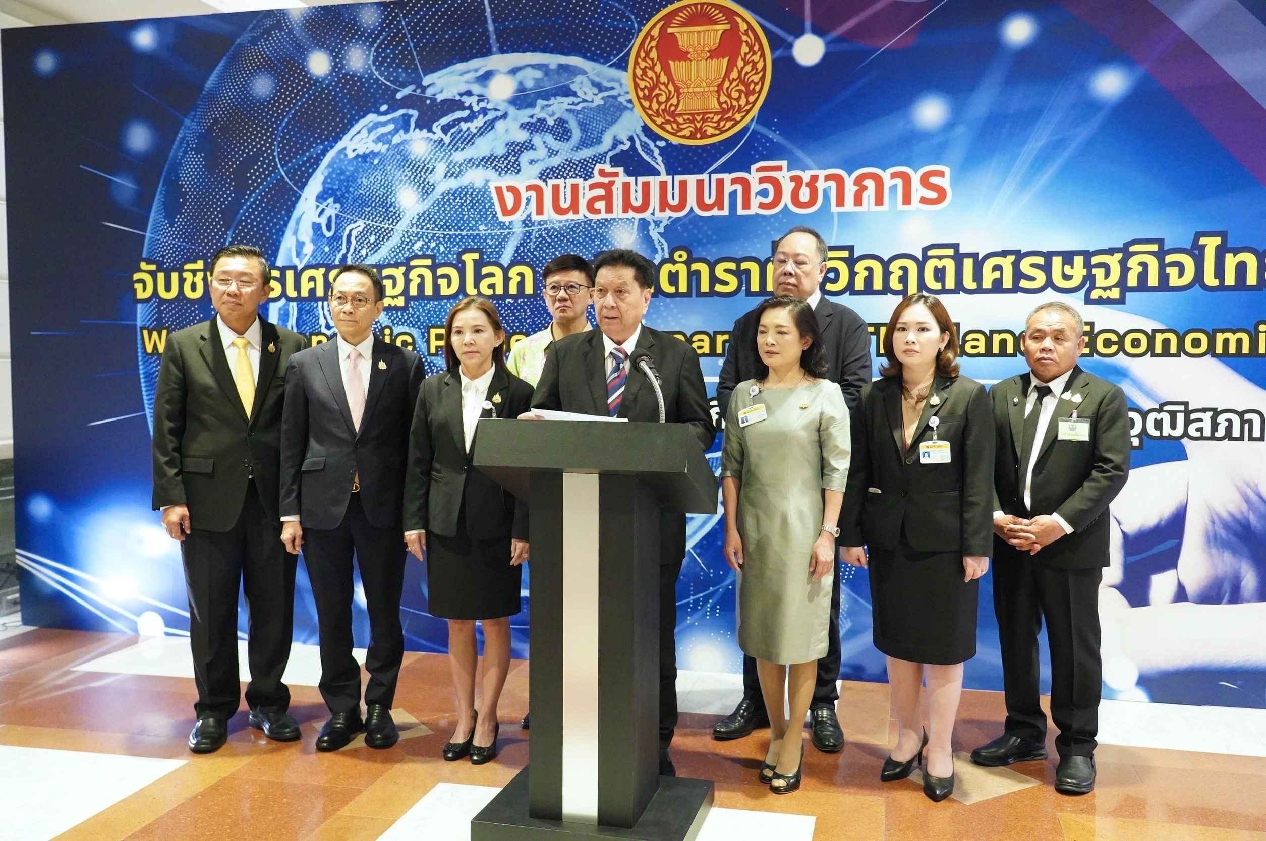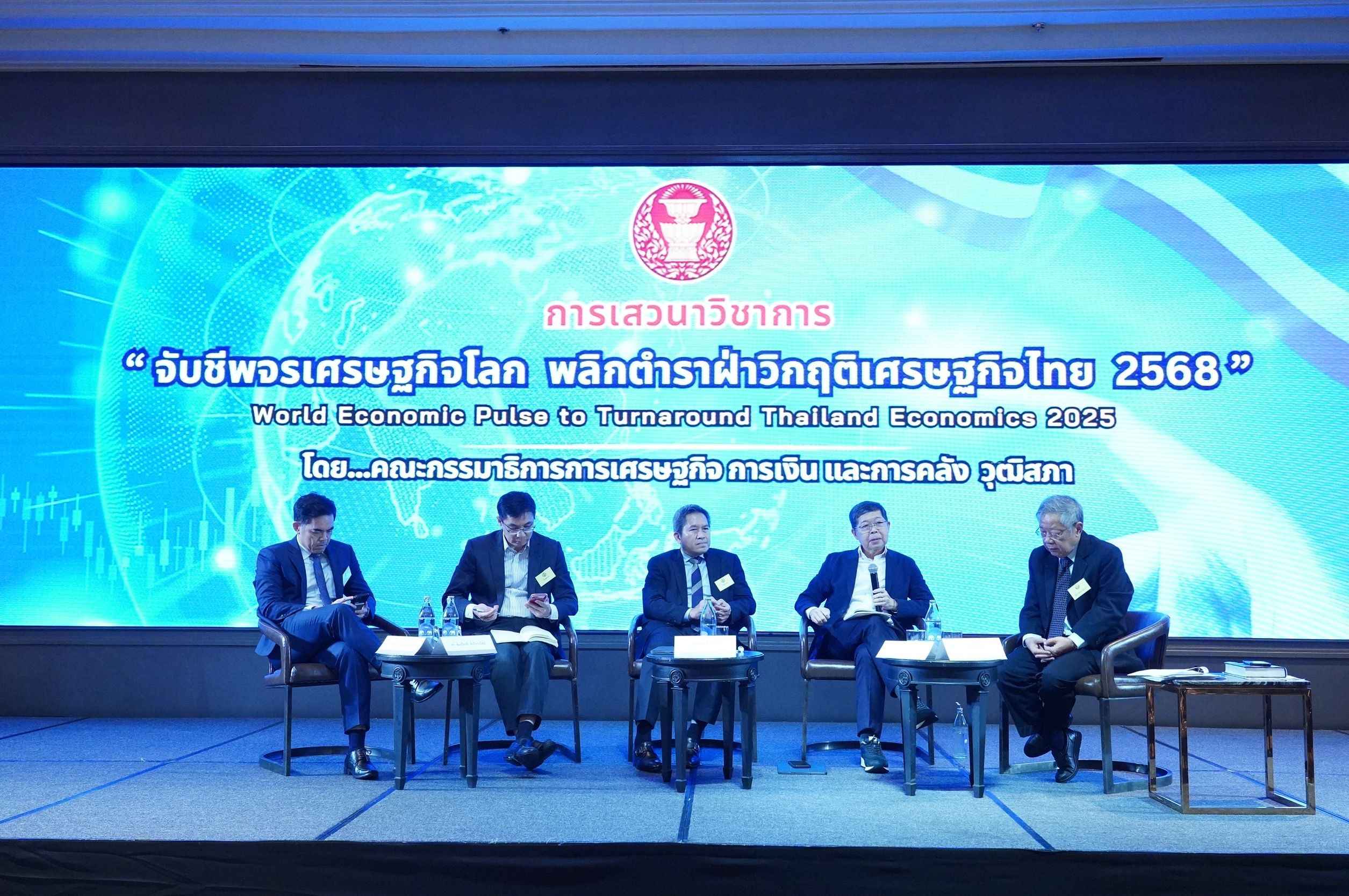 คณะกรรมาธิการ (กมธ.) การเศรษฐกิจ การเงิน และการคลัง วุฒิสภา จัดสัมมนาเรื่อง “จับชีพจรเศรษฐกิจโลก พลิกตำราฝ่าวิกฤตเศรษฐกิจไทย 2568” World Economic Pulse to Turnaround Thailand Economic Crise 2025 โดยมีสมาชิกวุฒิสภา (สว.) ผู้แทนจากหน่วยงานภาครัฐ และภาคเอกชน เข้าร่วม ณ โรงแรมแบงค็อก แมริออท ควีนส์ปาร์ค กรุงเทพฯ