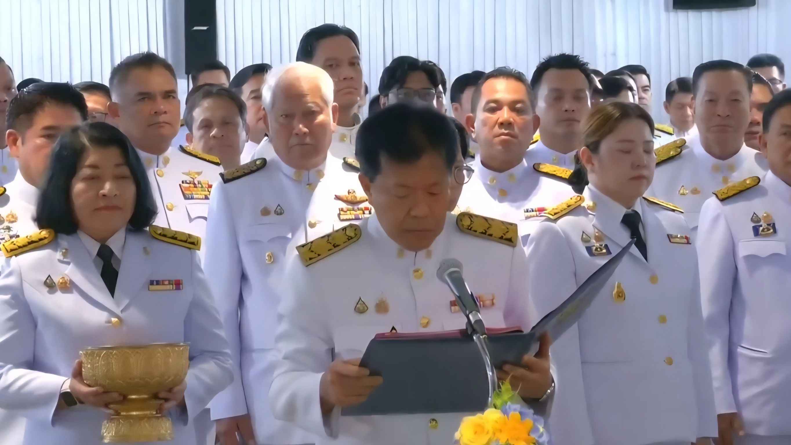 ข้าพระพุทธเจ้า ขอถวายสัตย์ว่า จะมุ่งมั่นปฏิบัติหน้าที่ของตนอย่างเต็มกำลังความสามารถด้วยความซื่อสัตย์สุจริตและมีคุณธรรม ให้สมกับที่ทรงไว้วางพระราชหฤทัยเพื่อความผาสุกของประชาชนชาวไทย และความวัฒนาสถาพรของประเทศชาติ ตามพระราชปณิธานและเจตนารมณ์ของรัฐธรรมนูญแห่งราชอาณาจักรไทยทุกประการ ด้วยเกล้าด้วยกระหม่อมขอเดชะ