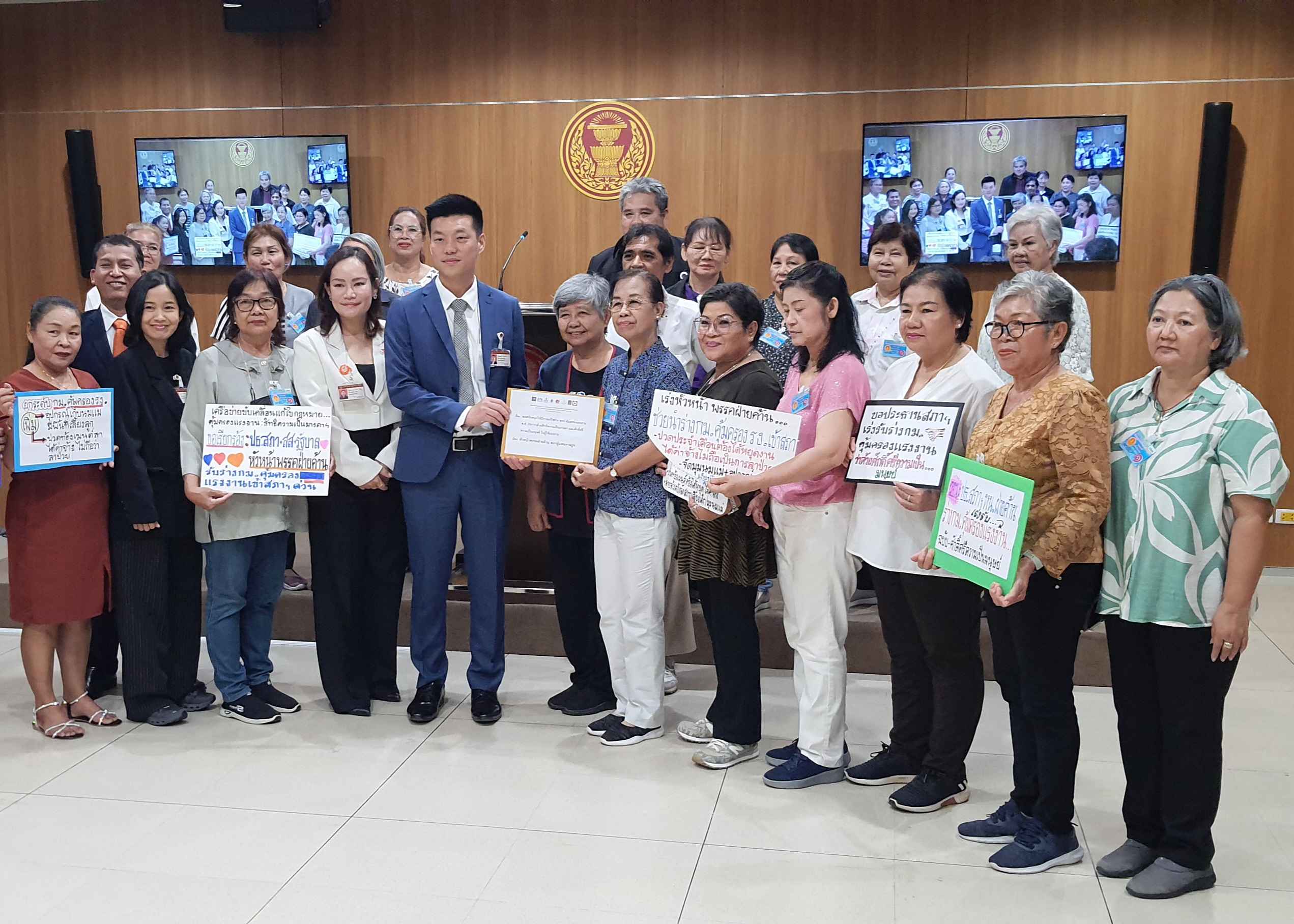 นายคัมภีร์ ดิษฐากรณ์ โฆษกประธานสภาผู้แทนราษฎร เป็นผู้แทน นายวันมูหะมัดนอร์ มะทา ประธานสภาผู้แทนราษฎร รับการยื่นหนังสือจาก นายบัณฑิต แป้นวิเศษ ผู้แทนเครือข่ายขับเคลื่อนแก้ไขร่างพระราชบัญญัติ (พ.ร.บ.) คุ้มครองแรงงานว่าด้วยสิทธิความเป็นมารดาและศักดิ์ศรีความเป็นมนุษย์ และคณะ ขอให้ประธานสภาผู้แทนราษฎร สนับสนุนร่างแก้ไข พ.ร.บ.คุ้มครองแรงงาน พ.ศ.2541 ว่าด้วยสิทธิความเป็นมารดา และศักดิ์ศรีความเป็นมนุษย์ในผู้ใช้แรงงาน เนื่องจากที่ผ่านมารัฐสภา โดยสภาผู้แทนราษฎร และวุฒิสภา ทำการแก้ไขกฎหมายคุ้มครองแรงงาน พ.ศ. .... เพิ่มสิทธิประโยชน์การลาคลอดของแรงงานหญิงเป็น 120 วัน และการคุ้มครองลูกจ้างเหมาบริการภาครัฐให้ได้สิทธิการคุ้มครอง ในกฎหมายคุ้มครองแรงแรงงานที่กำลังอยู่ในชั้นการพิจารณาร่วมกันของ 2 สภา ซึ่งหากออกมาเป็นกฎหมายได้จะมีผลต่อสุขภาพของทารกและมารดา อีกทั้งจะช่วยลดค่าใช้จ่ายด้านสาธารณสุขของประเทศได้เป็นเงินจำนวนมาก และทำให้ประเทศไทยสามารถจัดลำดับขยับเข้ามาใกล้กฎหมายคุ้มครองแรงงานว่าด้วยการลาคลอดเป็นลำดับ 2 ต่อจากประเทศเวียดนามที่ให้แรงงานหญิงลาคลอดได้ 180 วัน (6 เดือน) เครือข่ายยื่นข้อเสนอ 2 ข้อเสนอ ได้แก่ ขอให้ประธานสภาผู้แทนราษฎร และสมาชิกสภาผู้แทนราษฎร (สส.) เร่งรับและพิจารณารับร่างแก้ไขกฎหมายคุ้มครองแรงงาน พ.ศ. .... (ฉบับศักดิ์ศรีความเป็นมนุษย์ สิทธิความเป็นมารดา และการมีเวลาพักผ่อนของแรงงาน) และหากรับหลักการของร่างกฎหมายแล้วมีการตั้งคณะกรรมาธิการ ขอให้คำนึงถึงการนำผู้แทนภาคประชาสังคมแรงงานที่ทำงานเกี่ยวข้องกับเนื้อหาในร่างกฎหมายเข้าทำหน้าที่เป็นกรรมาธิการตามสัดส่วนที่เหมาะสม เพื่อประโยชน์สูงสุดในการได้ร่างกฎหมายที่มีความครอบคลุมทั่วถึงแรงงานให้ได้รับประโยชน์