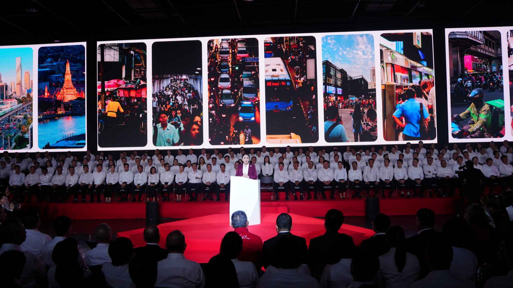 นางสาวแพทองธาร กล่าวเปิดเวทีว่า วันนี้เป็นครั้งแรกหลังความเปลี่ยนแปลงทางการเมืองที่ “หัวใจของคนเพื่อไทยได้มารวมพลังกันอีกครั้ง โดยกล่าวถึงสถานการณ์ที่ผ่านมาว่า รัฐบาลพรรคเพื่อไทยถูกกระทำให้กลายเป็นฝ่ายค้าน นายทักษิณ ชินวัตร ผู้นำทางจิตวิญญาณของพรรคต้องอยู่ในเรือนจำ และผลการเลือกตั้งซ่อมที่มีทั้งชัยชนะที่เชียงราย และความพ่ายแพ้ที่ศรีสะเกษ หลายคนพูดว่าพรรคเพื่อไทยถึงทางตันแล้ว ใกล้จะตาย สูญพันธุ์ ตนไม่เคยเชื่อแบบนั้น เพราะถ้าจะสูญพันธุ์ พรรคนี้สูญพันธุ์ไปนานแล้ว พรรคเพื่อไทยเป็นพรรคการเมืองที่มีผลงานเป็นรูปธรรมที่สุด และเผชิญชะตากรรมทางการเมืองอย่างสาหัสที่สุดในประวัติศาสตร์ไทย