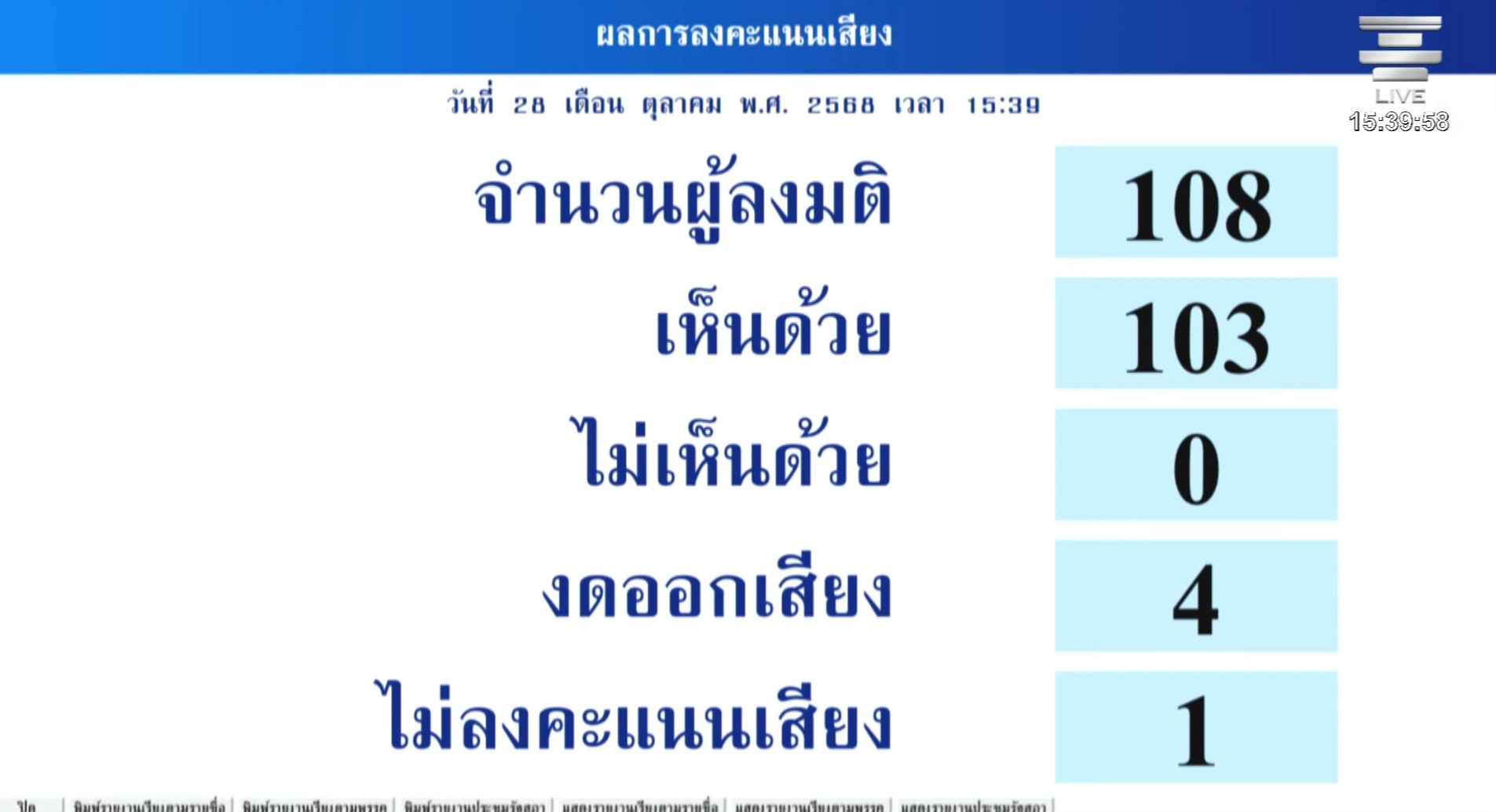 การประชุมวุฒิสภา ในวันนี้ (28 ต.ค.68) ที่มี พลเอก เกรียงไกร ศรีรักษ์ รองประธานวุฒิสภา คนที่หนึ่ง ทำหน้าที่เป็นประธานการประชุม ในวาระเรื่องด่วน ที่ประชุมวุฒิสภาได้มีการพิจารณาร่างพระราชบัญญัติ (พ.ร.บ.) การจัดสรรที่ดิน (ฉบับที่ ..) พ.ศ. .... ซึ่งคณะกรรมาธิการ (กมธ.) ร่วมกัน พิจารณาเสร็จแล้ว ในวาระที่ 3 โดยภายหลังการพิจารณาแล้วเสร็จ ที่ประชุมวุฒิสภา ได้ลงมติเห็นด้วย 103 เสียง ไม่เห็นด้วยไม่มี งดออกเสียง 4 เสียง และไม่ลงคะแนนเสียง 1 เสียง เห็นชอบร่าง พ.ร.บ.การจัดสรรที่ดิน (ฉบับที่ ..) พ.ศ. .... พร้อมเห็นชอบด้วยกับข้อสังเกตของ กมธ. เพื่อส่งต่อไปยังคณะรัฐมนตรี (ครม.) หรือหน่วยงานที่เกี่ยวข้อง เพื่อพิจารณาดำเนินการต่อไป