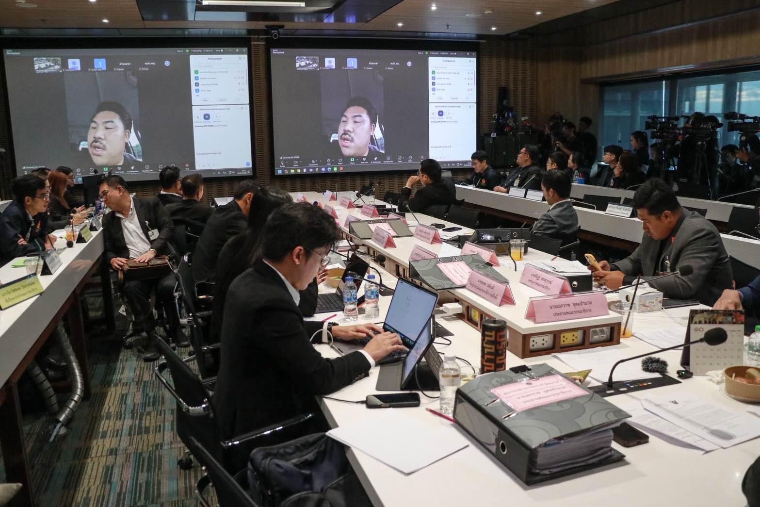 ที่ประชุมคณะกรรมาธิการการทหาร โดยมี นายเอกราช อุดมอำนวย สส.กทม. พรรคประชาชน เป็นประธาน ได้เชิญ นายกัณฐัศว์ พงศ์ไพบูลย์เวชย์ หรือ กัน จอมพลัง พร้อมด้วย พล.ต.วินธัย สุวารี โฆษกกองทัพบก เข้าชี้แจงกรณีมูลนิธิกันจอมพลังบริจาคเสื้อเกราะและอุปกรณ์ป้องกันให้ทหารตามแนวชายแดนไทย–กัมพูชา ซึ่งทั้ง 2 คน ได้เข้าประชุม Video Conference ผ่านระบบ Zoom