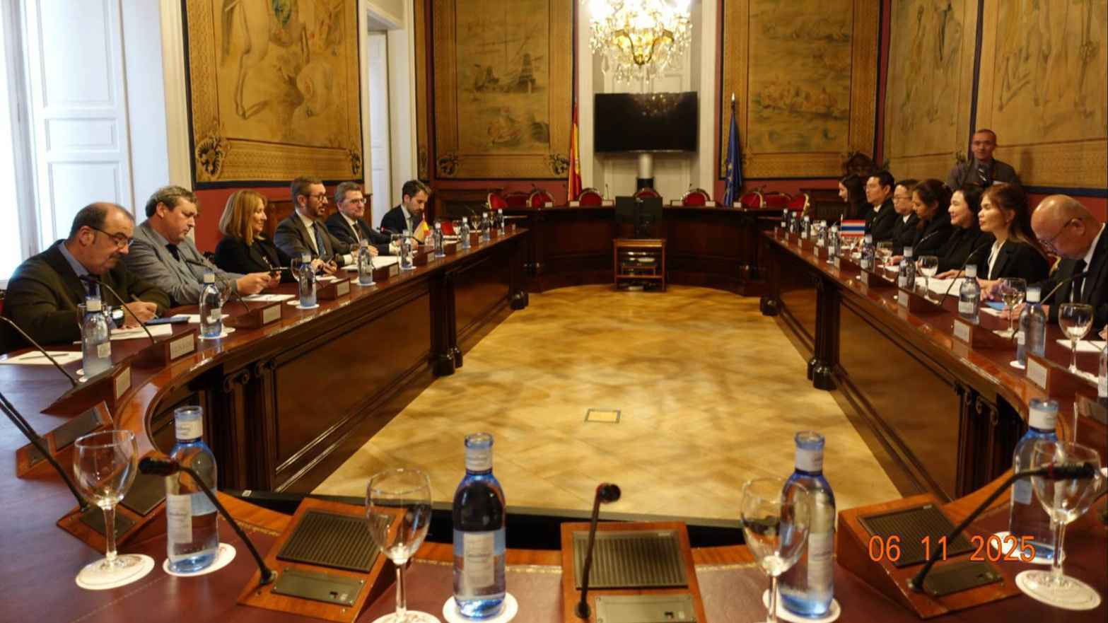คณะผู้แทนกลุ่มมิตรภาพฯ ไทย-สเปน ได้หารือกับรองประธานวุฒิสภาราชอาณาจักรสเปน คนที่หนึ่ง ในประเด็นการผลักดันให้รัฐสภาสเปนจัดตั้งกลุ่มมิตรภาพฯ สเปน-ไทย เป็นคู่กลุ่มกับกลุ่มมิตรภาพฯ ไทย-สเปน (counterpart) เพื่อส่งเสริมความสัมพันธ์ระหว่างรัฐสภาทั้งสองประเทศ โดยรองประธานวุฒิสภาราชอาณาจักรสเปน คนที่หนึ่ง ได้รับเรื่องดังกล่าวไปหารือเพื่อพิจารณาความเป็นไปได้จัดตั้งกลุ่มมิตรภาพฯ สเปน-ไทย ต่อไป นอกจากนี้ ฝ่ายไทยได้ขอให้ฝ่ายสเปนพิจารณาการยกเว้นตรวจลงตรา (visa) สำหรับผู้ถือหนังสือเดินทางราชการของไทยเพื่อเป็นการอำนวยต่อการแลกเปลี่ยนและความร่วมมืออย่างเป็นทางการจากทั้งสองฝ่าย รวมถึงสมาชิกรัฐสภาของกลุ่มมิตรภาพฯ ไทย-สเปนในการแลกเปลี่ยนการเดินทางเยือนกับสมาชิกรัฐสภาสเปน นอกจากนี้ยังได้แลกเปลี่ยนความคิดเห็นเกี่ยวกับการสนับสนุนให้มีเที่ยวบินตรงระหว่างกรุงเทพมหานคร-มาดริด และกรุงเทพมหานคร-บาร์เซโลน่า เพื่อเป็นการส่งเสริมการท่องเที่ยวของทั้งสองประเทศ ส่วนประเด็นความร่วมมือทางเศรษฐกิจ ฝ่ายไทยได้ขอให้ฝ่ายสเปนพิจารณาผ่อนปรนการเจรจา FTA ไทย-สหภาพยุโรปรอบถัดไป (ครั้งที่ 8) ซึ่งคาดว่าจะจัดในเดือนธันวาคมปี พ.ศ. 2568 ที่กรุงเทพมหานคร รวมถึงการเจรจา FTA ด้านสาธารณสุข ฝ่ายไทยได้ขอให้สเปนช่วยให้ไทยใช้เอกสาร data executivity ในการขอขึ้นทะเบียนยา และงดการขอขยายสิทธิบัตรด้านยาจาก 20 ปี เป็น 25 ปีจากสหภาพยุโรป ซึ่งฝ่ายสเปนจะรับไปพิจารณาผลักดันในรัฐสภาสหภาพยุโรปและรัฐสภาสเปนต่อไป