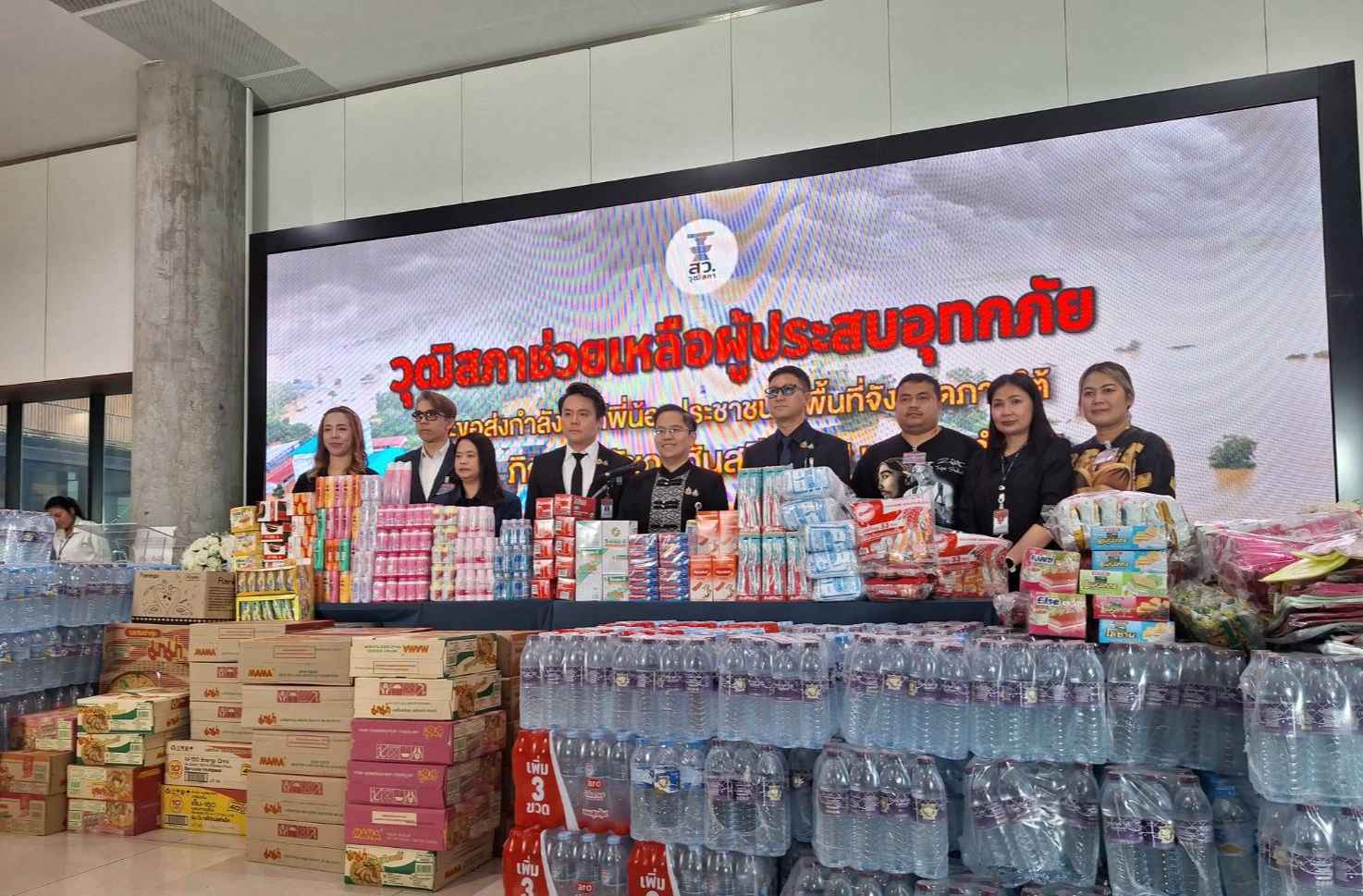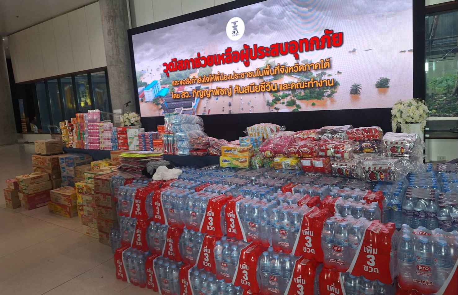 นางสาวภิญญาพัชญ์ ศันสนียชีวิน สมาชิกวุฒิสภา รับมอบสิ่งของจากภาคส่วนเอกชน อาทิ น้ำดื่ม 4,500 ขวด ข้าวสาร 1,600 กิโลกรัม บะหมี่ 2,760 ห่อ นอกจากนี้ ยังมียารักษาโรค และของใช้จำเป็น เพื่อนำไปช่วยเหลือผู้ประสบอุทกภัยในพื้นที่ภาคใต้ ณ บริเวณ ห้องโถง ชั้น 1 อาคารรัฐสภา