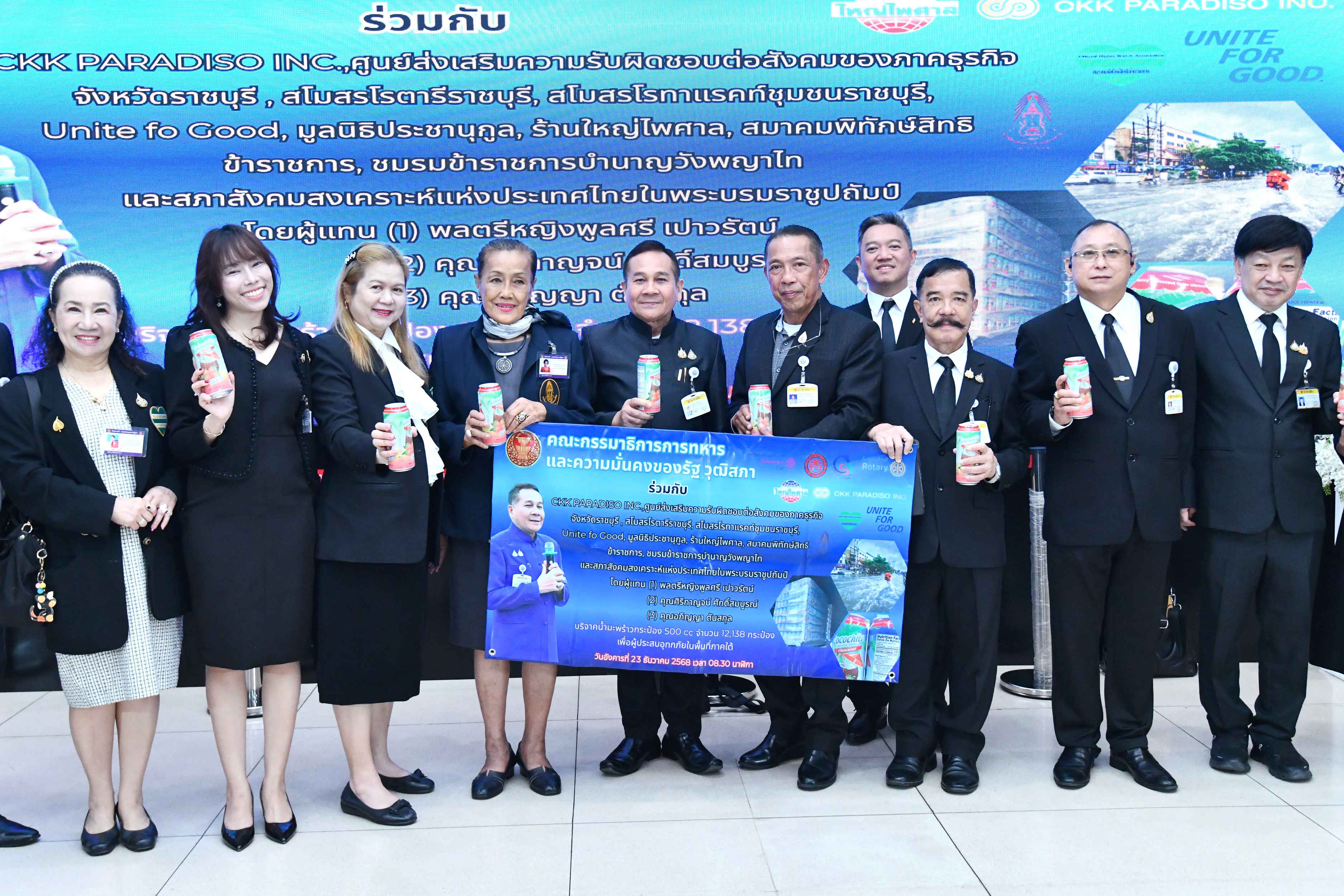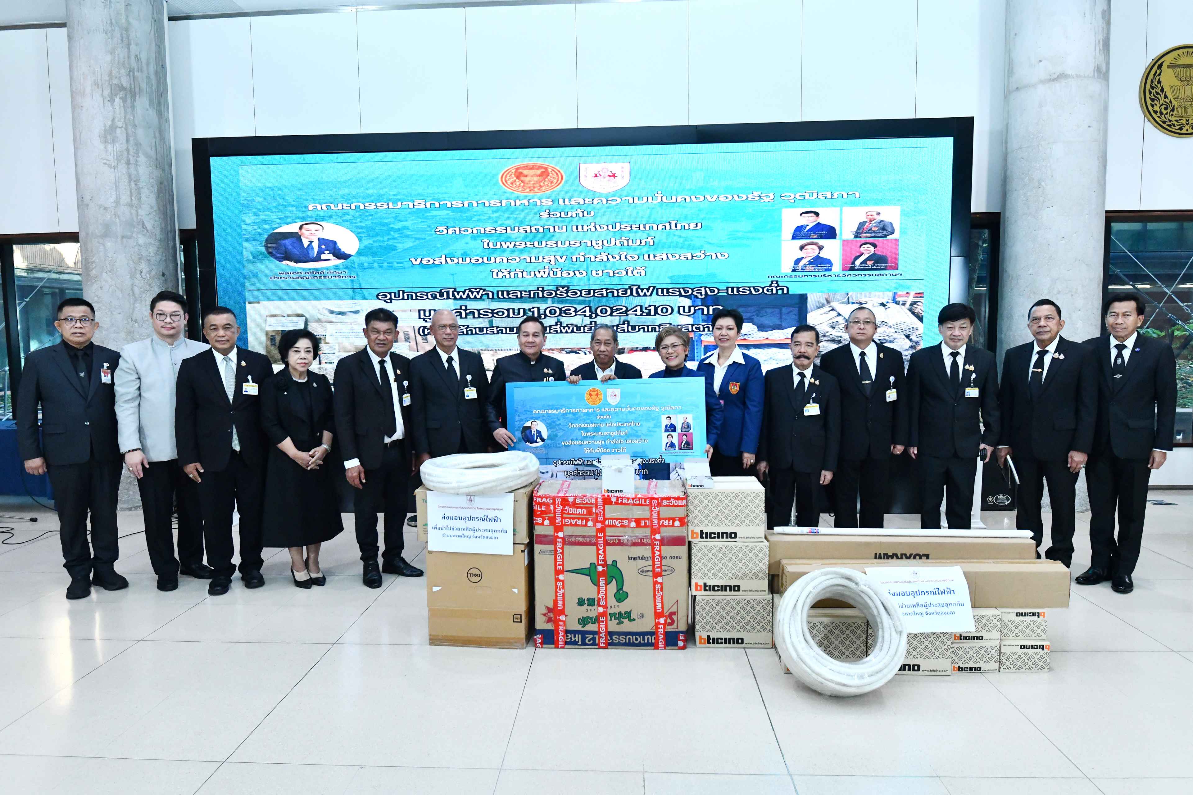 นอกจากนี้ คณะกมธ.ยังร่วมกับวิศกรรมสถานแห่งประเทศไทย ในพระบรมราชูปถัมภ์ และภาคเอกชน ส่งมอบอุปกรณ์ไฟฟ้า และท่อร้อยสายไฟแรงสูง - แรงต่ำ มูลค่ารวมกว่า 1 ล้านบาท และน้ำมะพร้าวกระป๋อง กว่า 12,000 กระป๋อง เพื่อนำไปช่วยเหลือผู้ประสบอุทกภัยในพื้นที่ภาคใต้ด้วย