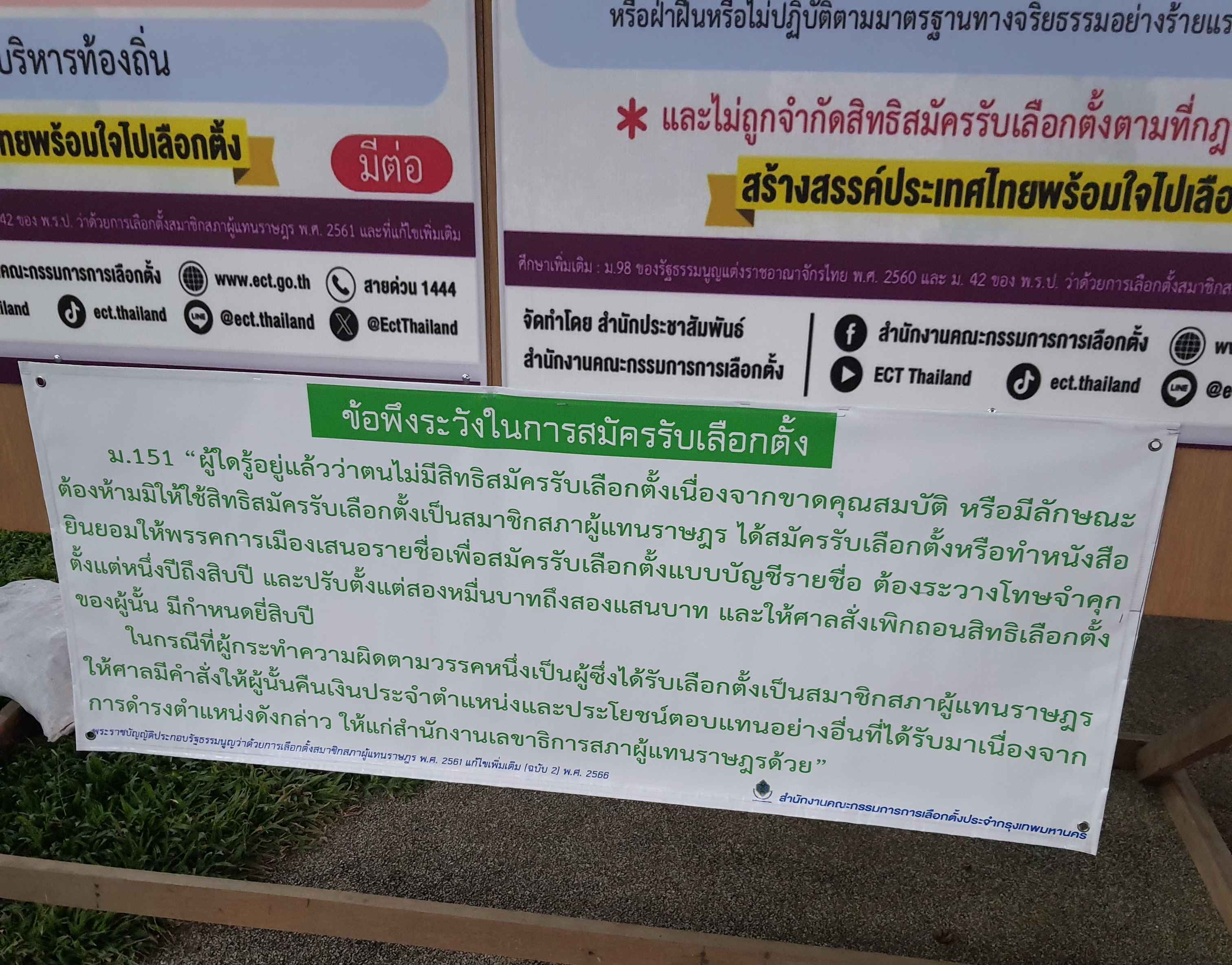 ทั้งนี้ บรรยากาศโดยรวมในช่วงเช้าเป็นไปด้วยความคึกคัก มีผู้สมัครและกองเชียร์จากพรรคการเมืองต่าง ๆ เดินทางมาให้กำลังใจ ท่ามกลางมาตรการรักษาความปลอดภัยอย่างเข้มงวด และมีการติดป้ายประชาสัมพันธ์คุณสมบัติผู้สมัคร ลักษณะต้องห้าม และข้อพึงระวังตามกฎหมายเลือกตั้งอย่างชัดเจน