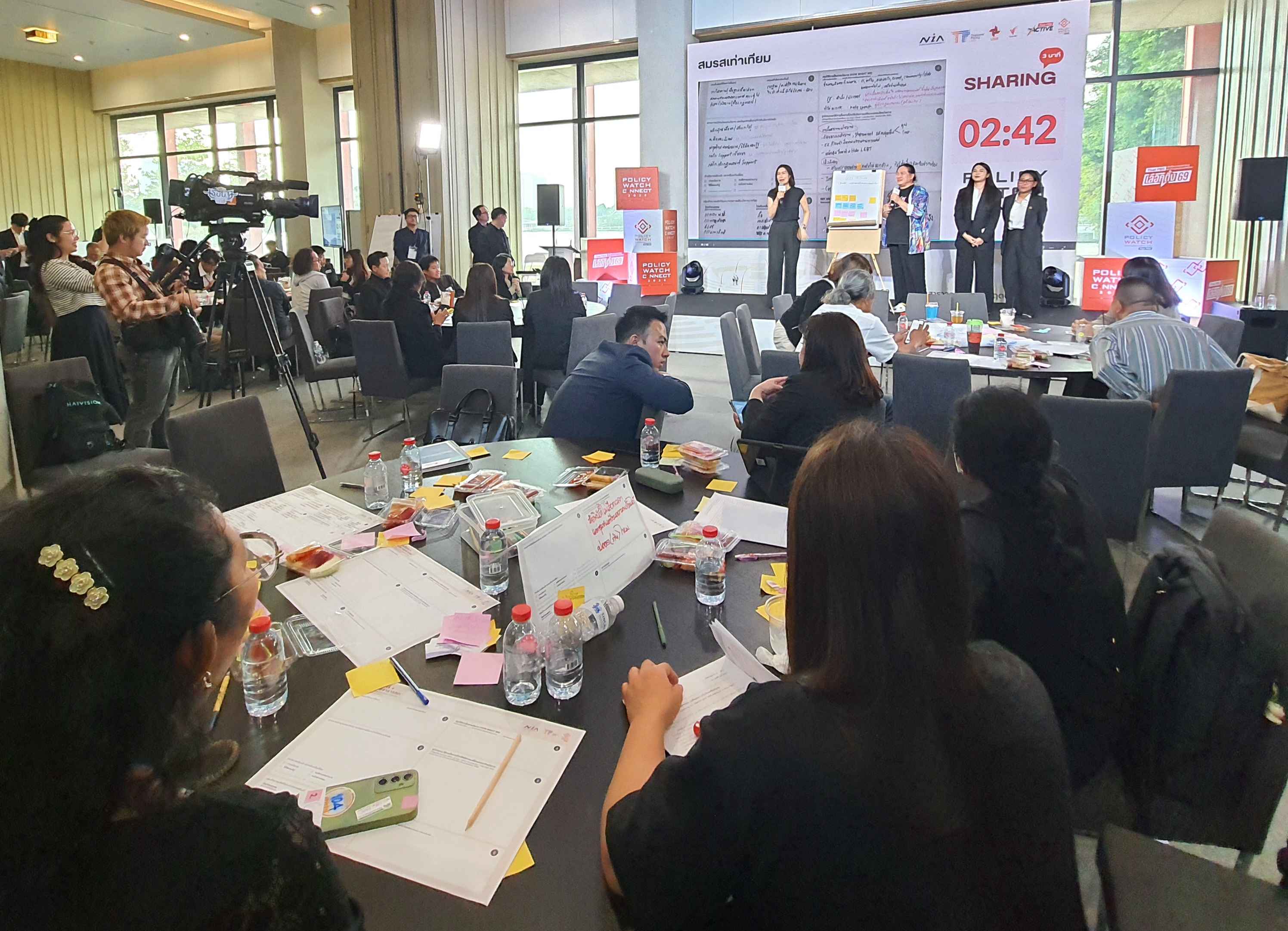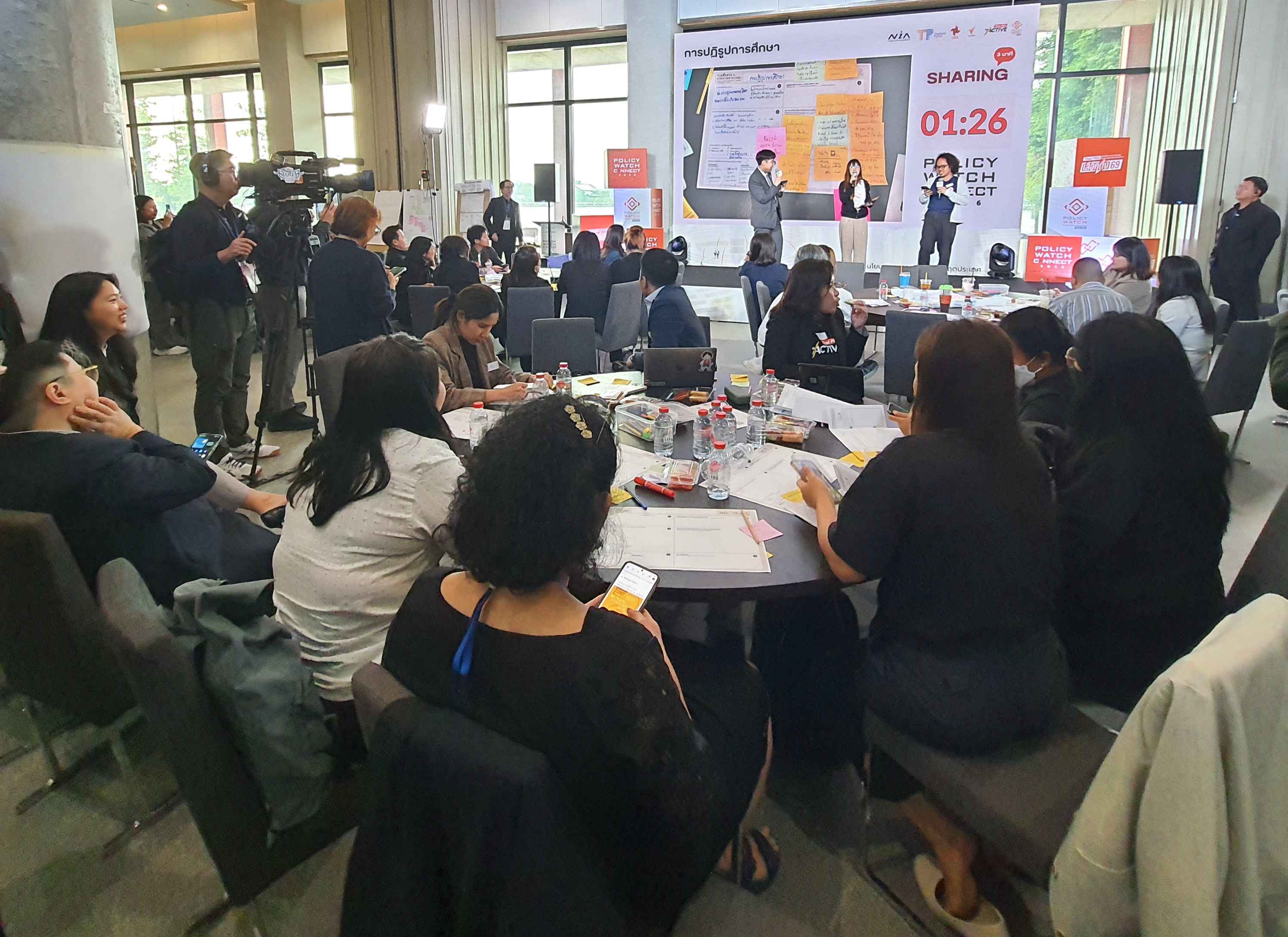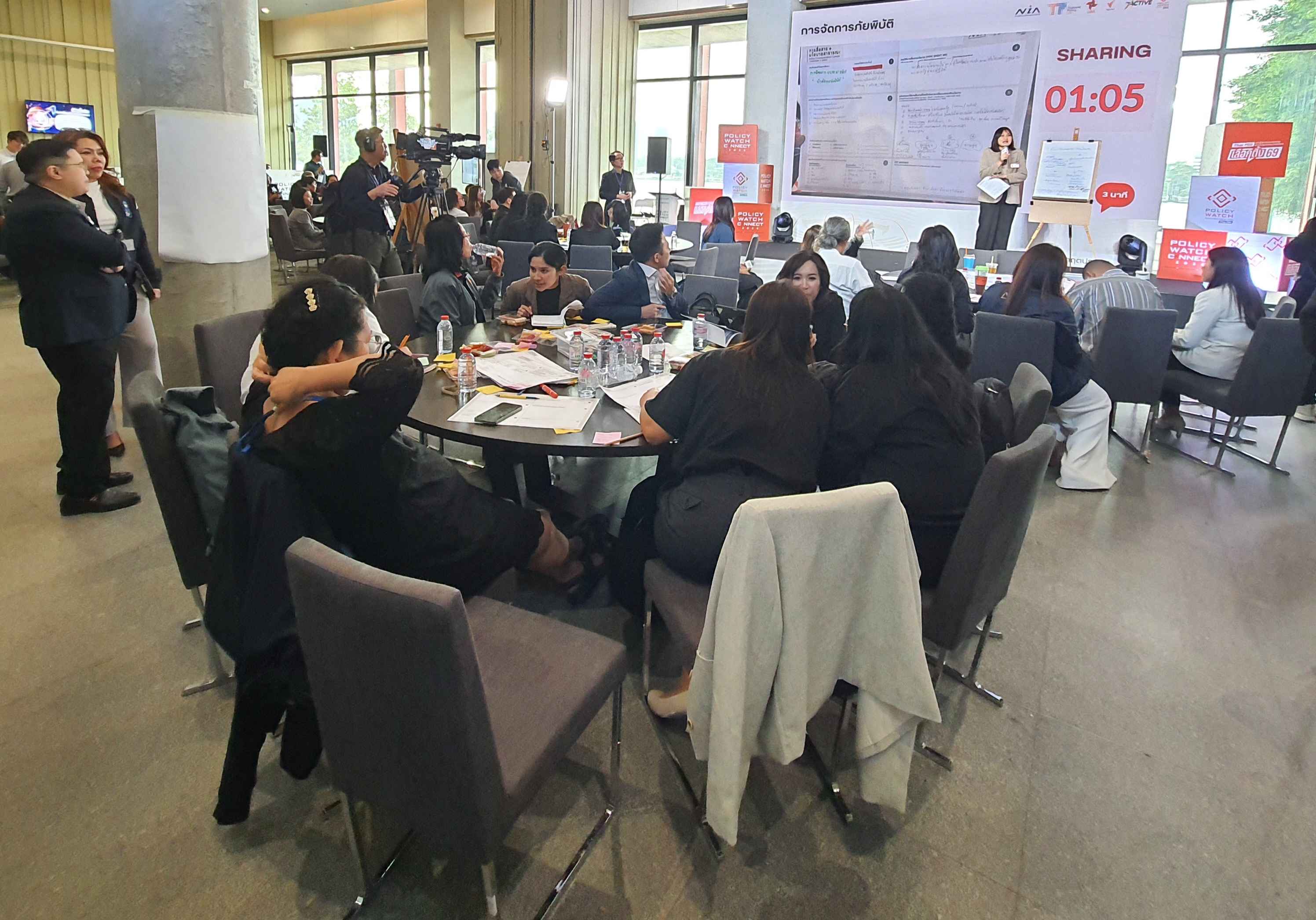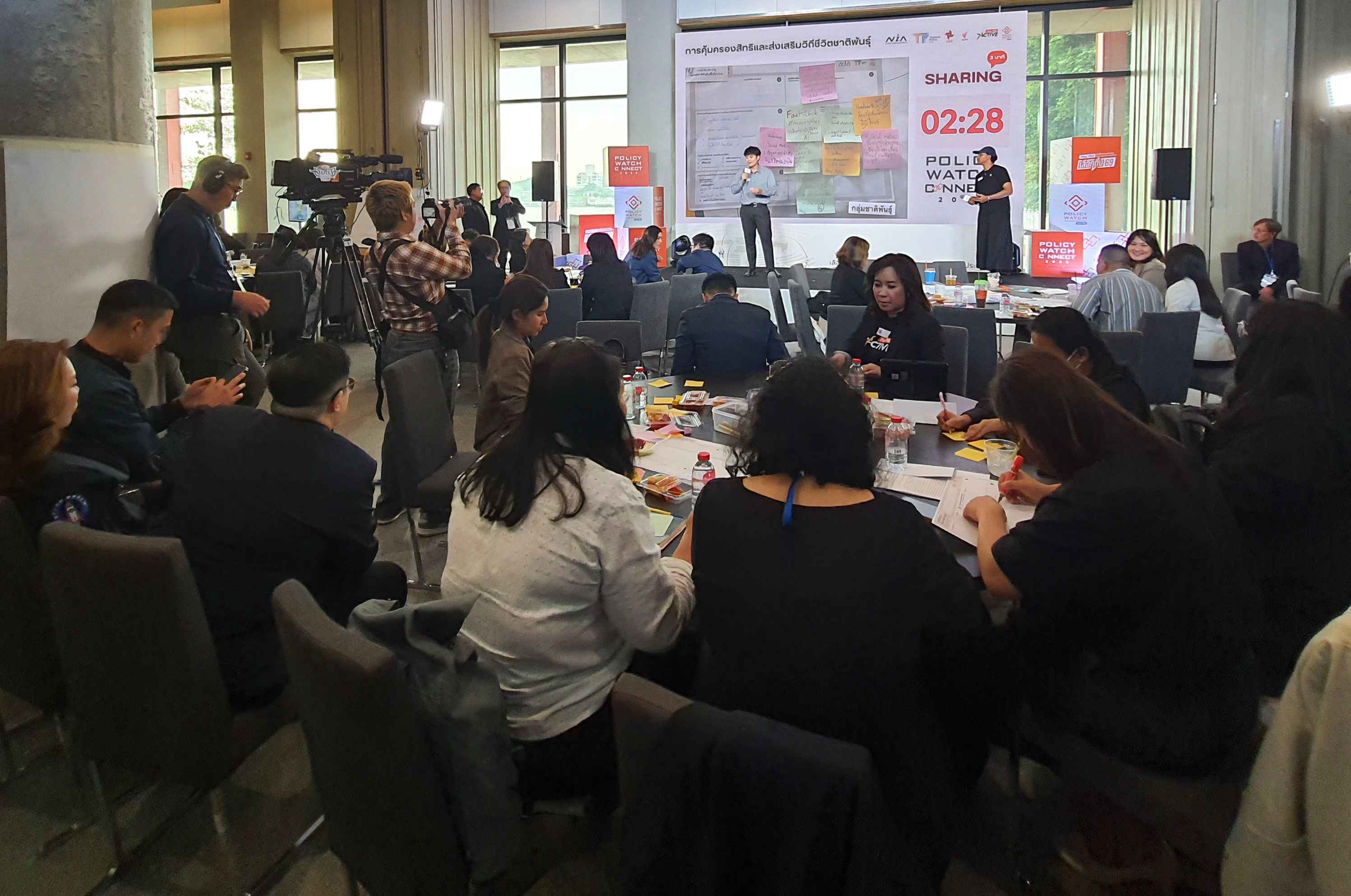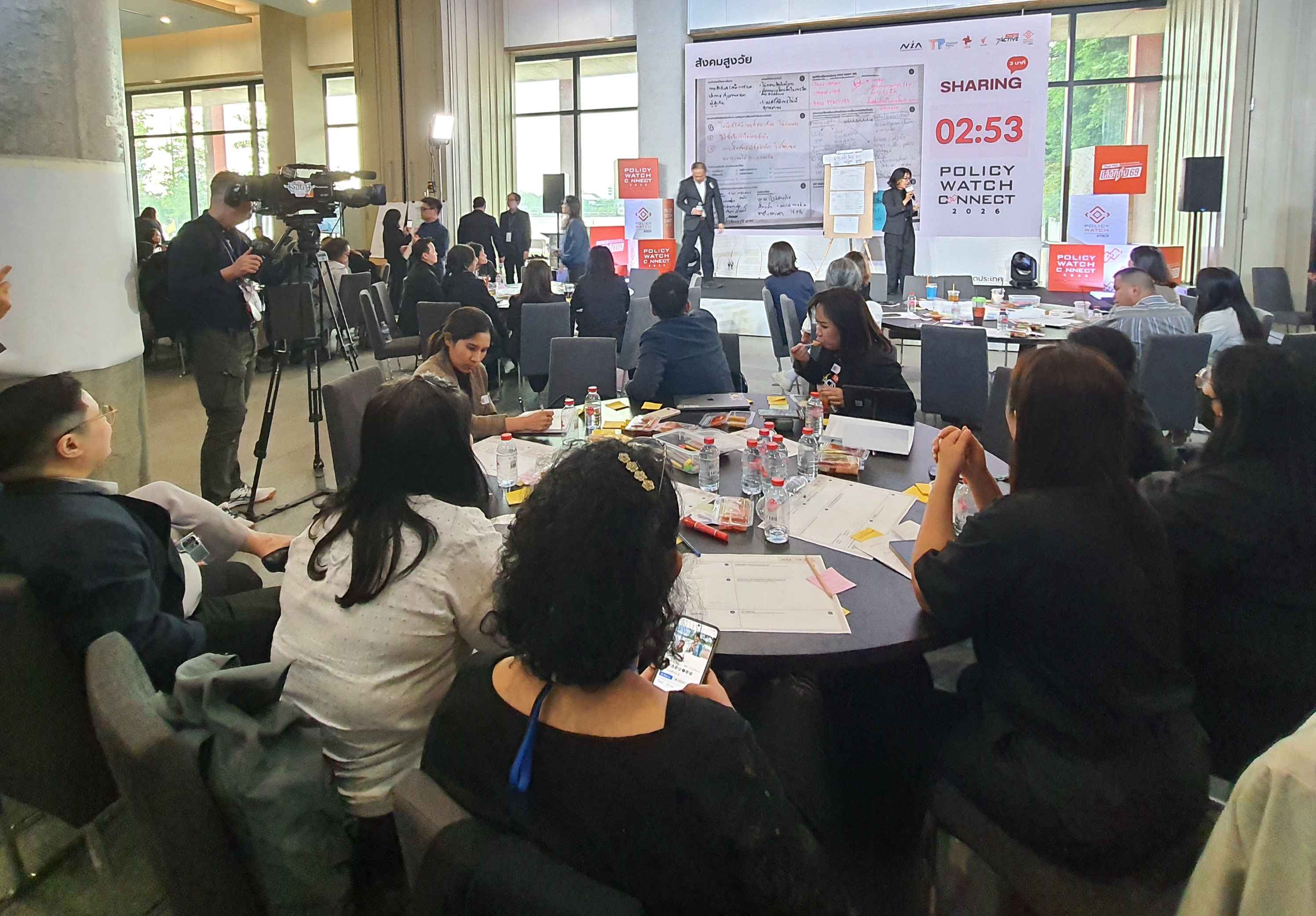 บรรยากาศการจัดโครงการ Policy Watch Connect 2026 เลือกตั้ง 69 นโยบายสาธารณะ ฝ่าวิกฤตประเทศ โดย คณะกรรมาธิการ (กมธ.) การพัฒนาการเมือง การมีส่วนร่วมของประชาชน สิทธิมนุษยชน สิทธิ เสรีภาพ และการคุ้มครองผู้บริโภค วุฒิสภา ร่วมกับ มูลนิธิฮันส์ ไซเดล ประเทศไทย ศูนย์สื่อสารวาระทางสังคมและนโยบายสาธารณะ (The Active) ไทยพีบีเอส สถาบันพระปกเกล้า สำนักงานกองทุนสนับสนุนการสร้างเสริมสุขภาพ (สสส.) และสำนักงานนวัตกรรมแห่งชาติ (NIA) ณ อาคารรัฐสภา ในช่วงบ่ายถึงช่วงเย็นวันนี้ (15 ม.ค.69) ซึ่งเป็นวันที่สี่ของการจัดกิจกรรม มีการจัดกิจกรรมภายใต้แนวคิดหลัก Policy Innovation in Action: Policy Watch Dating มีการทำกิจกรรมกลุ่ม ด้วยการประชุมเชิงปฏิบัติการ (Workshop) แบ่งออกเป็น 9 กลุ่ม ครอบคลุม 7 ประเด็น ได้แก่ ตายดี การคุ้มครองสิทธิและส่งเสริมวิถีชีวิตชาติพันธุ์ สมรสเท่าเทียม สังคมสูงวัย ภัยพิบัติ การปฏิรูปการศึกษา และทุจริตคอร์รัปชัน ภายใต้หัวข้อ Public Policy Communication: Innovation in Action กรอบแนวคิดและกรณีศึกษา โดยมี ผศ.ธีรพัฒน์ อังศุชวาล เป็นผู้ให้ข้อมูล และหัวข้อ Designing Policy Communication Innovation การออกแบบการสื่อสารนโยบายสาธารณะเพื่อสนับสนุนการตัดสินใจและการดำเนินนโยบายอย่างมีประสิทธิภาพ โดยมี ผศ.ธีรพัฒน์ อังศุชวาล คุณฐายิกา จันทร์เทพ และคุณทิฟฟานี เชน เป็นให้ข้อมูล ก่อนเปิดเวทีให้แต่ละกลุ่มได้นำเสนอผลการออกแบบ (Group Sharing) และและแลกเปลี่ยนข้อเสนอแนะ ใน 4 เรื่อง คือ ประเด็น การตั้งโจทย์ แผนการสื่อสาร และ Key Message ของทั้ง 7 ประเด็นในการทำ Workshop ด้วย