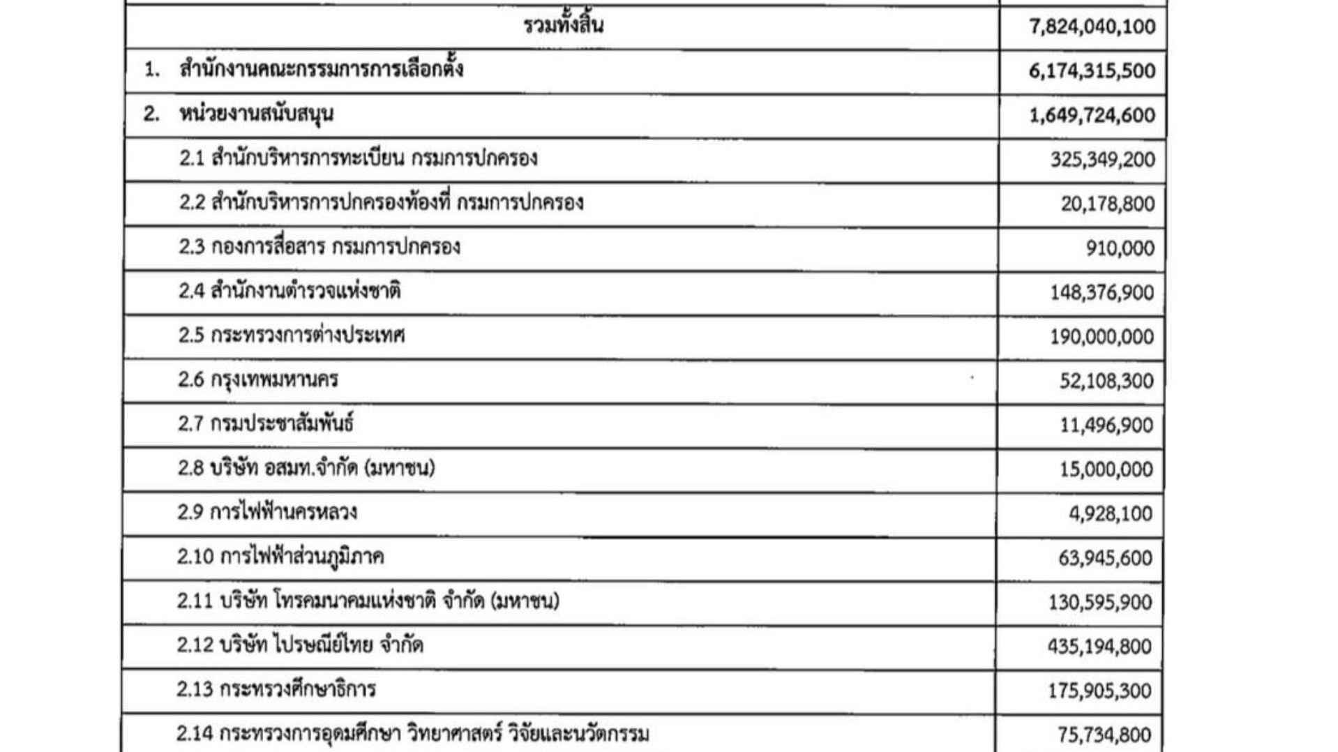 กกต.ได้มีมติเห็นชอบงบประมาณรายจ่ายประจำปีงบประมาณ พ.ศ. 2569 งบกลาง รายการเงินสำรองจ่ายเพื่อกรณีฉุกเฉินหรือจำเป็น สำหรับการดำเนินภารกิจดังกล่าว จำนวน 7,824,040,100 บาท โดยมีรายละเอียด ดังนี้ 1. สำนักงานคณะกรรมการการเลือกตั้ง จำนวน 6,174,315,500 บาท ซึ่งเป็นค่าใช้จ่ายในการควบคุมและจัดการเลือกตั้ง สส. และการออกเสียงประชามติ และงบประมาณในส่วนของหน่วยงานสนับสนุน จำนวน 1,649,724,600 บาท จำนวน 14 องค์กร