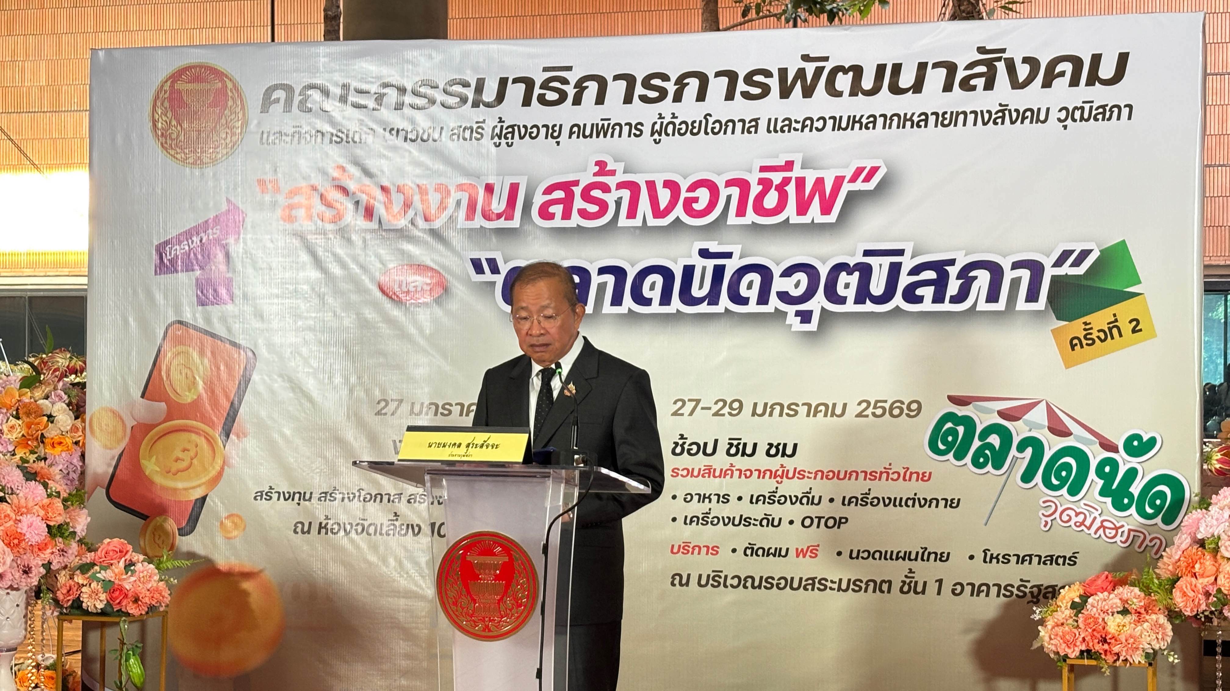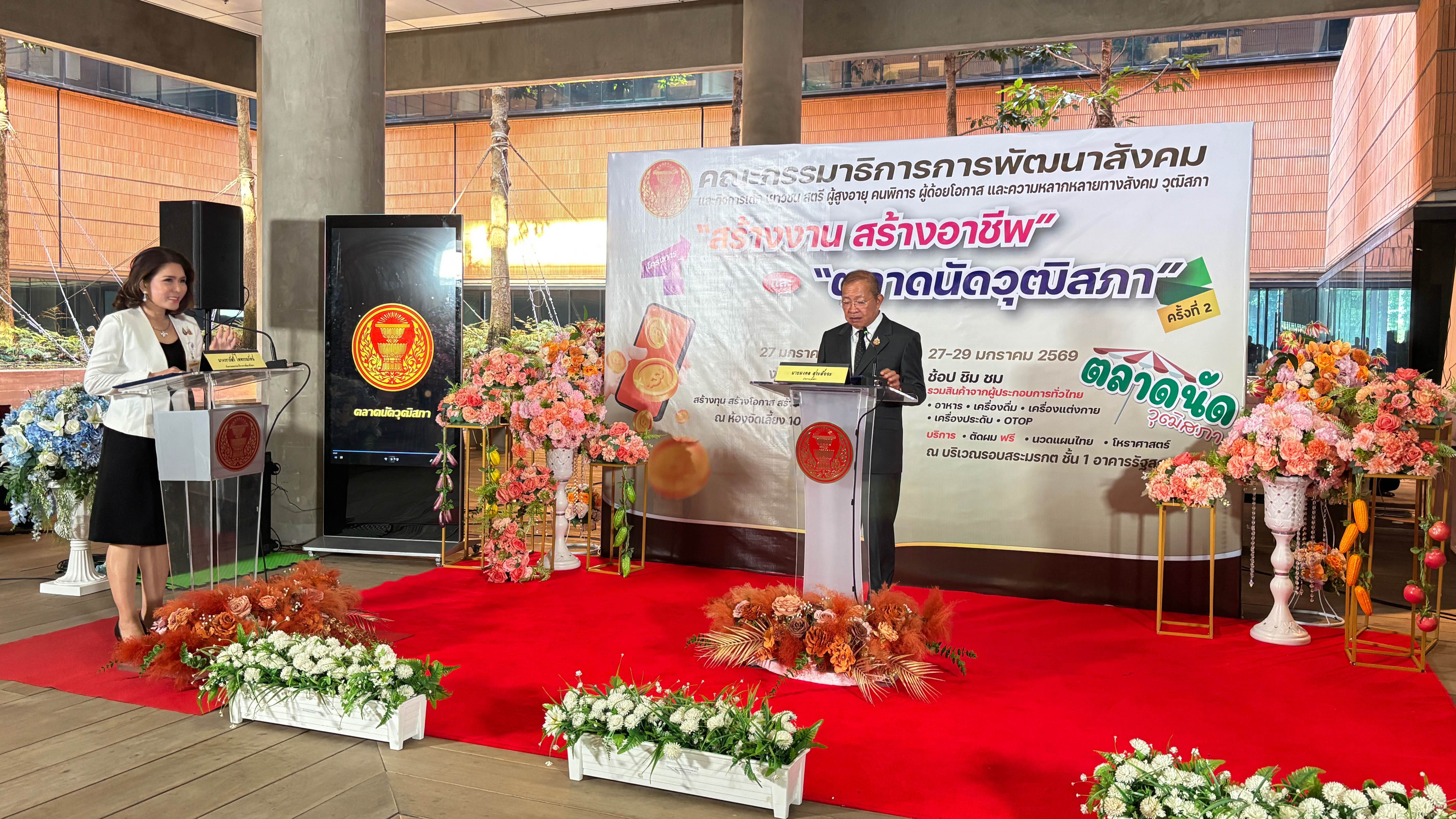 นายมงคล สุระสัจจะ ประธานวุฒิสภา เป็นประธานในพิธีเปิดโครงการสร้างงาน สร้างอาชีพ ตลาดนัดวุฒิสภา ครั้งที่ 2 ซึ่งจัดโดยคณะกรรมาธิการการพัฒนาสังคม และกิจการเด็ก เยาวชน สตรี ผู้สูงอายุ คนพิการ ผู้ด้อยโอกาส และความหลากหลายทางสังคม วุฒิสภา เพื่อส่งเสริมอาชีพ สร้างรายได้ และยกระดับคุณภาพชีวิตของประชาชนอย่างยั่งยืนประธานวุฒิสภา กล่าวว่าการเปลี่ยนแปลงทางสังคมและเทคโนโลยีส่งผลให้เกิดอาชีพใหม่จำนวนมาก ขณะเดียวกันบางอาชีพได้เลือนหายไป แต่ยังมีอาชีพดั้งเดิมของคนไทยที่สามารถพัฒนาต่อยอดได้ โดยเฉพาะอาชีพที่เป็นรากฐานของชุมชน เช่น เกษตรกรรายย่อยที่พัฒนาเป็นผู้ประกอบการขนาดกลางและขนาดย่อม (SME) ซึ่งสอดคล้องกับแนวพระราชดำริของในหลวงรัชกาลที่ 9 และสมเด็จพระนางเจ้าสิริกิติ์ พระบรมราชชนนีพันปีหลวง ในการส่งเสริมอาชีพและศูนย์ศิลปาชีพ อาทิ งานหัตถกรรมและงานฝีมือพื้นบ้าน ที่สามารถยกระดับจนเป็นที่ยอมรับในระดับสากล สร้างงาน สร้างรายได้ และเปลี่ยนแปลงคุณภาพชีวิตของประชาชนในพื้นที่ สำหรับการจัดงานในครั้งนี้ มีผู้ผลิตและผู้ประกอบการรายย่อยจากทั่วประเทศนำสินค้ามาร่วมจัดแสดงเป็นจำนวนมาก เปิดโอกาสให้เกิดการแลกเปลี่ยนเรียนรู้ซึ่งกันและกัน เพื่อนำไปสู่การพัฒนาต่อยอดสินค้าและอาชีพในระยะยาว แม้รัฐสภาจะเป็นเพียงจุดเล็ก ๆ ของสังคมไทย แต่ในฐานะฝ่ายนิติบัญญัติได้มีส่วนร่วมในการสร้างโอกาสและจุดเริ่มต้นที่ดีให้กับประชาชน เพื่อยกระดับคุณภาพชีวิตและการมีส่วนร่วมของสังคม