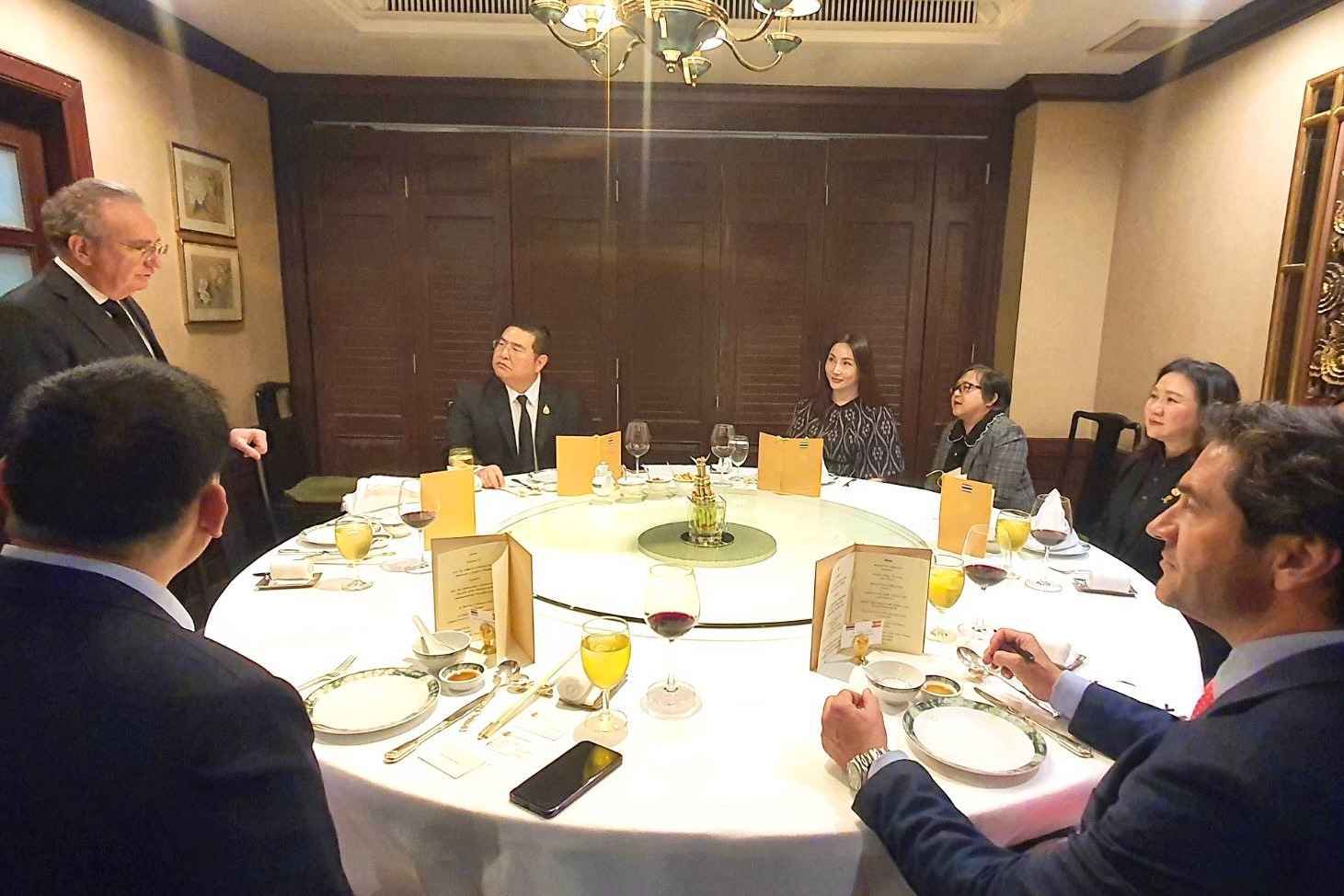 นางสาวเข็มรัตน์ สุรเมธีมาณพ สมาชิกวุฒิสภา ในฐานะประธานกลุ่มมิตรภาพสมาชิกรัฐสภาไทย - สเปน เป็นเจ้าภาพงานเลี้ยงอาหารค่ำ เพื่อเป็นเกียรติแก่ นายเฟลิเป เด ลา โมเรนา กาซาโด (H.E. Mr. Felipe de la Morena Casado) เอกอัครราชทูตราชอาณาจักรสเปนประจำประเทศไทย และคณะ ในโอกาสแสดงความขอบคุณเอกอัครราชทูตฯ ในการประสานงานการเดินทางเยือนราชอาณาจักรสเปนของคณะผู้แทนกลุ่มมิตรภาพฯ ไทย-สเปน ระหว่างวันที่ 5 - 10 พฤศจิกายน 2568 ทำให้เกิดประโยชน์ต่อรัฐสภาทั้งสองประเทศ โดยมีกรรมการบริหารและที่ปรึกษากลุ่มมิตรภาพฯ ไทย-สเปน เข้าร่วมงานเลี้ยงในครั้งนี้ ณ ห้องอาหารไดนาสตี้ โรงแรมเซ็นทาราแกรนด์ เซ็นทรัลพลาซา ลาดพร้าว กรุงเทพฯ ประกอบด้วย นางเจียระนัย ตั้งกีรติ สมาชิกวุฒิสภา ในฐานะกรรมการและเลขานุการ นายชวภณ วัธนเวคิน สมาชิกวุฒิสภา ในฐานะที่ปรึกษา และนายโสภณ มะโนมะยาสมาชิกวุฒิสภา ในฐานะที่ปรึกษา