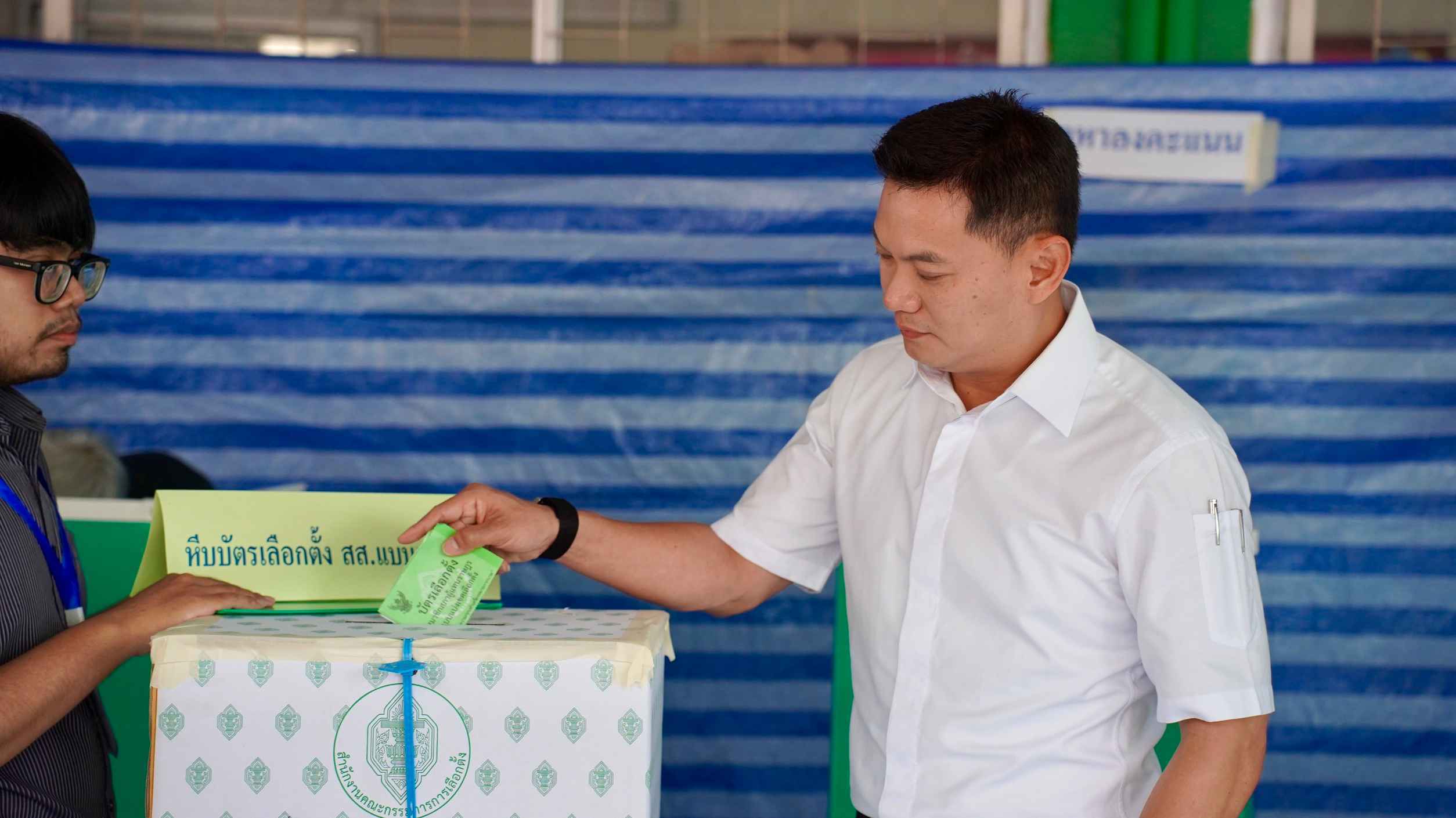 ศาสตราจารย์ ดร.สุชัชวีร์ สุวรรณสวัสดิ์ หรือ ดร.เอ้ หัวหน้าพรรคไทยก้าวใหม่ และแคนดิเดตนายกรัฐมนตรี เดินทางมาใช้สิทธิเลือกตั้งและออกเสียงประชามติ ที่หน่วยเลือกตั้งโรงเรียนลำสาลี (ราษฎร์บำรุง) ถนนศรีนครินทร์-ร่มเกล้า แขวงหัวหมาก เขตบางกะปิ กรุงเทพมหานคร พร้อมด้วยครอบครัว