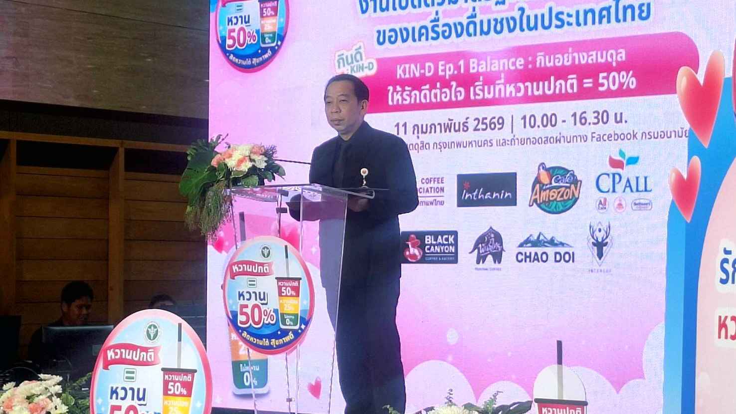ด้านแพทย์หญิงอัมพร เบญจพลพิทักษ์ อธิบดีกรมอนามัย กล่าวว่า กรมอนามัยได้ขับเคลื่อนนโยบาย หวานน้อยสั่งได้ ตั้งแต่ปี 2563 โดยได้รับความร่วมมือจากหลายภาคส่วน ส่งผลให้พฤติกรรมการบริโภคของประชาชน เปลี่ยนแปลงอย่างชัดเจน โดยข้อมูลจากความร่วมมือกับบริษัทไลน์แมน พบว่า ในปี 2567 ประเทศไทยสามารถลดการใช้น้ำตาลได้กว่า 120 ตัน และในปี 2568 ประชาชนสั่งเครื่องดื่มระดับหวานน้อยสูงถึงร้อยละ 75 จากผลสำเร็จดังกล่าว กรมอนามัยจึงต่อยอดในปี 2569 ด้วยการยกระดับมาตรฐานความหวานของเครื่องดื่มชงทั่วประเทศ ภายใต้นโยบาย หวานปกติ = หวาน 50% เพื่อลดระดับความหวานพื้นฐานลงครึ่งหนึ่ง และช่วยปรับความคุ้นชินด้านรสชาติของประชาชนอย่างค่อยเป็นค่อยไป พร้อมรณรงค์ผ่านแนวคิดช่วงเทศกาลวันแห่งความรัก รักดีต่อใจ เริ่มที่หวานปกติ = 50% ตอกย้ำว่าการลดหวานคือการดูแลหัวใจและสุขภาพในระยะยาว