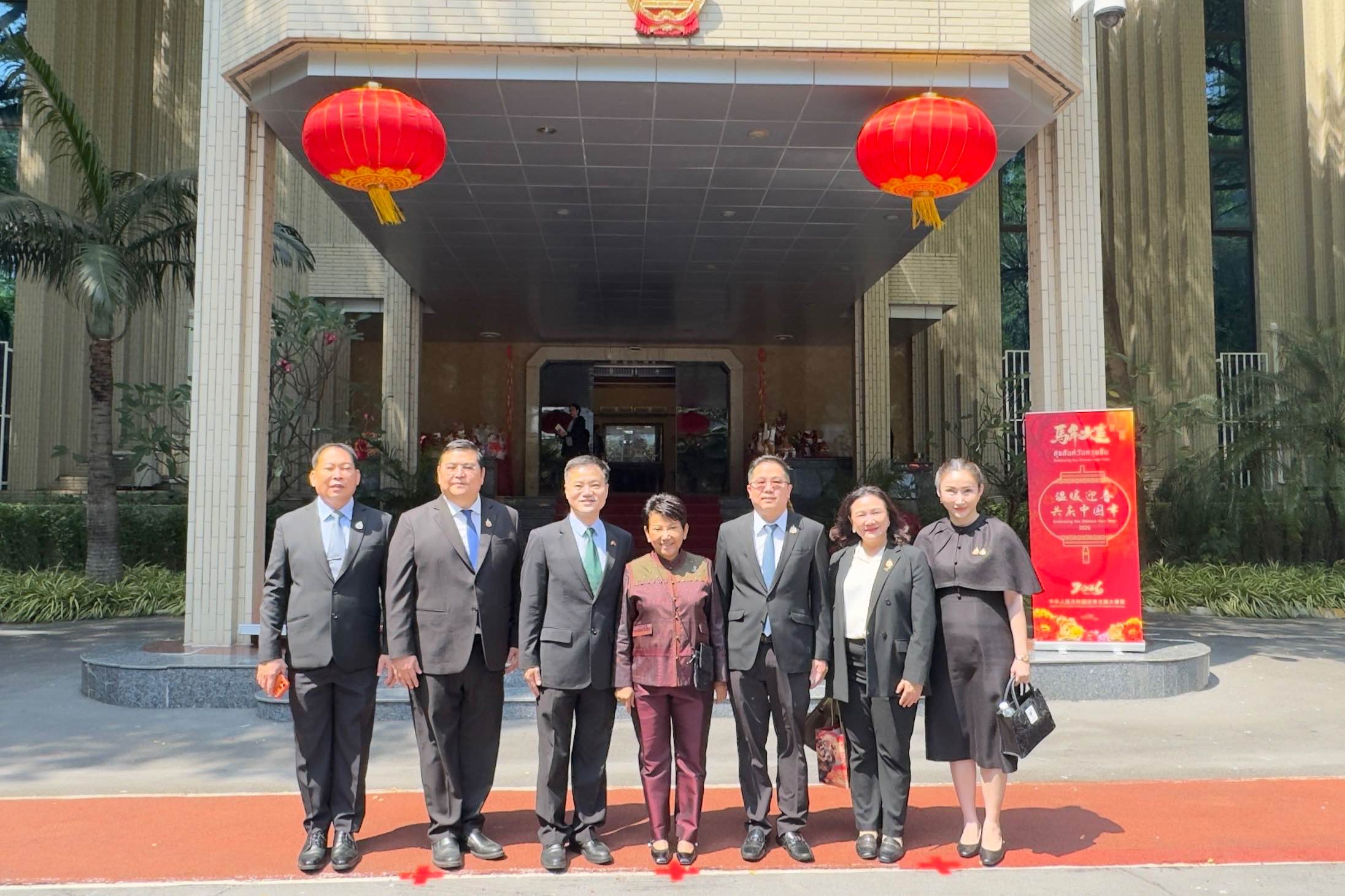 นายธัชชญาณ์ณัช เจียรธนัทกานนท์ สมาชิกวุฒิสภา ในฐานะรองประธานกลุ่มมิตรภาพสมาชิกรัฐสภาไทย - จีน และคณะ ประกอบด้วย นายชวภณ วัธนเวคิน สมาชิกวุฒิสภา ในฐานะกรรมการ นางสาวเข็มรัตน์ สุรเมธีมาณพ สมาชิกวุฒิสภา ในฐานะกรรมการและเลขานุการ พร้อมด้วย นางเจียระนัย ตั้งกีรติ และนายโสภณ มะโนมะยา สมาชิกวุฒิสภา เข้าร่วมงานต้อนรับเทศกาลตรุษจีน 2569 ณ สถานเอกอัครราชทูตสาธารณรัฐประชาชนจีนประจำประเทศไทย ตามคำเชิญของนายจาง เจี้ยนเว่ย (H.E. Mr. Zhang Jianwei) เอกอัครราชทูตสาธารณรัฐประชาชนจีนประจำประเทศไทย และนางเหมียว ไห่เยี่ยน (Mrs. Miao Haiyan) ภริยา โดยมี นายอนุทิน ชาญวีรกูล นายกรัฐมนตรี ให้เกียรติกล่าวเปิดงาน ในการนี้ นางนันทนา สงฆ์ประชา อดีตประธานกลุ่มมิตรภาพฯ ไทย - จีน เข้าร่วมงานด้วย