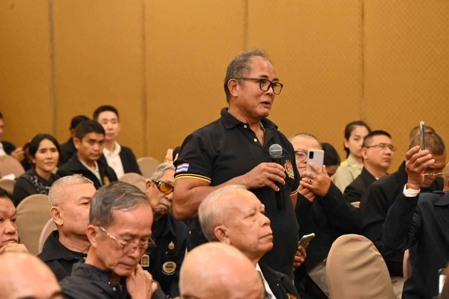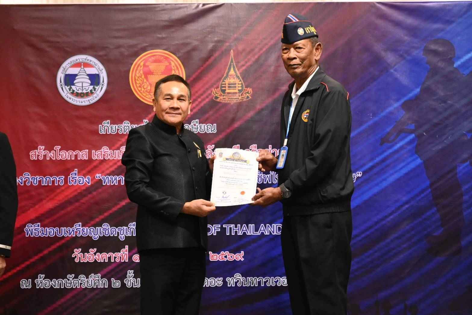 พลเอก สวัสดิ์ ทัศนา ประธาน กมธ. กล่าวว่าทหารผ่านศึก คือ ผู้ที่นิยามคำว่า เสียสละด้วยการกระทำ เป็นผู้ที่เคยยืนหยัดอยู่ในสมรภูมิ เพื่อปกป้องอธิปไตย ความมั่นคง และความสงบสุขของชาติ ด้วยเลือดเนื้อและชีวิต ในฐานะผู้มีคุณูปการสูงสุดต่อแผ่นดิน เป็นแบบอย่างของการมีระเบียบวินัย ความจงรักภักดีต่อชาติ ศาสนา และพระมหากษัตริย์ ถึงแม้ว่าภารกิจในสนามรบจะจบสิ้นแล้ว แต่เกียรติยศไม่มีวันเกษียณ และลบเลือนไปจากจิตใจของประชาชนคนไทย เมื่อโลกก้าวเข้าสู่ยุคใหม่ที่เต็มไปด้วยการเปลี่ยนแปลงทางเทคโนโลยีและเศรษฐกิจ การปรับตัวเข้าสู่บริบทใหม่ของสังคมจึงเป็นสิ่งสำคัญท่ามกลางความเปลี่ยนแปลงของยุคสมัย กมธ. เล็งเห็นว่า สิ่งสำคัญที่ต้องเร่งรัด คือการสร้างหลักประกันว่าจะไม่มีวีรบุรุษผู้ใดถูกทอดทิ้ง ต้องสามารถยืนหยัดได้อย่างสง่างาม ด้วยการเอาชนะสภาพเศรษฐกิจที่ย่ำแย่สำเร็จ ซึ่งการเสวนาในวันนี้จะเป็นการติดอาวุธทางปัญญาและเสริมทักษะใหม่ ๆ ให้ทันยุคสมัย เพื่อเปลี่ยนผ่านสู่อาชีพใหม่แห่งทศวรรษ นอกจากนี้ เพื่อแสดงน้ำใจไมตรีจากหัวใจของประชาชนคนไทย และเป็นเครื่องหมายยืนยันว่าพวกเราไม่เคยลืมท่าน เหล่าทหารผ่านศึก กมธ. และองค์การสงเคราะห์ทหารผ่านศึก ในพระบรมราชูปถัมภ์ ขอมอบเหรียญเชิดชูเกียรติ HERO OF THAILAND อันมีคุณค่าเชิงสัญลักษณ์ การมอบเหรียญเชิดชูเกียรติให้แก่ทหารผ่านศึก ภาคีเครือข่าย และผู้มีส่วนร่วม เพื่อเป็นการขอบคุณในการสละเวลาอันมีค่าของทุกท่านที่มาร่วมงาน รวมทั้งความร่วมมือสนับสนุนกิจการทหารผ่านศึก ซึ่งเป็นพลังผลักดันให้ทหารผ่านศึก สามารถเปลี่ยนผ่านไปสู่ชีวิตและบทบาทใหม่ได้อย่างมั่นคง