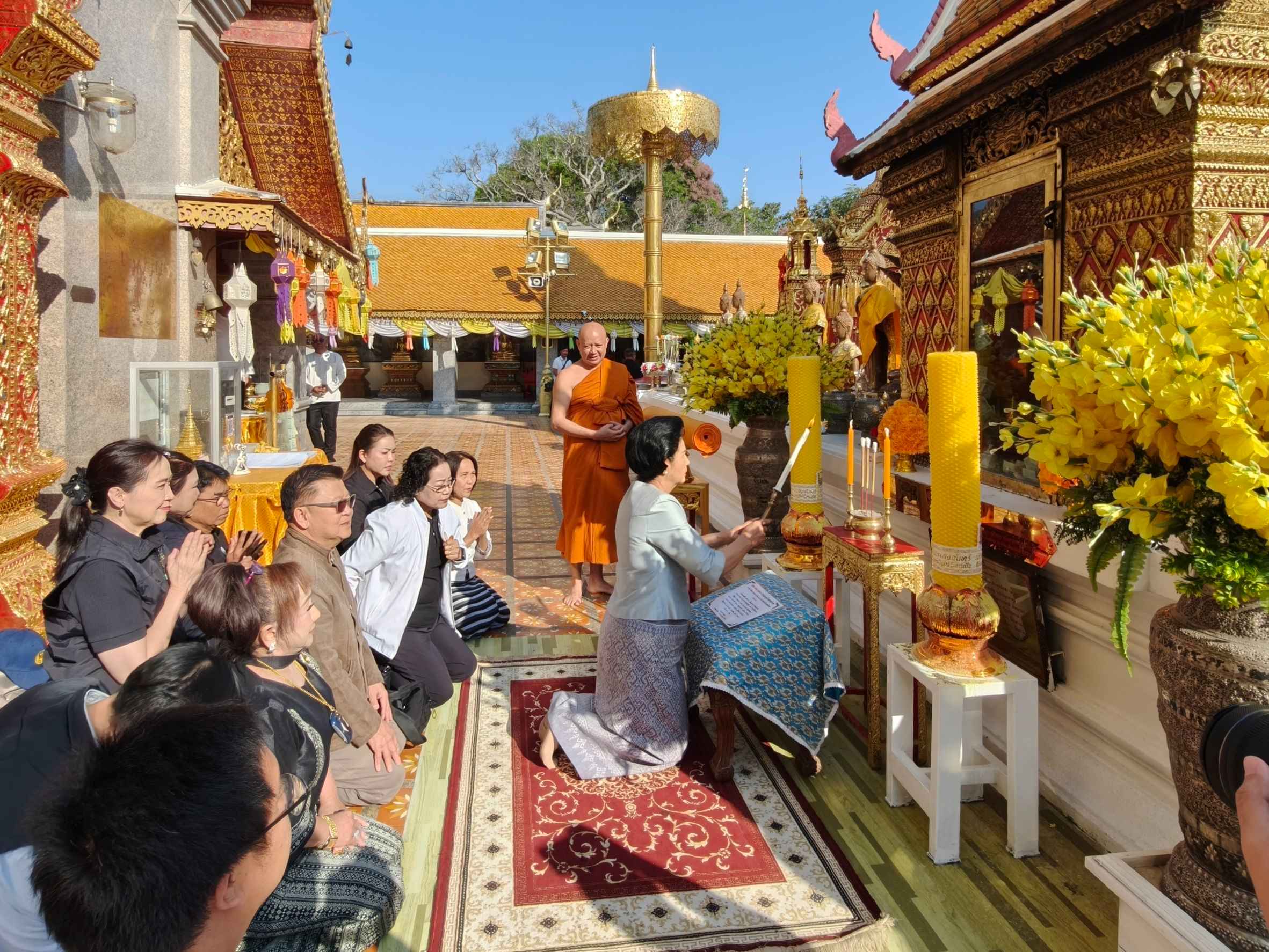 ประธาน กมธ.ได้กล่าวขอบคุณเจ้าอาวาสและคณะสงฆ์ ที่เมตตาให้การต้อนรับอย่างอบอุ่น พร้อมกล่าวถึงวัดพระธาตุดอยสุเทพราชวรวิหารในฐานะศาสนสถานสำคัญของจังหวัดเชียงใหม่และของประเทศ เป็นศูนย์รวมศรัทธาทางพระพุทธศาสนา และเป็นมรดกทางศิลปวัฒนธรรมที่สะท้อนอัตลักษณ์ล้านนา โดยมีองค์พระธาตุดอยสุเทพ ศิลปะล้านนาสมัยเชียงแสน วิหารพระเจ้าสิบชาติ และพิพิธภัณฑ์ของวัด ซึ่งจัดแสดงศิลปวัฒนธรรมและโบราณวัตถุอันทรงคุณค่า