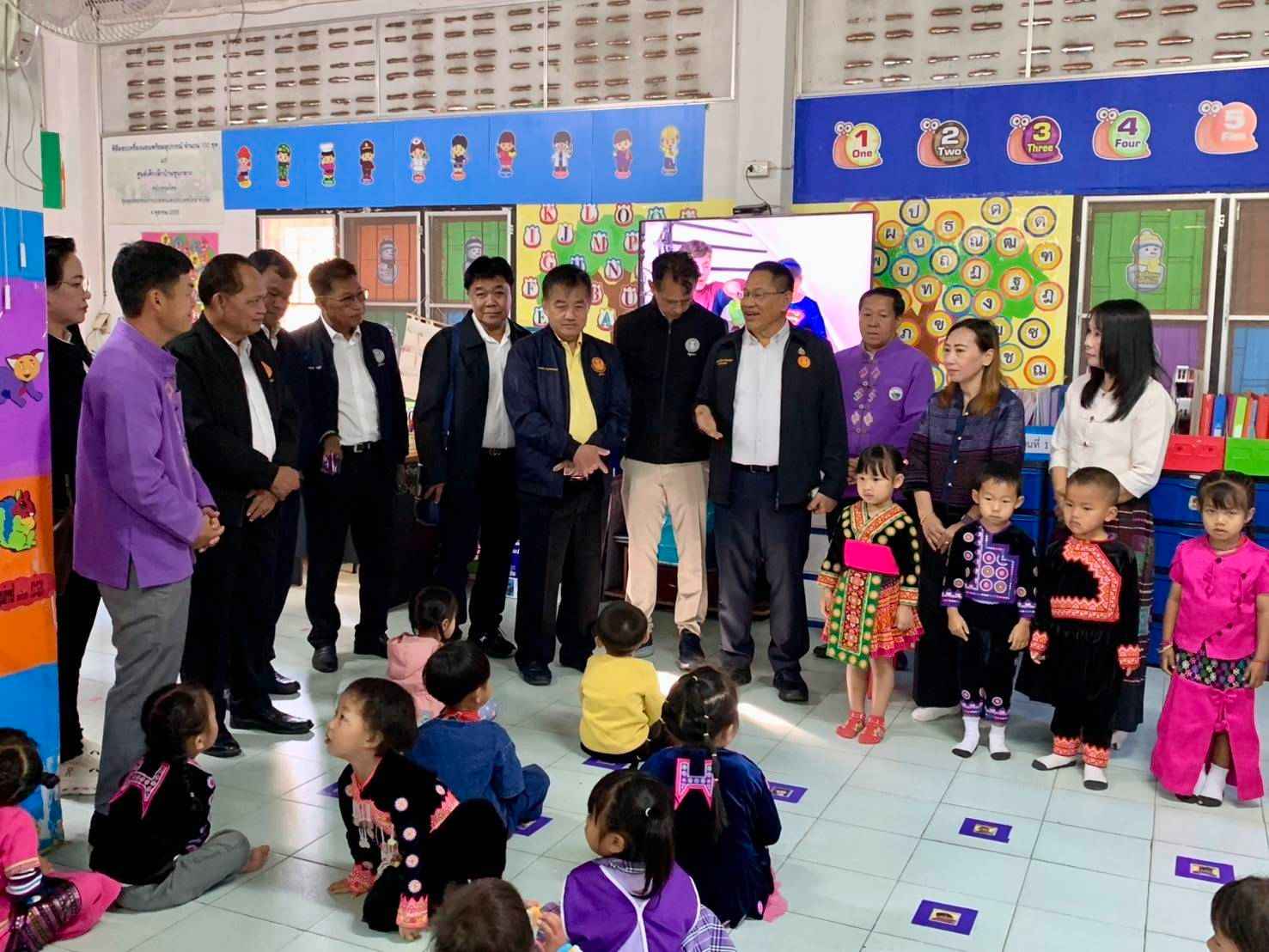 กมธ.ได้รับทราบข้อมูลศูนย์พัฒนาเด็กเล็กบ้านขุนกลาง โดยปัจจุบันมีจำนวนนักเรียนทั้งสิ้น 120 คน แบ่งออกเป็น 4 ห้องเรียน เฉลี่ยห้องละประมาณ 30 คน โดยในช่วงเวลา 08.30 – 09.30 นาฬิกา มีการจัดกิจกรรมสันทนาการก่อนเริ่มเข้าเรียน เพื่อสร้างบรรยากาศที่ผ่อนคลายและกระตุ้นความสนใจของนักเรียน จากนั้น จัดกิจกรรมเตรียมความพร้อมด้านกล้ามเนื้อ เพื่อส่งเสริมพัฒนาการที่จำเป็นต่อการเรียนรู้ด้านการอ่านและการเขียนก่อนเข้าเรียน โดยนักเรียนส่วนใหญ่เป็นเด็กในพื้นที่ตำบลขุนกลางและบ้านอ่างกาน้อย โดยมีพื้นฐานทางชาติพันธุ์ปกาเกอะญอและม้ง ซึ่งเป็นกลุ่มชาติพันธุ์ไทยภูเขาที่อาศัยในพื้นที่ดังกล่าว