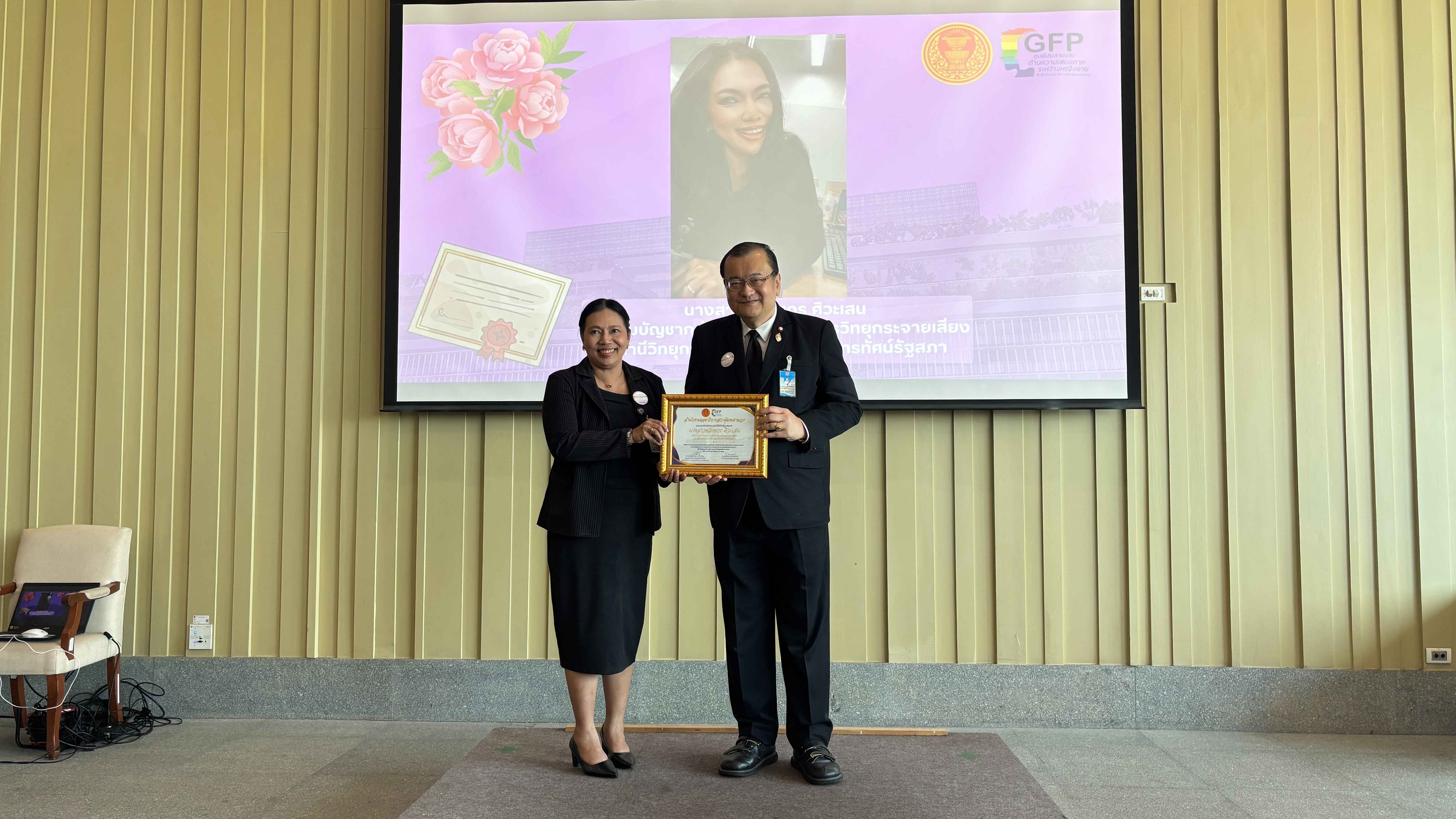 ทั้งนี้ นายณัฏฐกฤษฎ์ ได้มอบเกียรติบัตรแด่ผู้บริหารสตรีระดับสูง ประเภทอำนวยการสูง (ผู้อำนวยการสำนัก) และผู้บังคับบัญชากลุ่มงาน จำนวน 24 สำนัก 2 กลุ่มงาน และมี ดร.ภาคภูมิ มิ่งมิตร ผู้บังคับบัญชากลุ่มงานเลขาธิการสภาผู้แทนราษฎร หัวหน้าศูนย์ประสานงานด้านความเสมอภาคระหว่างหญิงชาย กล่าวประกาศเกียรติคุณ