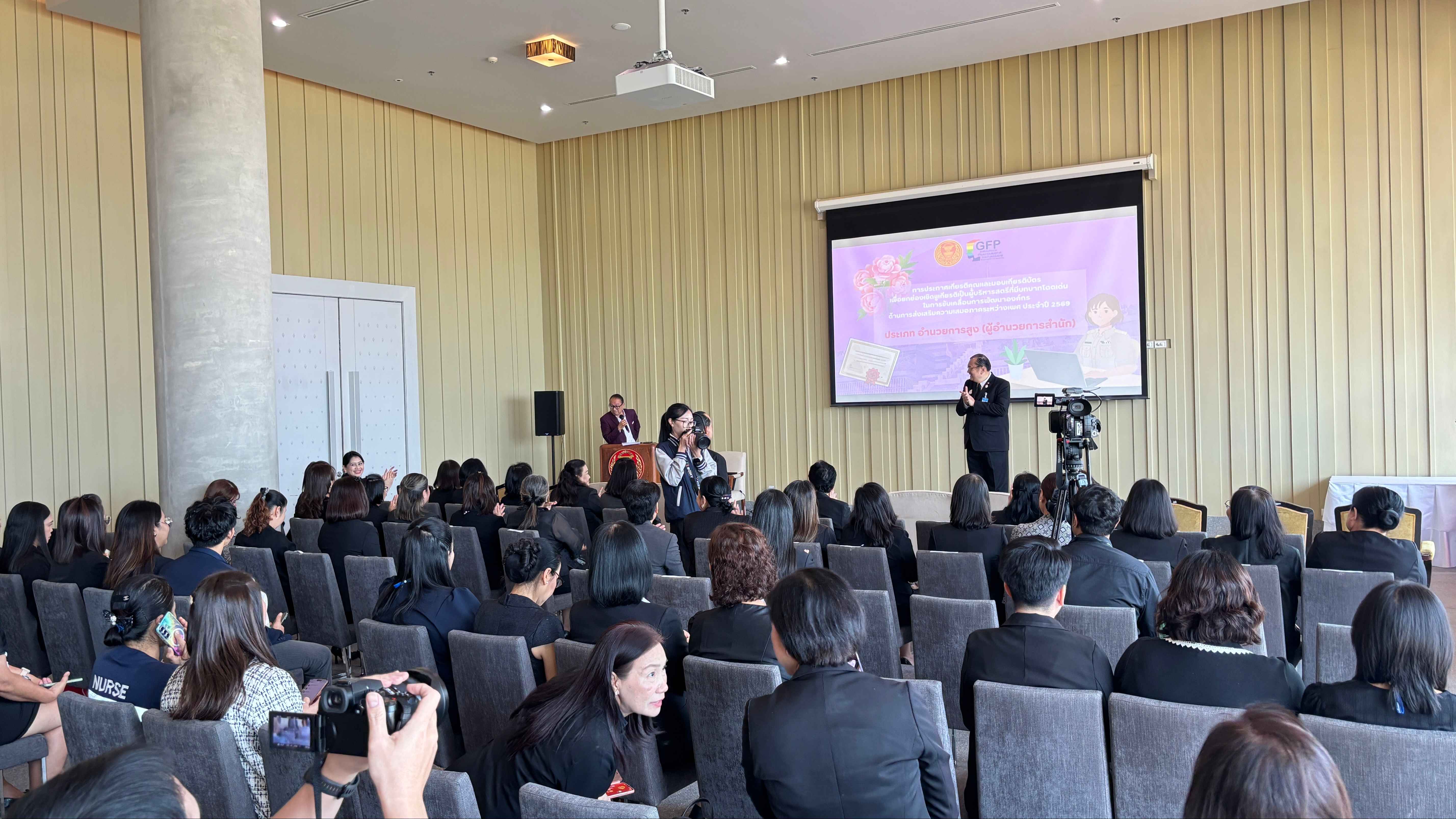 นอกจากนี้ นางสาวกุรุพิน ยังให้ข้อมูลถึงสถานการณ์สตรี ปี 2569 ว่า จำนวนประชากรสตรีมีมากกว่าเพศชาย และอายุยืนยาวกว่า ส่วนอัตราการรู้หนังสือมีความใกล้เคียงกัน สำหรับอัตราการทำงานในสายบริหารของสตรียังน้อยกว่าเพศชาย แต่เพศหญิงมีจำนวนมากกว่าในสายงานด้านวิชาการ