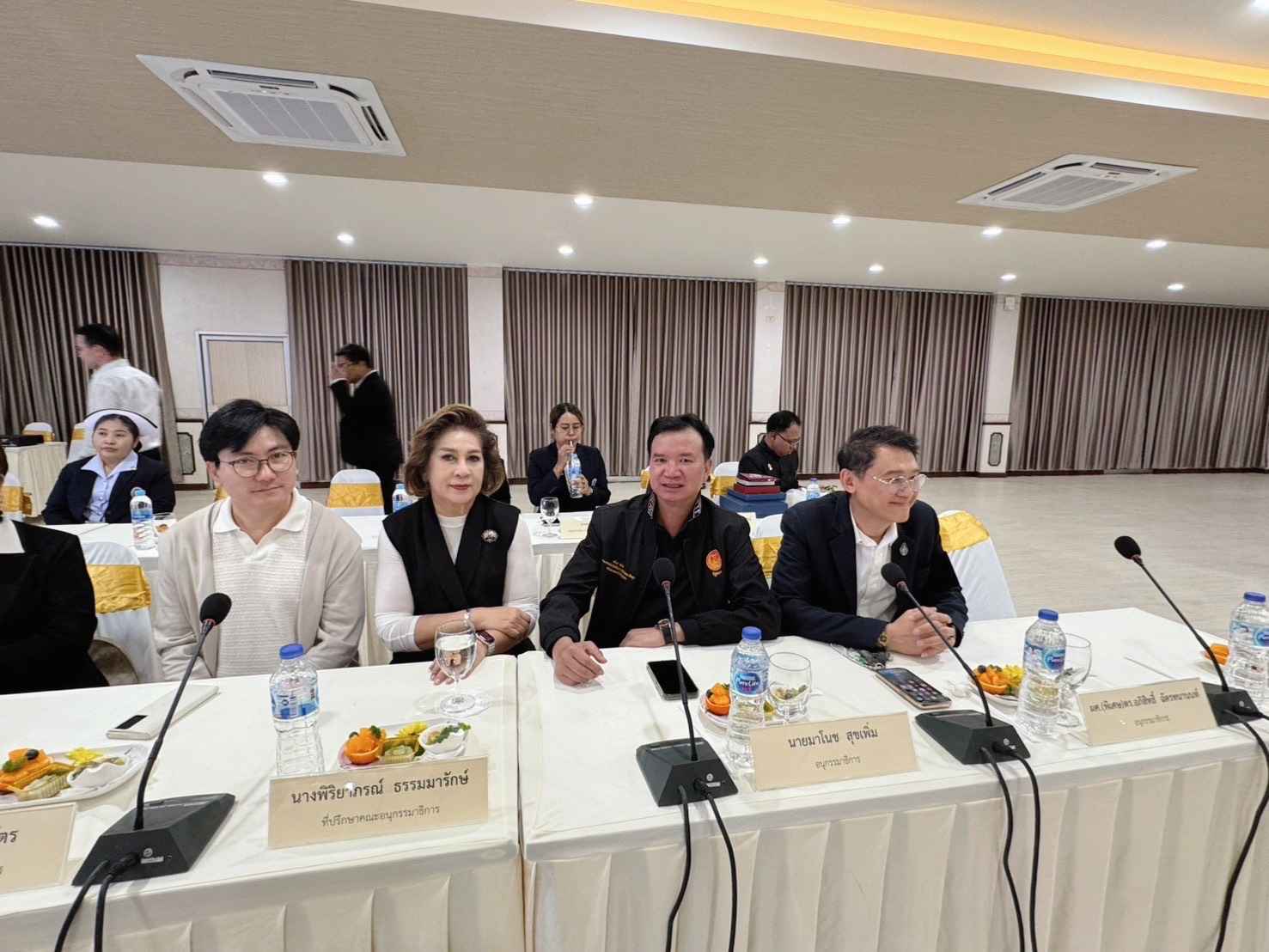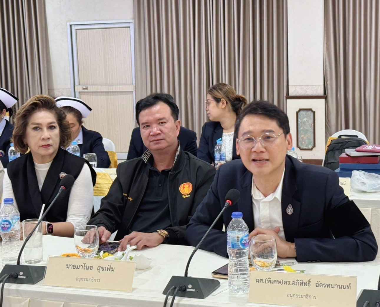 ในการนี้ ผศ. (พิเศษ) ดร. อภิสิทธิ์ ฉัตรทนานนท์ อนุกรรมาธิการพิจารณาศึกษาคุณูปการของสถาบันพระมหากษัตริย์และประธานคณะทำงาน ได้นำเสนอข้อมูลการสนับสนุนการดำเนินงานให้กับโรงพยาบาลสมเด็จพระยุพราชเวียงสระ โดยมีเป้าหมายสำคัญในการเสริมสร้างความจงรักภักดีต่อสถาบันหลักของชาติ การสืบสาน รักษา และต่อยอดพระราชปณิธานด้านการสาธารณสุข ซึ่งในปีงบประมาณ พ.ศ. 2568 ที่ผ่านมา คณะกรรมาธิการวิสามัญได้ดำเนินการสนับสนุนการดำเนินงานของโรงพยาบาลสมเด็จพระยุพราชเวียงสระ ร่วมกับคณะทำงานและภาคเอกชน ร่วมกันกำหนดแนวทางการส่งเสริมการดำเนินงานของโรงพยาบาลในด้านต่าง ๆ อาทิ การสนับสนุนงบประมาณเพื่อปรับปรุงห้องพิเศษ การพัฒนาระบบรักษาความปลอดภัยคอมพิวเตอร์ เพื่อยกระดับการบริการด้านเทคโนโลยีสารสนเทศให้มีความปลอดภัยตามมาตรฐานกระทรวงสาธารณสุข การประยุกต์ใช้ระบบปัญญาประดิษฐ์เพื่อช่วยแพทย์ในการวินิจฉัยภาพรังสีทรวงอก ซึ่งจะช่วยให้ระบบบริการทางการแพทย์ของโรงพยาบาลมีประสิทธิภาพและสามารถรองรับผู้ป่วยได้มากยิ่งขึ้น เพื่อมุ่งสู่การเป็น “โรงพยาบาลคุณภาพคู่คุณธรรม” โดยยึดหลักคุณธรรม 5 ประการ คือ พอเพียง วินัย สุจริต จิตอาสา กตัญญู