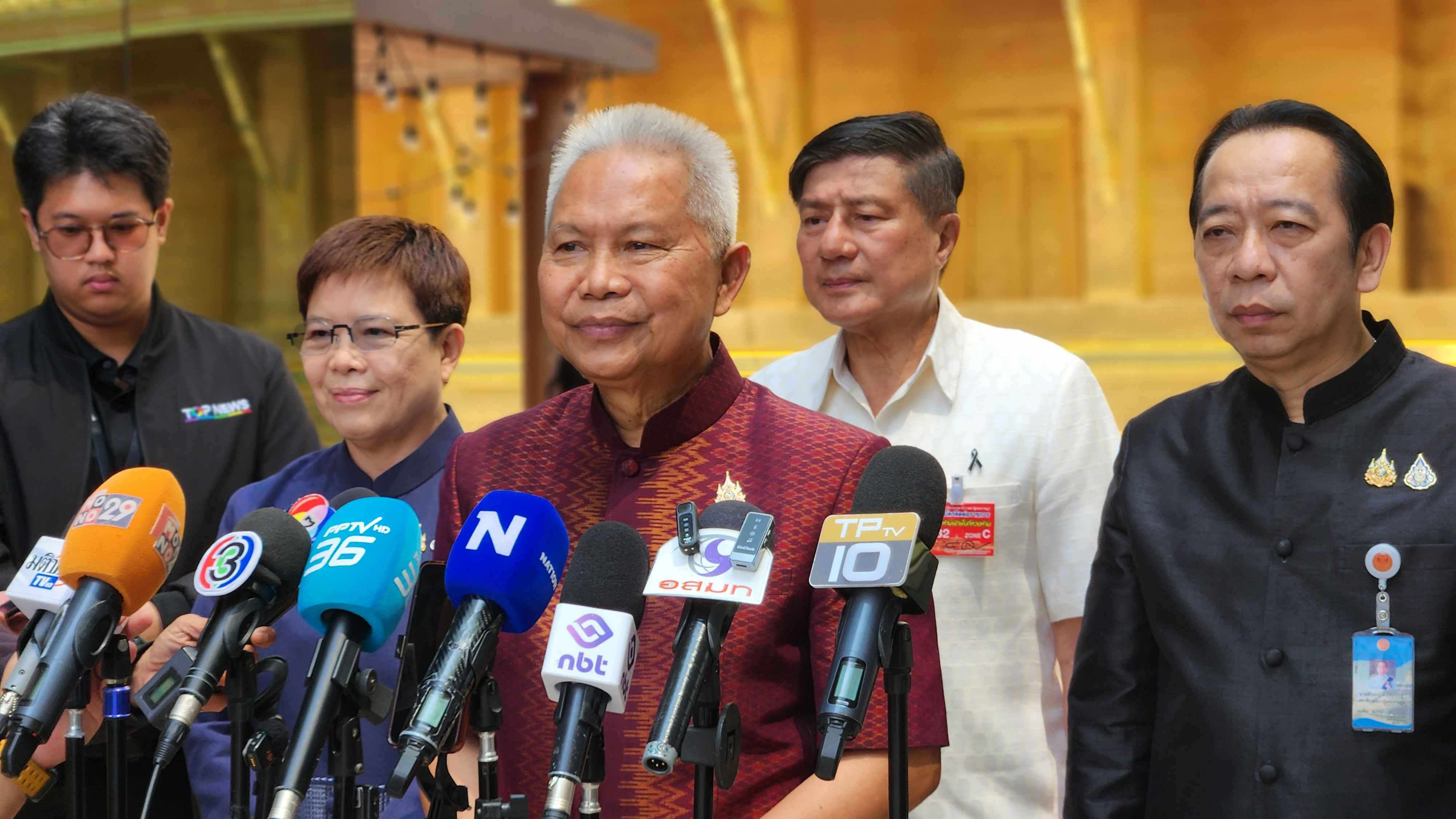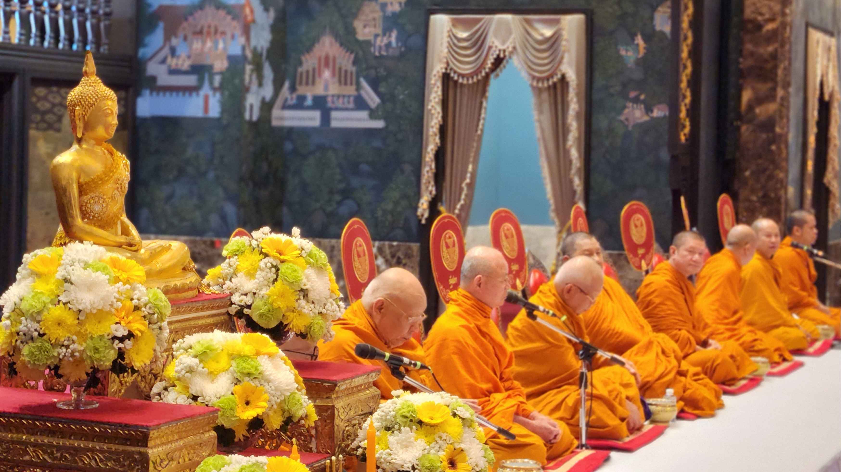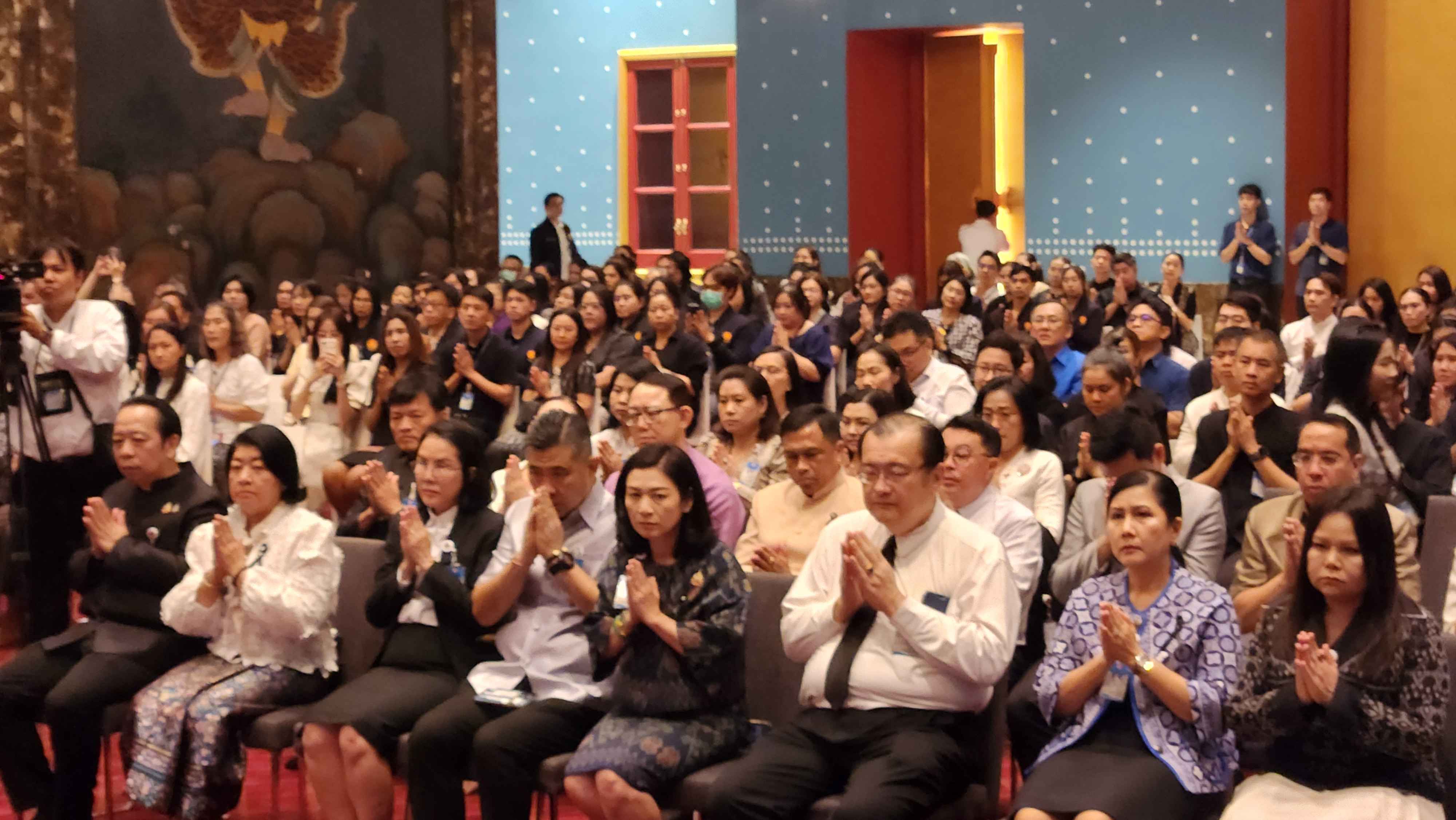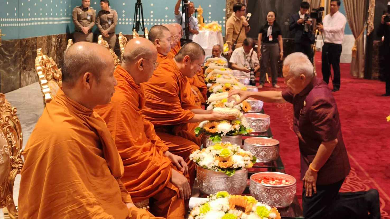 ประธานรัฐสภาและประธานสภาผู้แทนราษฎร ได้ร่วมในพิธีสวดเจริญพระพุทธมนต์ จากพระสงฆ์จำนวน 9 รูป จากวัดไตรมิตรวิทยารามวรวิหาร เพื่อความเป็นสิริมงคล จากนั้นได้นำถวายเครื่องไทยธรรม กรวดน้ำรับพร และเป็นประธานในพิธีนำสรงน้ำพระพุทธรูป และพระสงฆ์